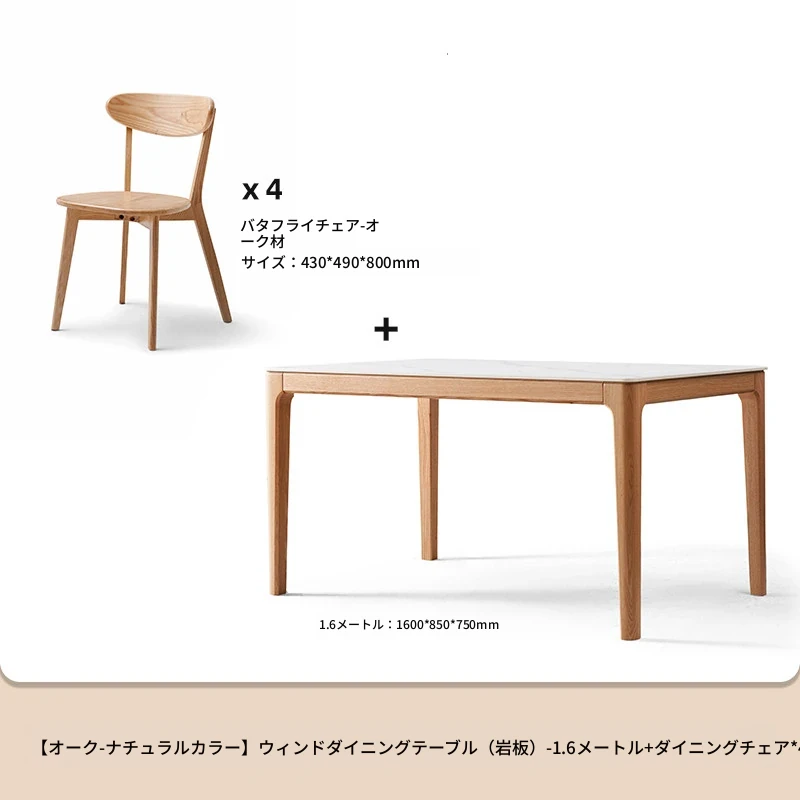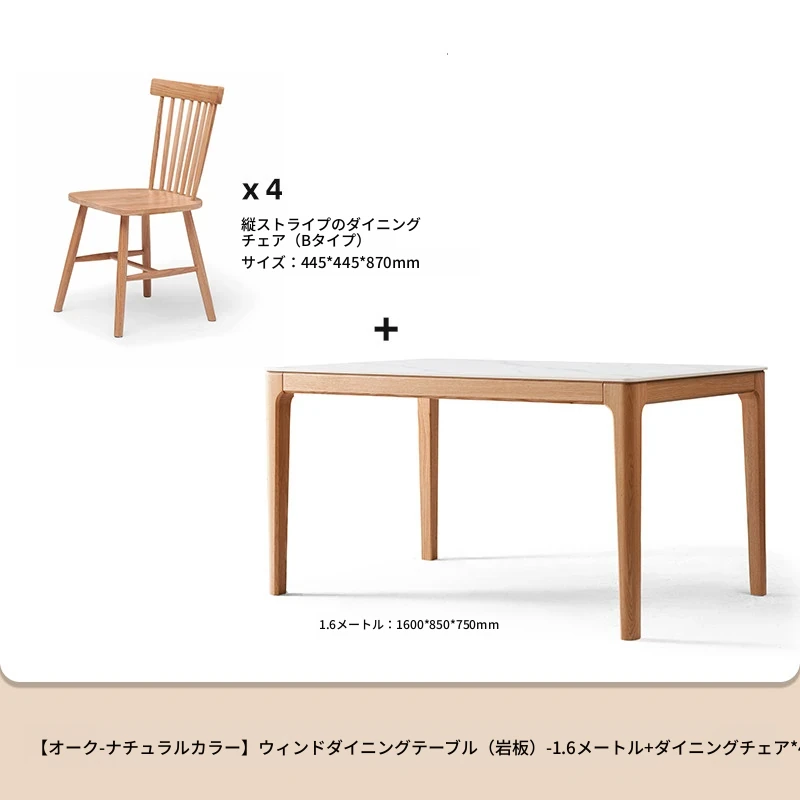 【オーク-ナチュラルカラー】1.6メートルテーブル4椅子(A7121)