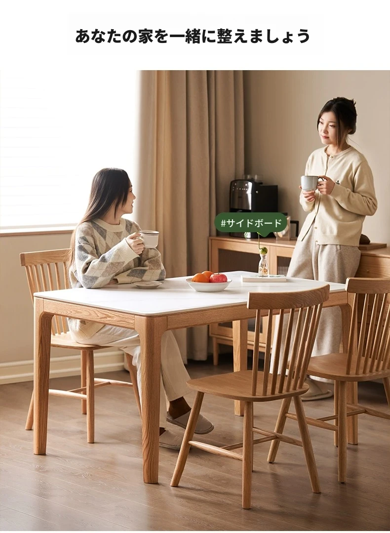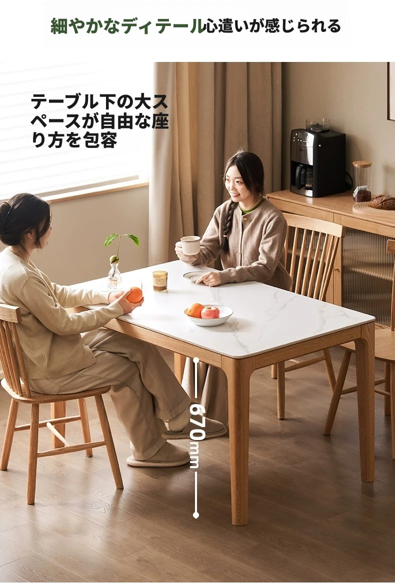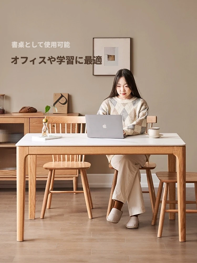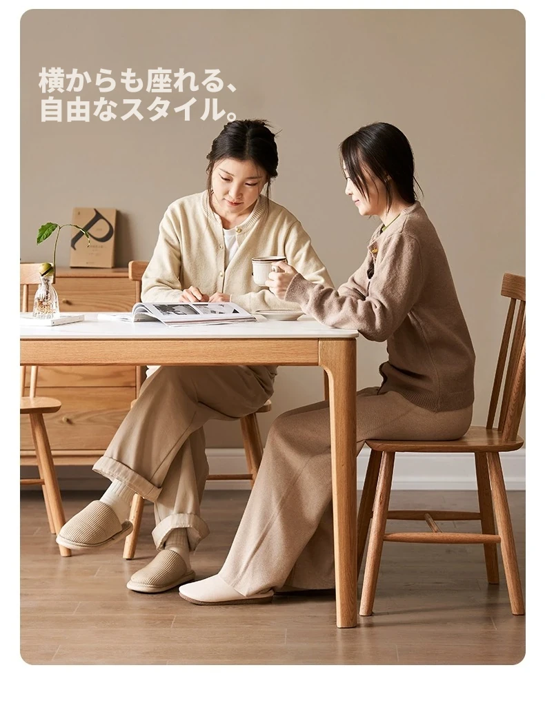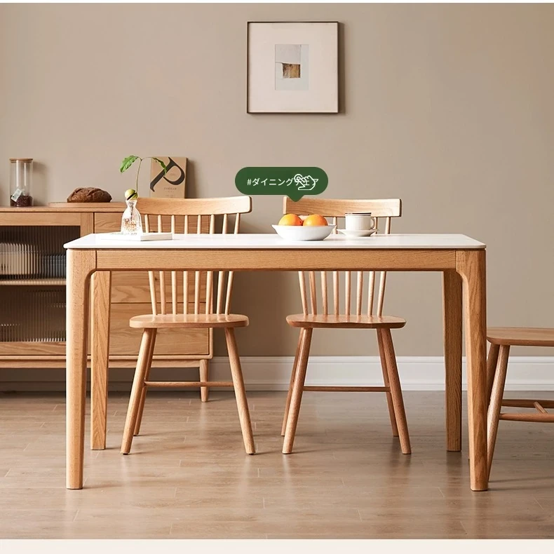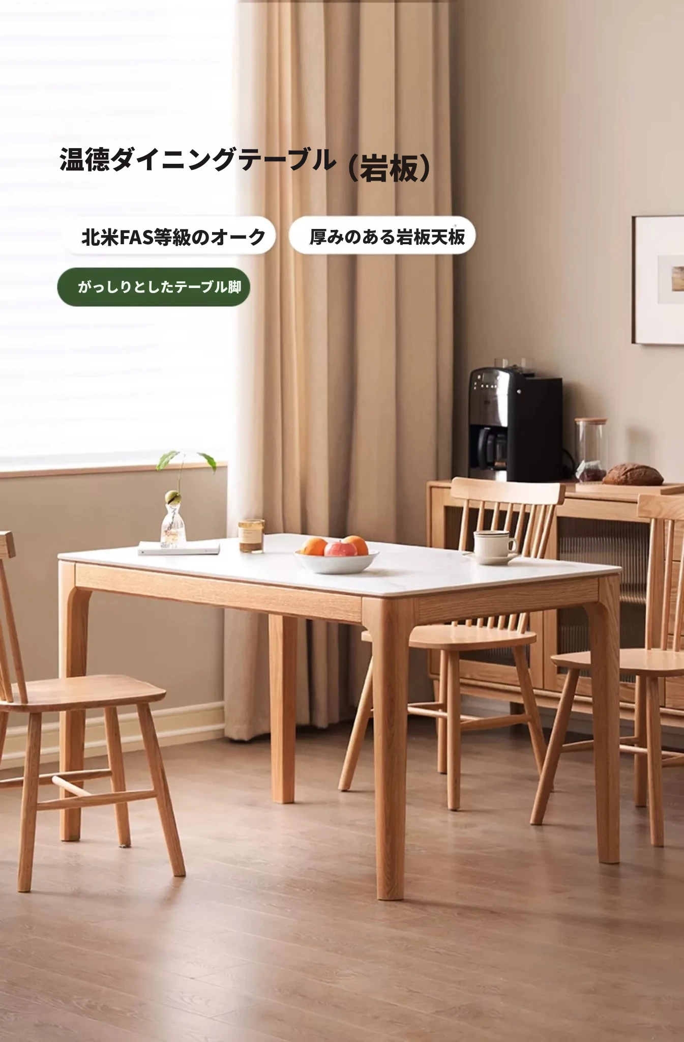 オーガニック無垢材のロック板ダイニングテーブル&チェアセット - 北欧スタイルのオーク製、モダンでシンプルな家庭用食卓。自然の温もりを感じる食事空間を演出します!