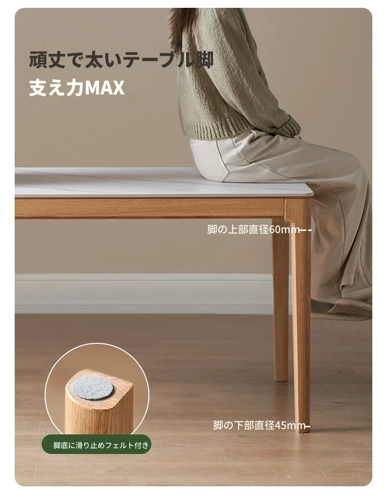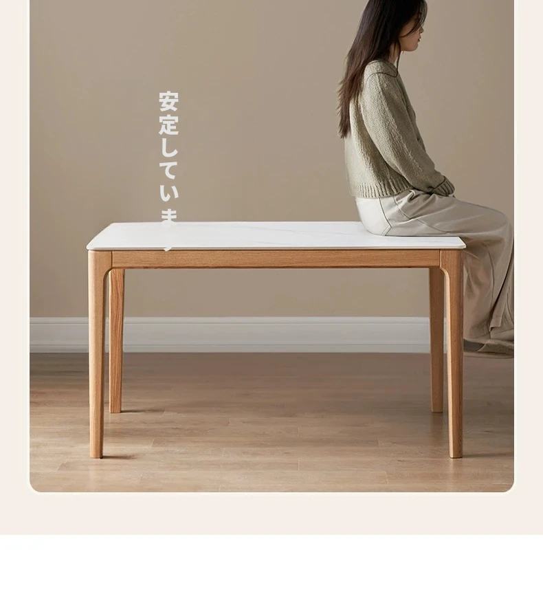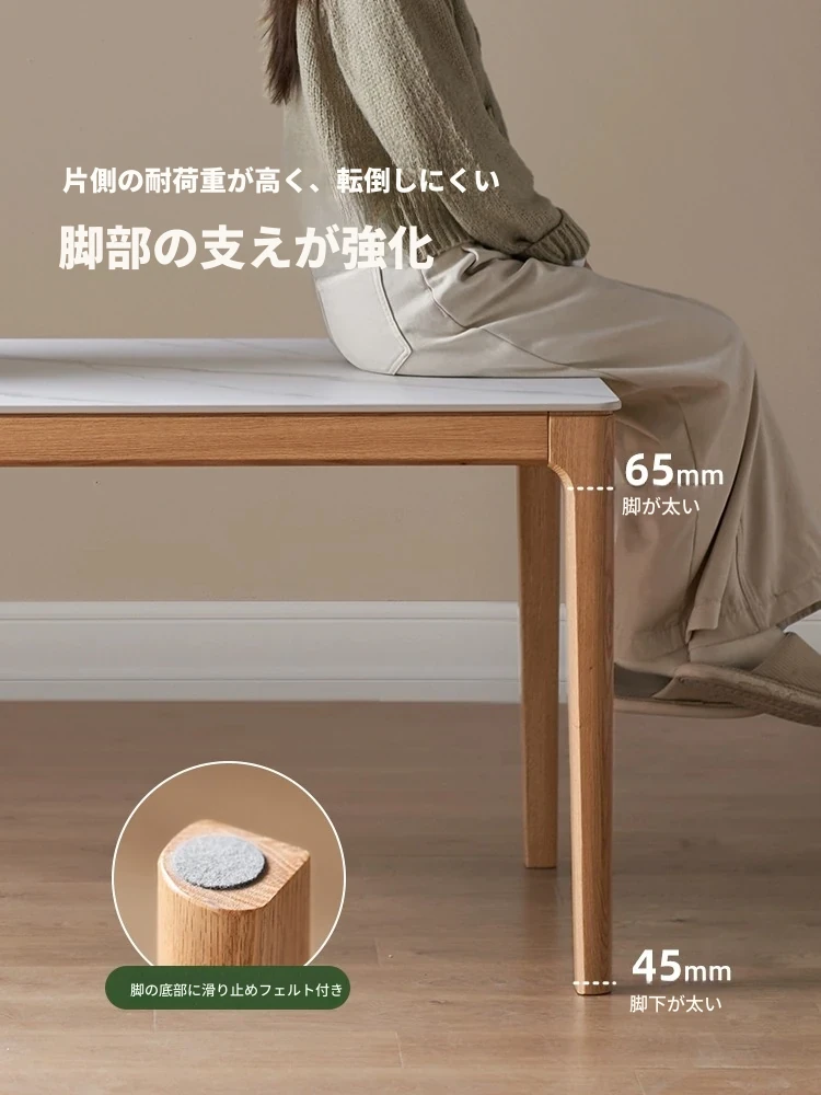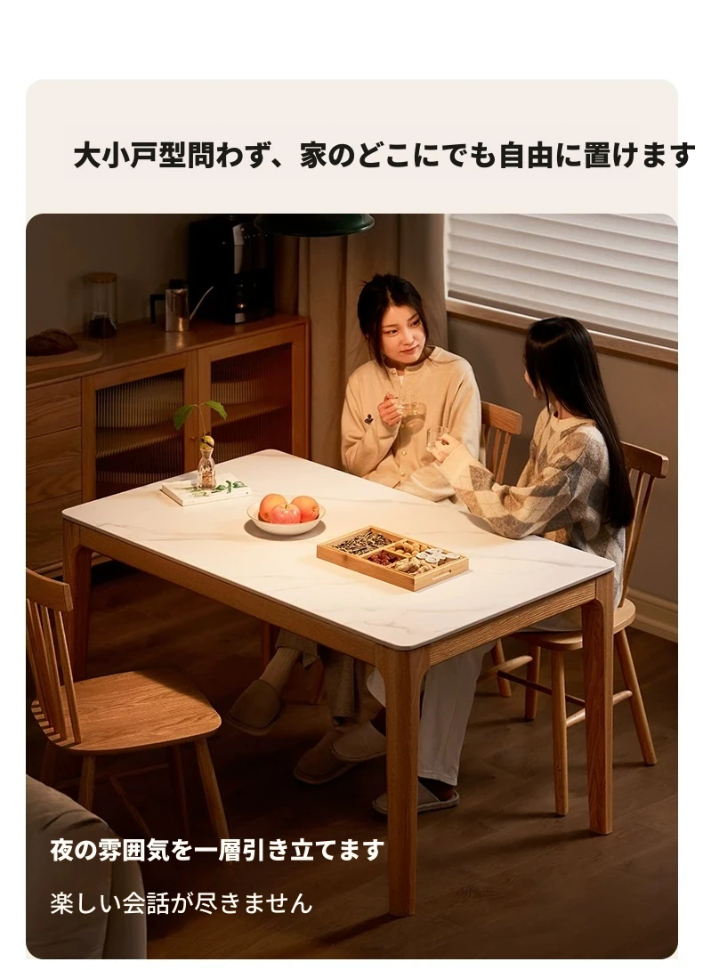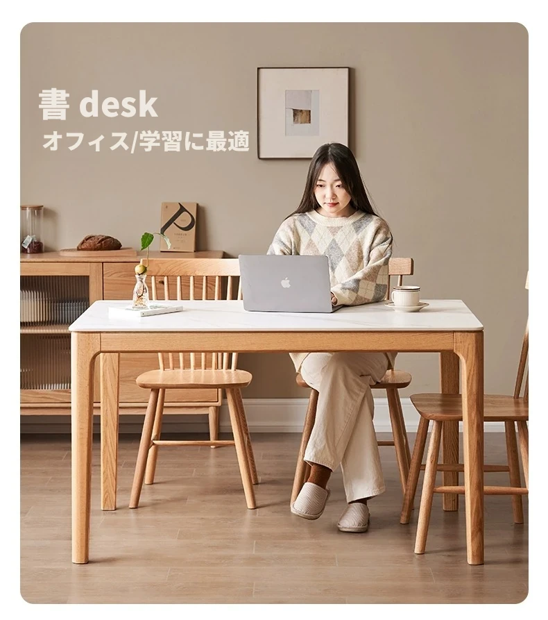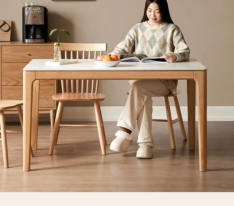 オーガニック無垢材のロック板ダイニングテーブル&チェアセット - 北欧スタイルのオーク製、モダンでシンプルな家庭用食卓。自然の温もりを感じる食事空間を演出します!