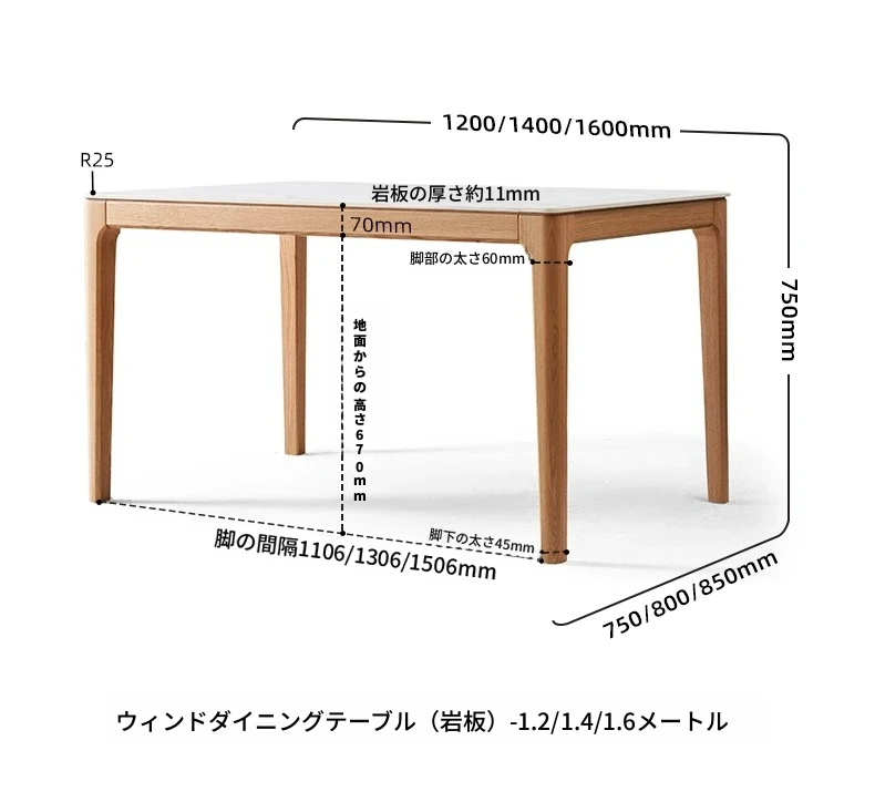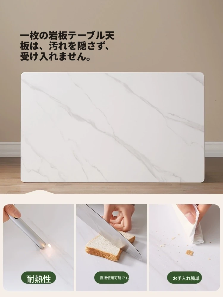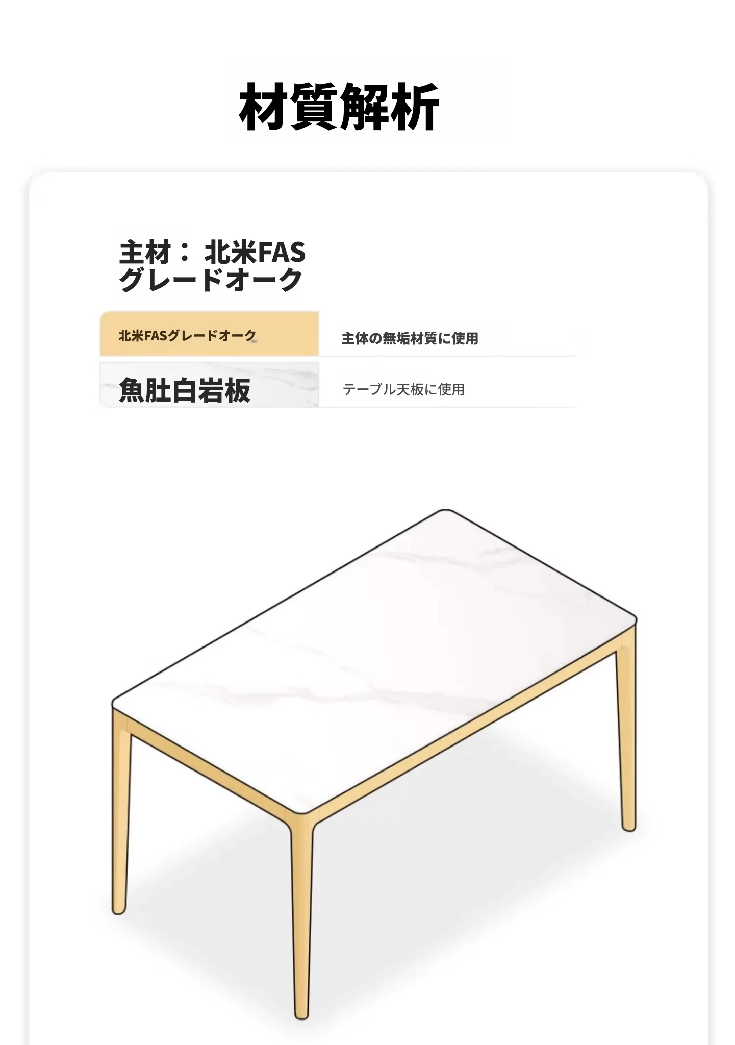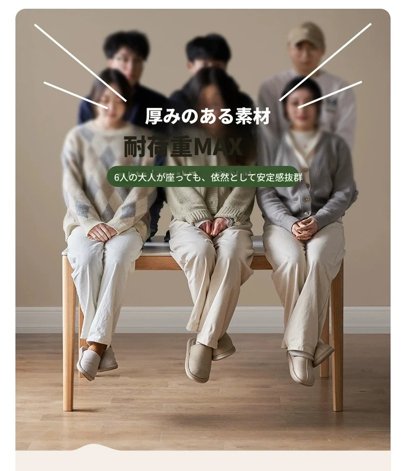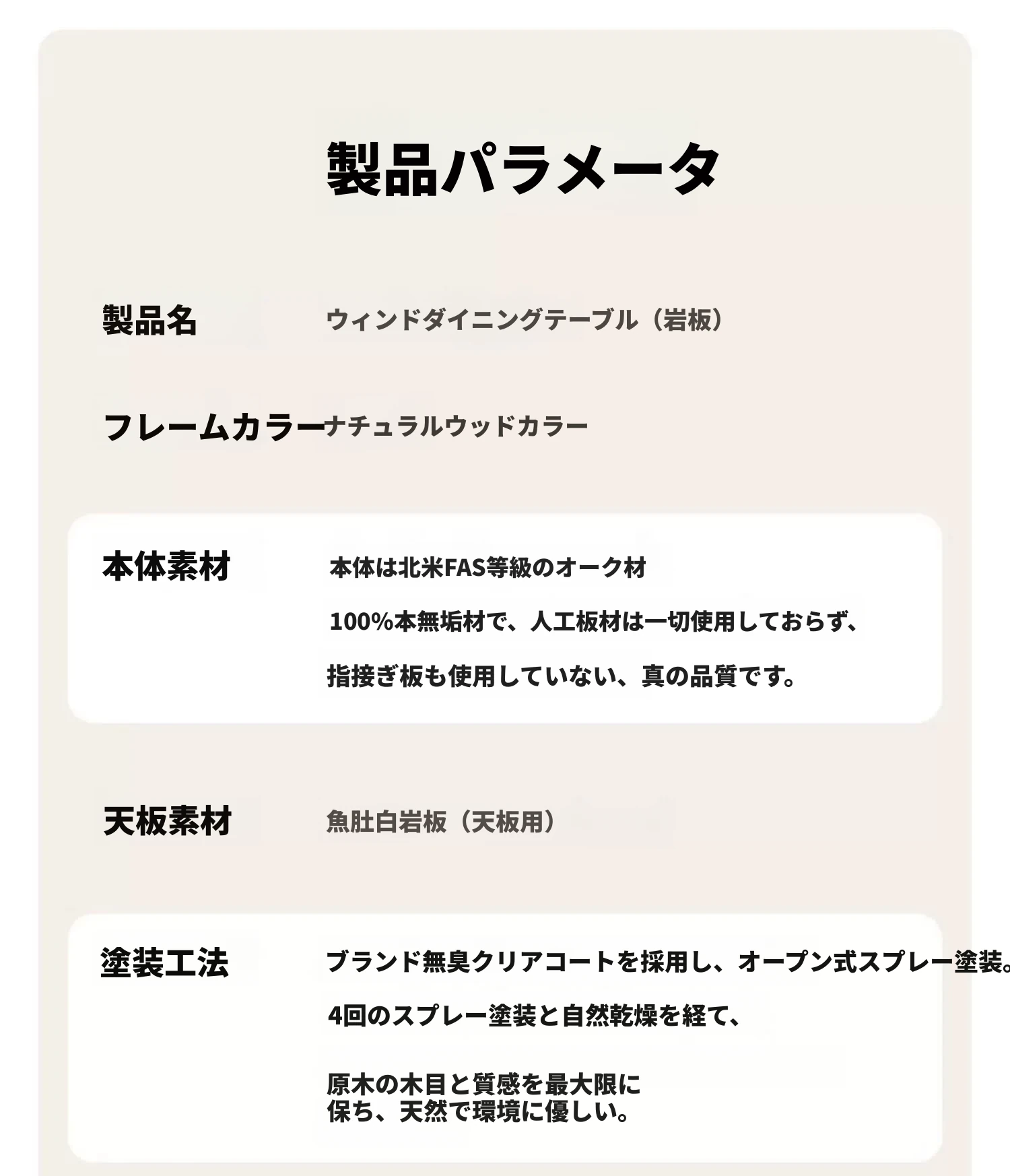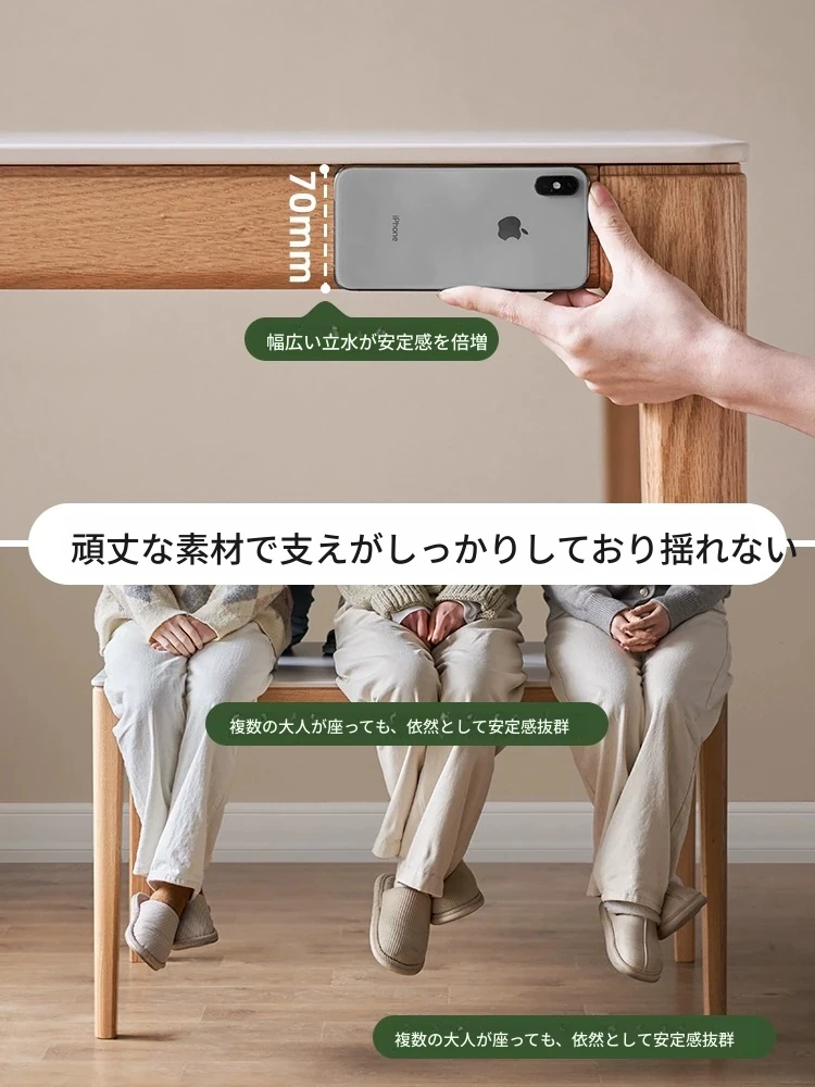 オーガニック無垢材のロック板ダイニングテーブル&チェアセット - 北欧スタイルのオーク製、モダンでシンプルな家庭用食卓。自然の温もりを感じる食事空間を演出します!