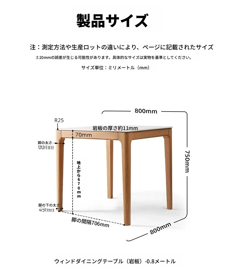 【オーク-ナチュラルカラー】0.8メートルダイニングテーブル(800*800*750mm)