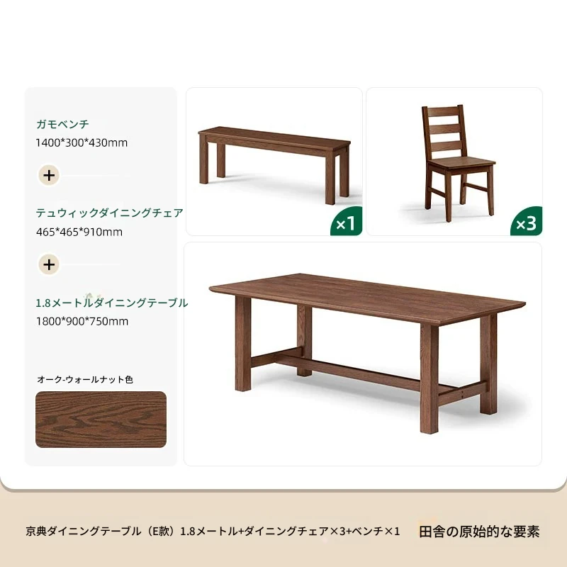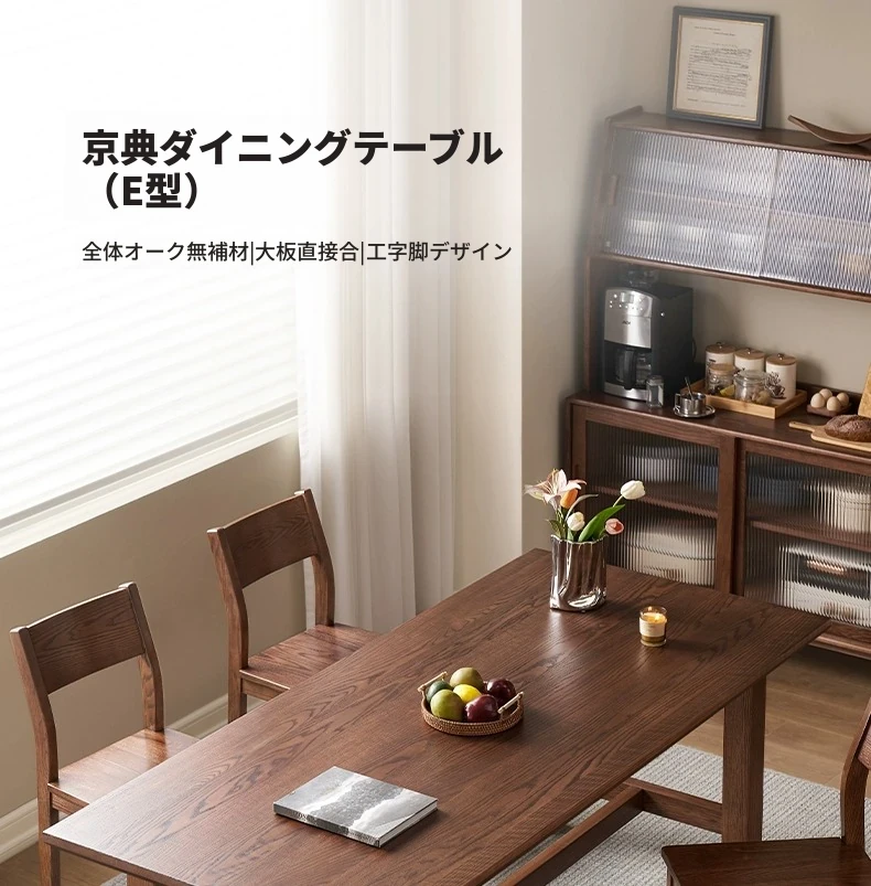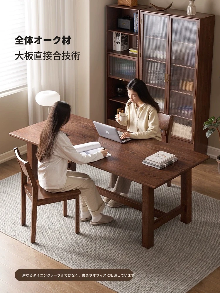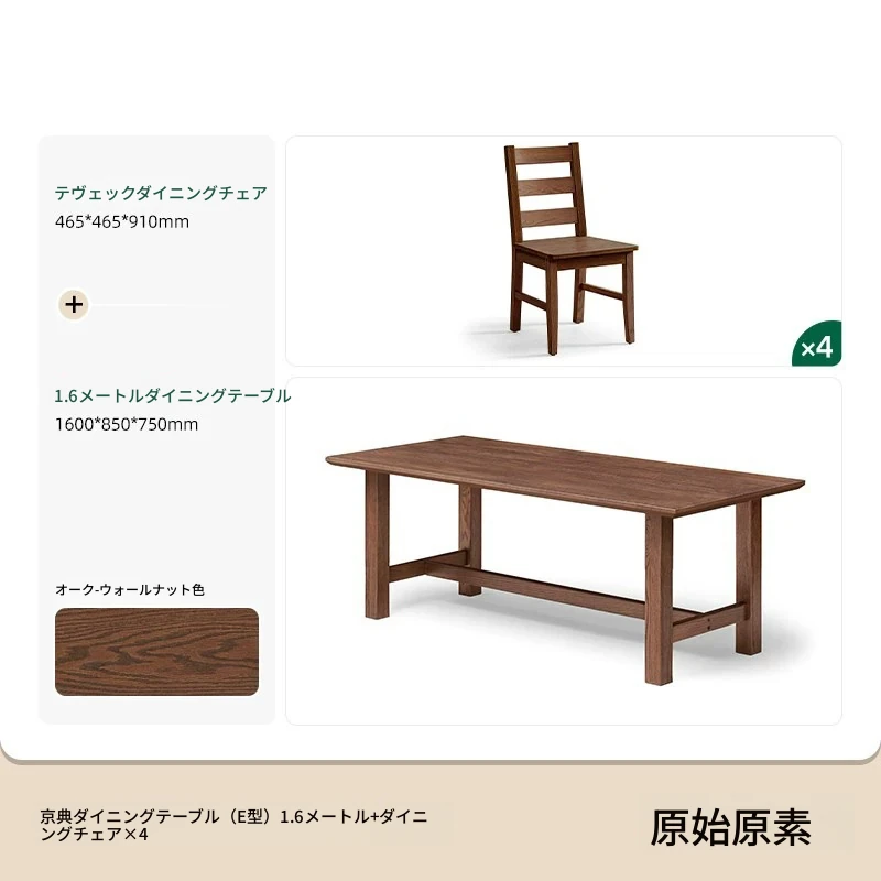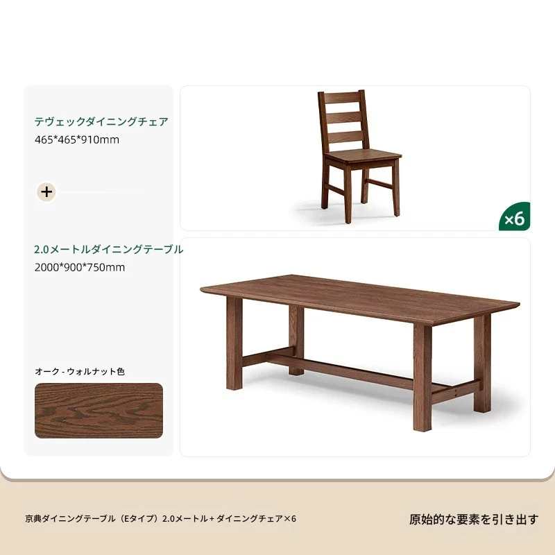 ナチュラルオークの北欧スタイル!無垢材のダイニングテーブルとチェアのセット - ウォールナット色の大きなテーブルで、家族や友人との素敵な食事を楽しむための完璧なアイテムです。