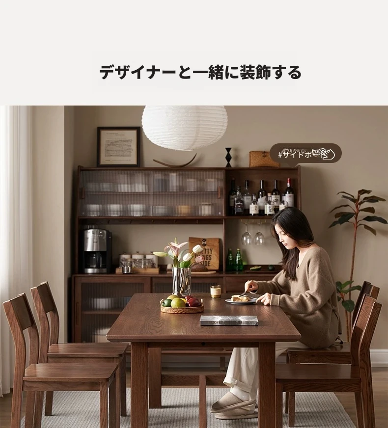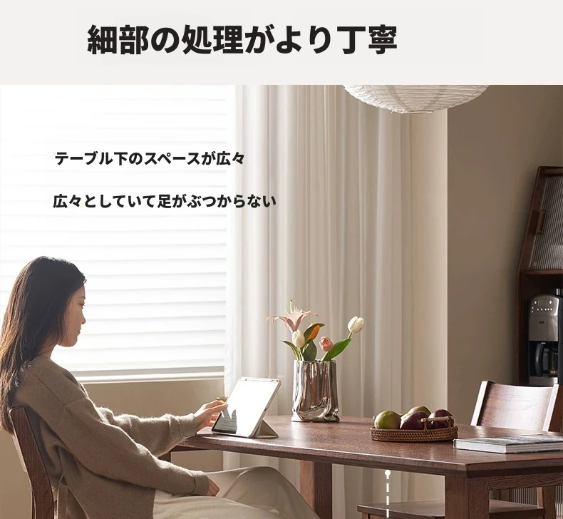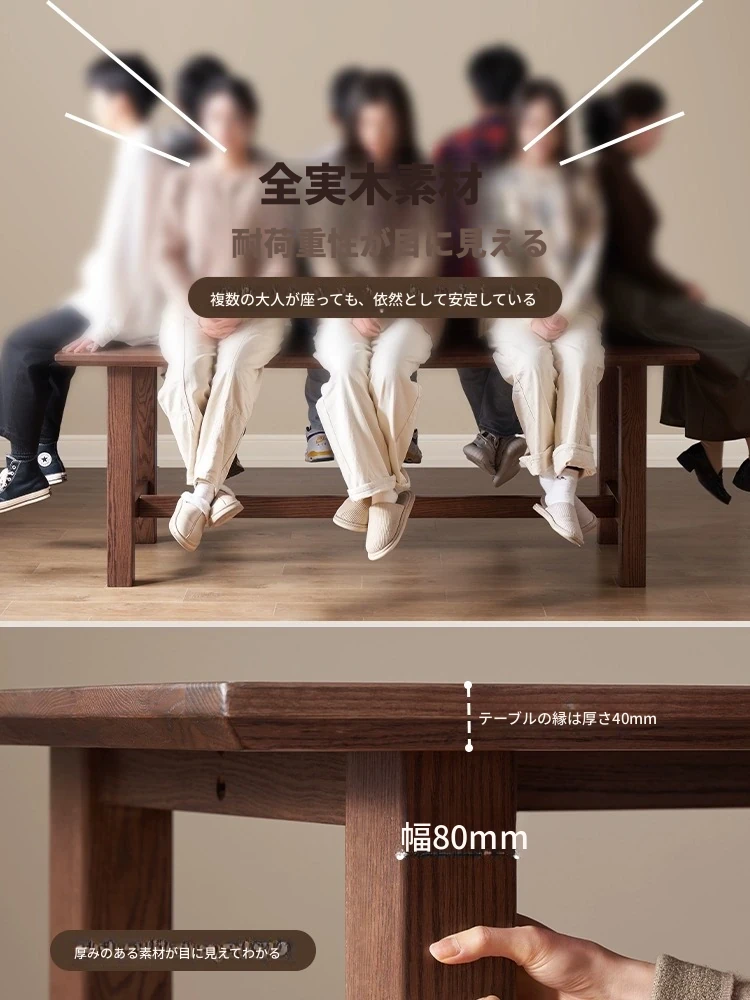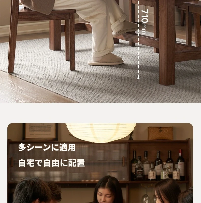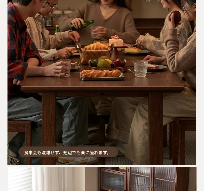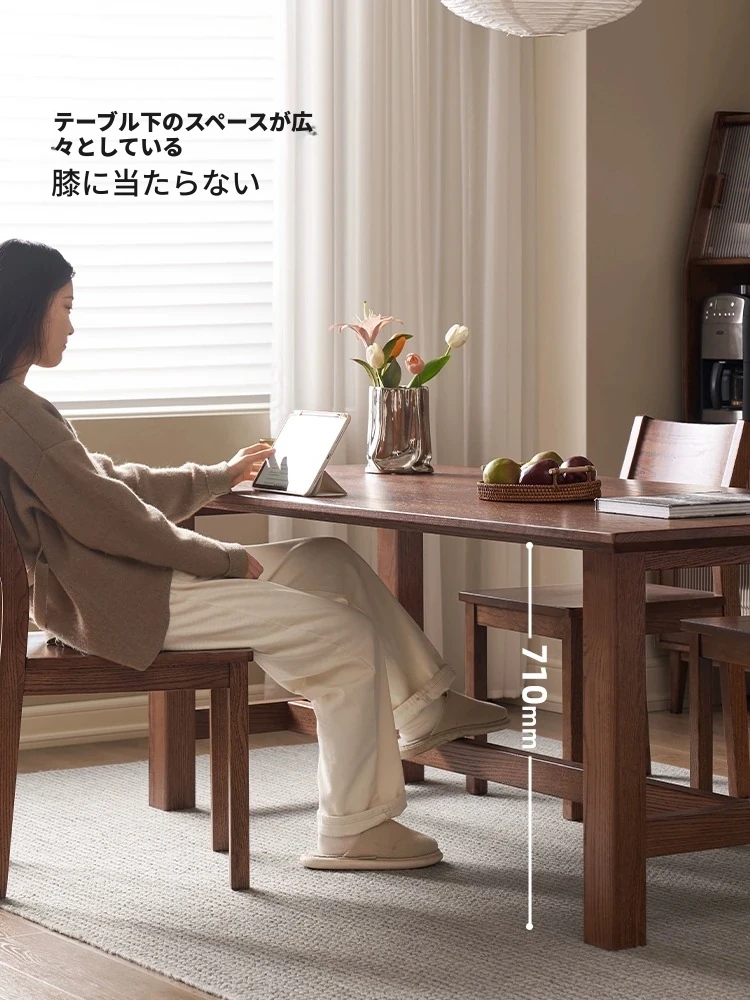 ナチュラルオークの北欧スタイル!無垢材のダイニングテーブルとチェアのセット - ウォールナット色の大きなテーブルで、家族や友人との素敵な食事を楽しむための完璧なアイテムです。