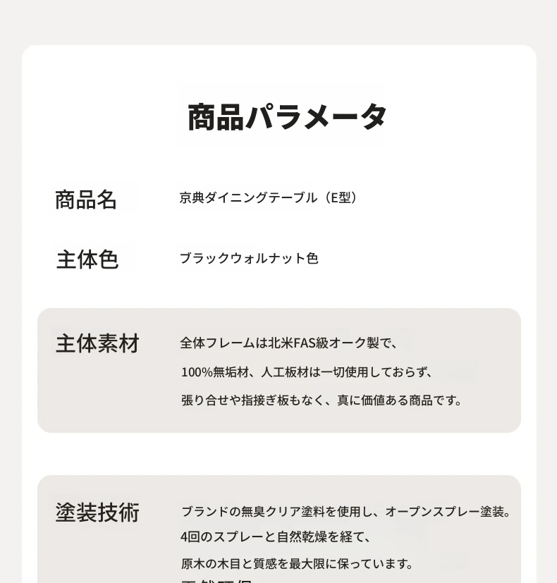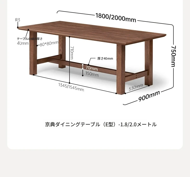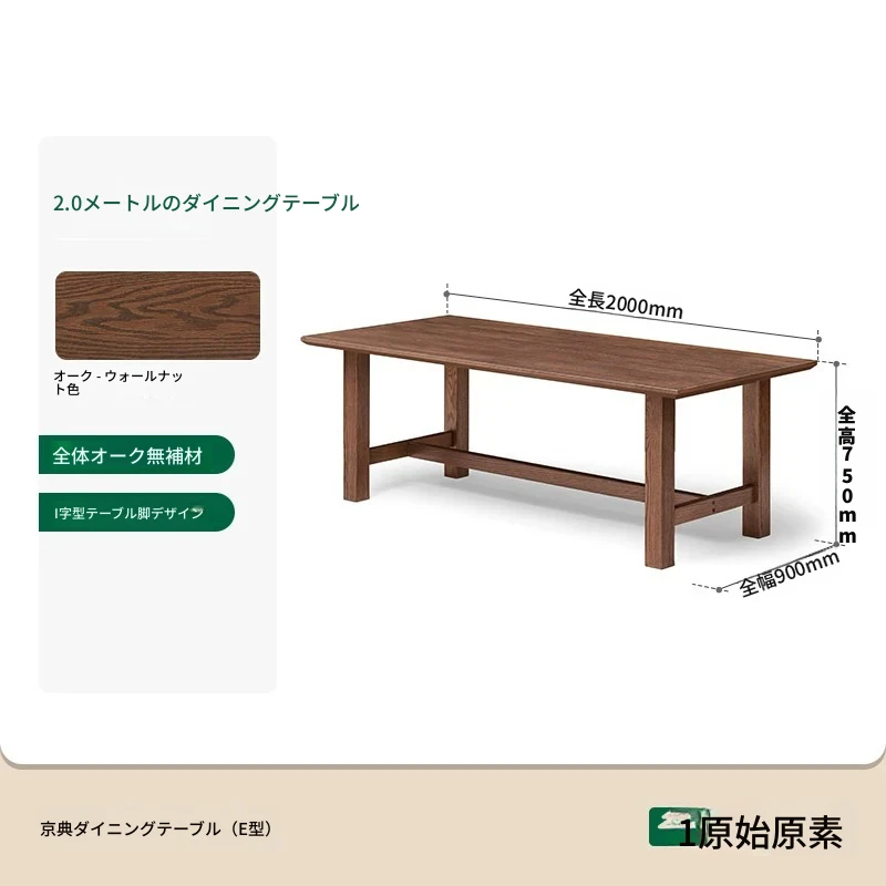 【オーク-ブラックウォルナット色】-2.0mダイニングテーブル(2000*900*750mm)