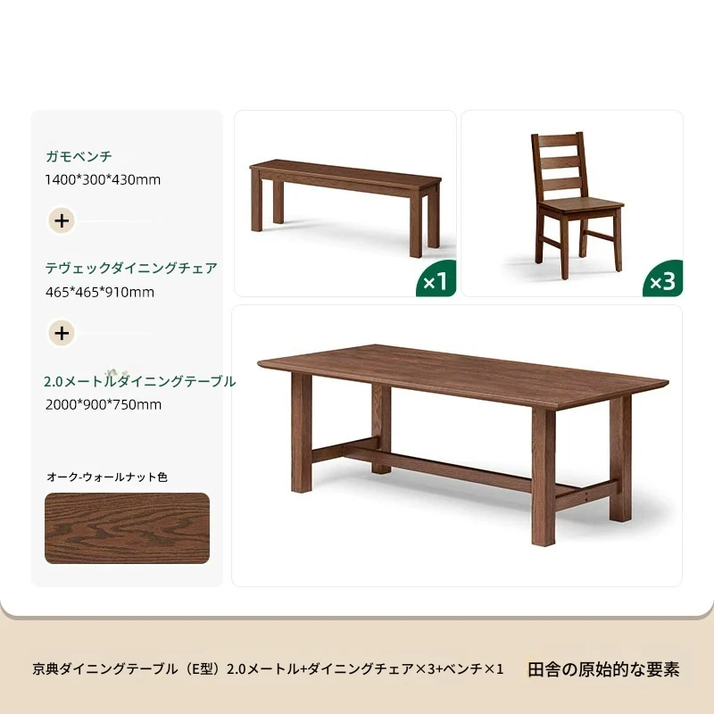 【オーク-ブラックウォルナット色】2.0m1テーブル3チェア1ベンチ(B1121+A5132)