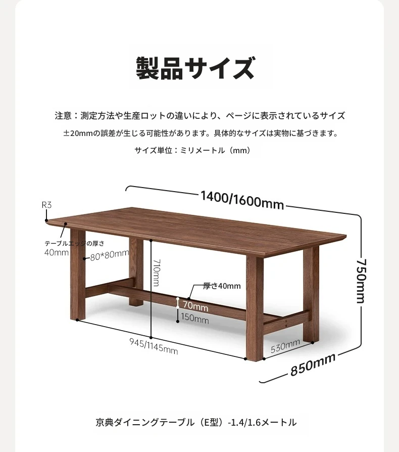 【オーク-ブラックウォルナット色】-1.4mダイニングテーブル(1400*850*750mm)