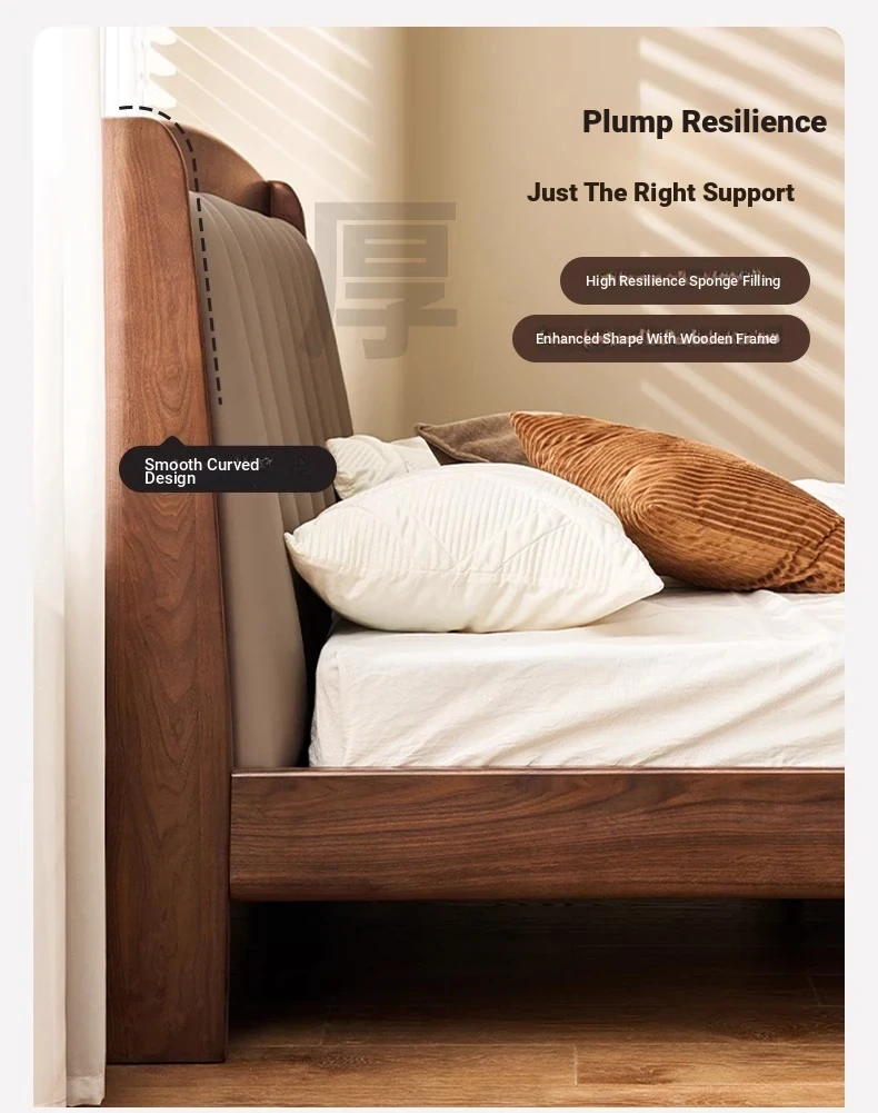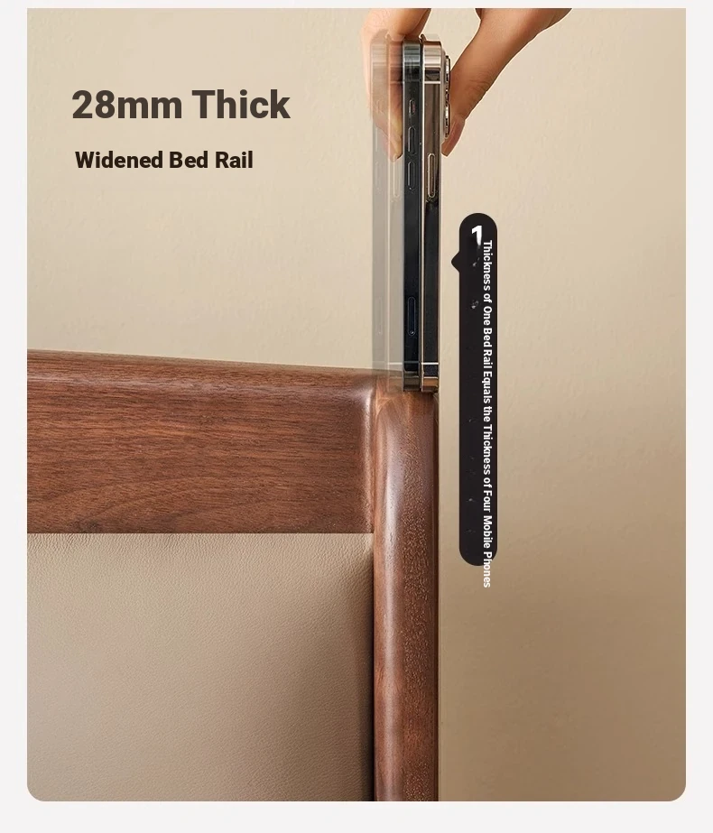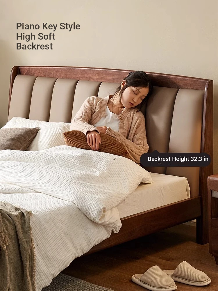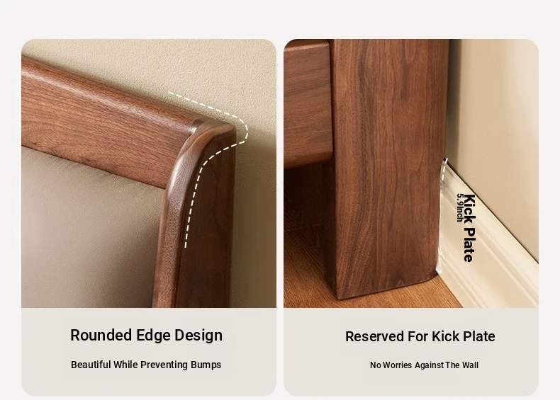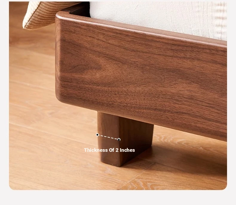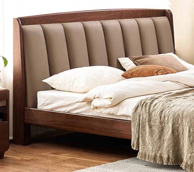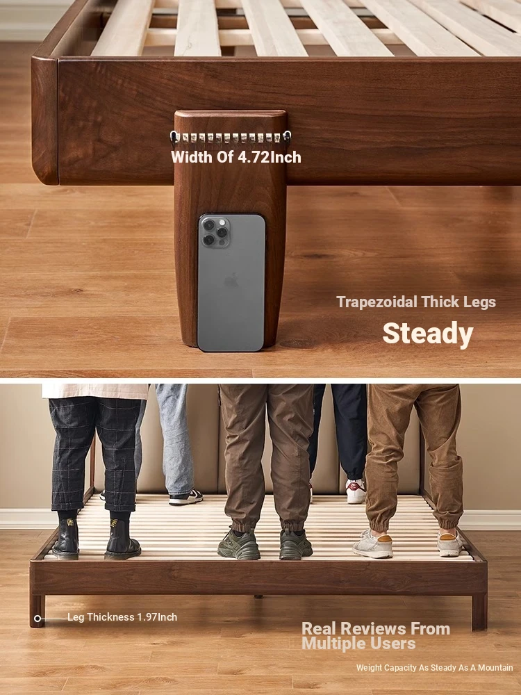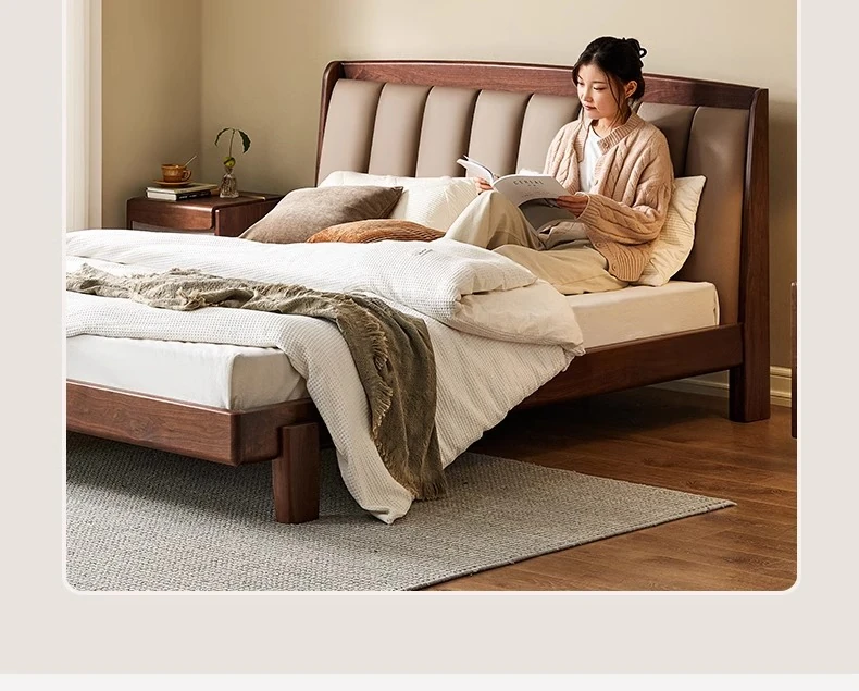 Original Element Solid Wood Bed - Modern Minimalist Design in North American Black Walnut with Genuine Leather Upholstered Headboard - Perfect for Master Bedrooms and Couples