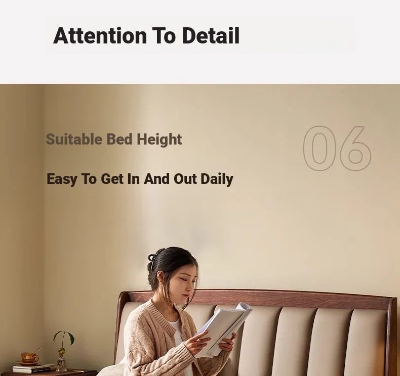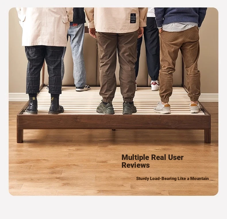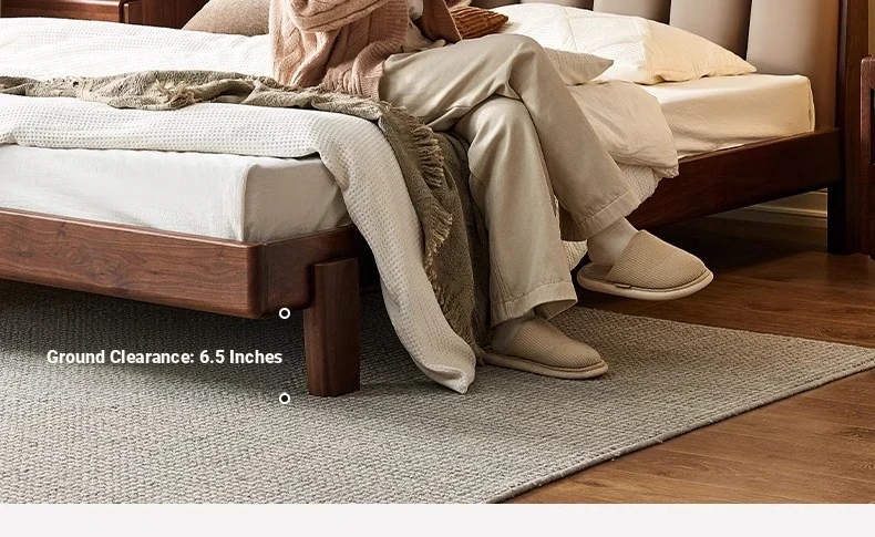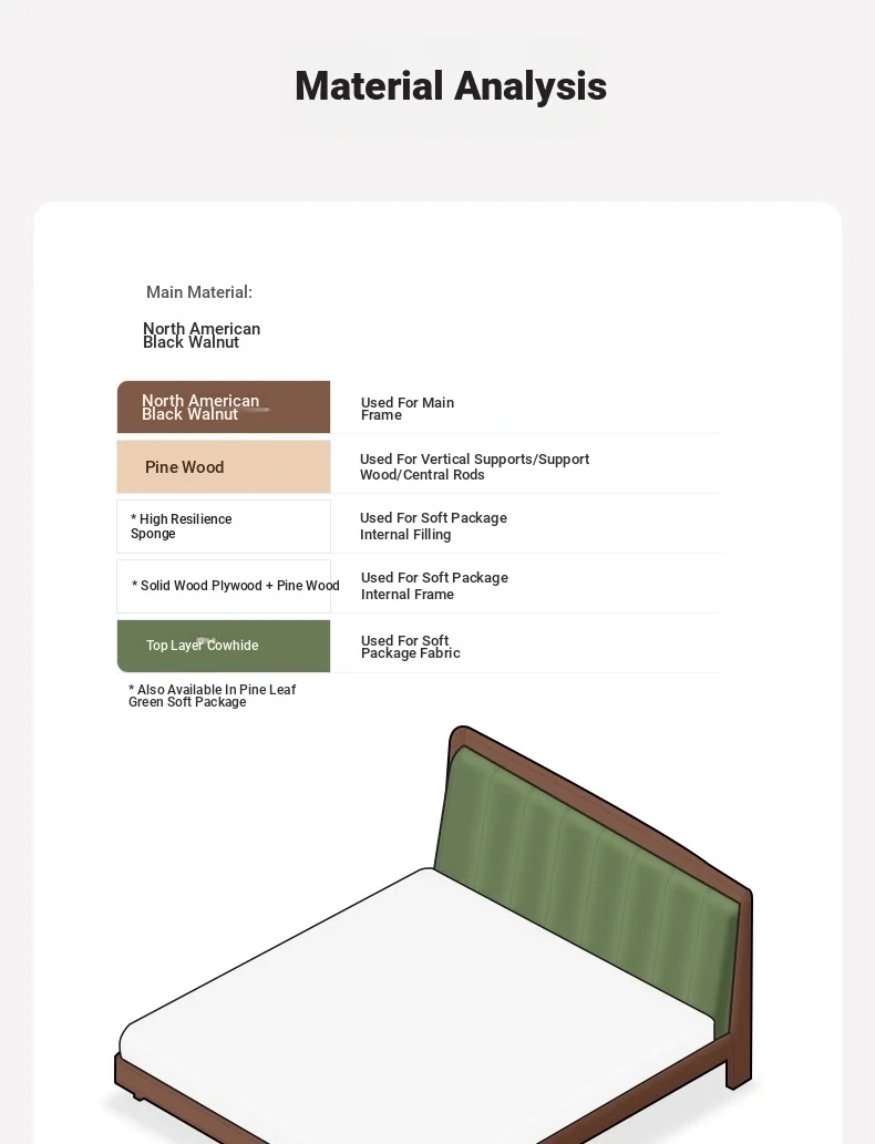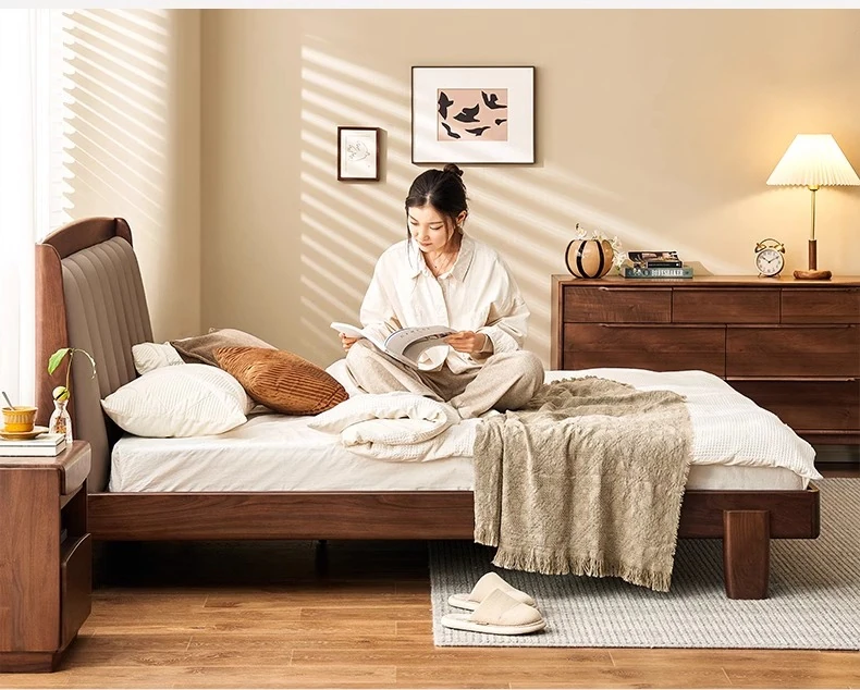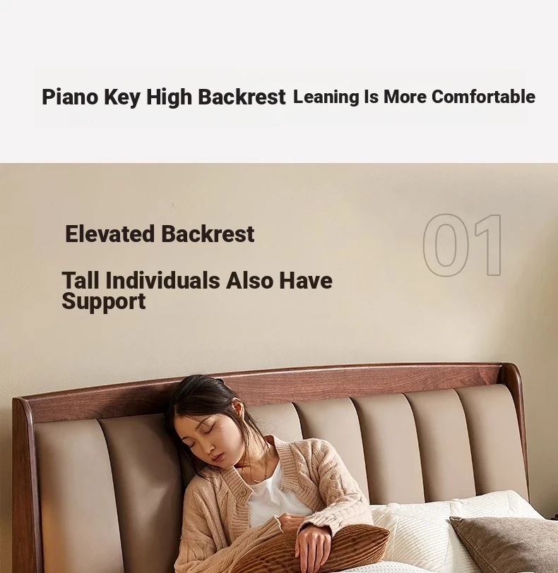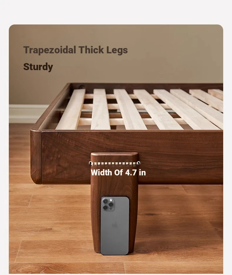Original Element Solid Wood Bed - Modern Minimalist Design in North American Black Walnut with Genuine Leather Upholstered Headboard - Perfect for Master Bedrooms and Couples