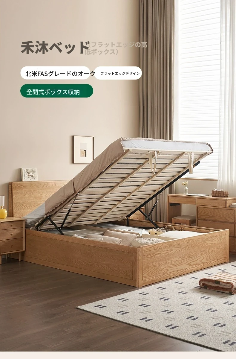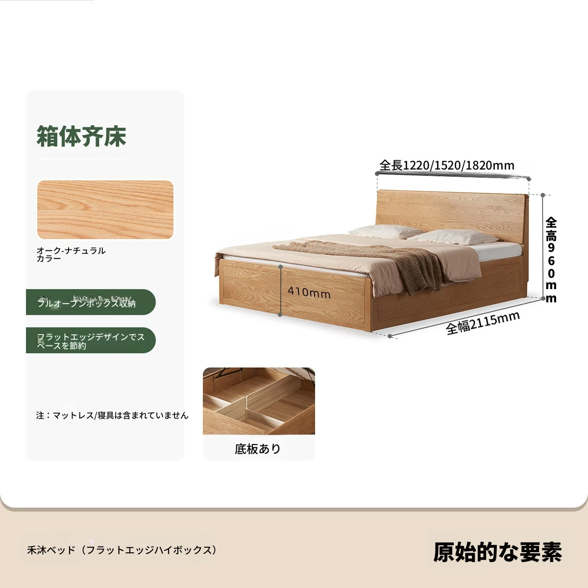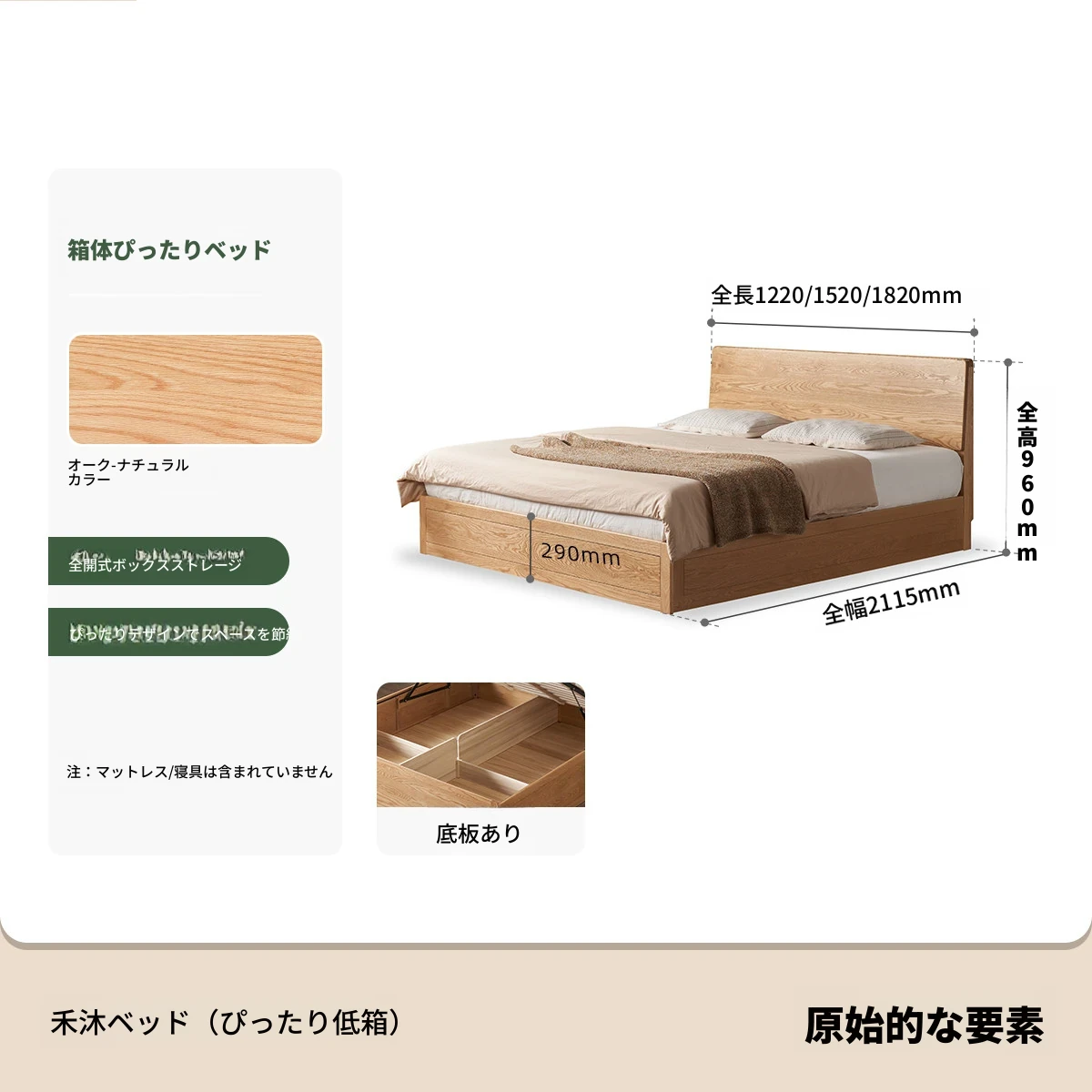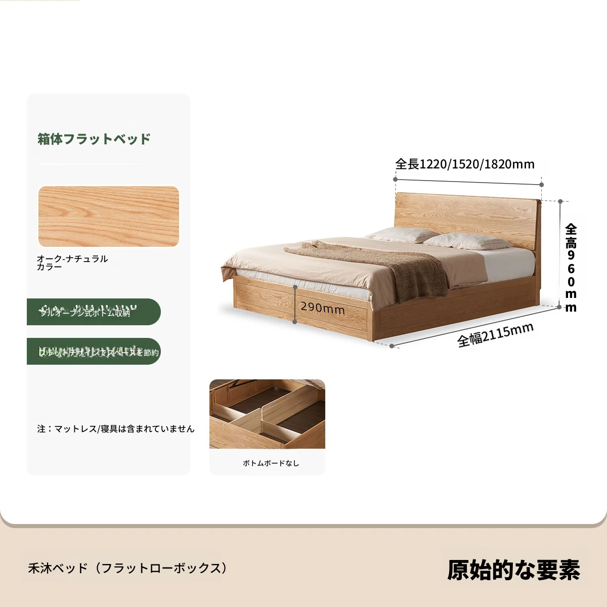 【オーク-ナチュラルカラー】禾沐ベッド(フラットボックス-あり)