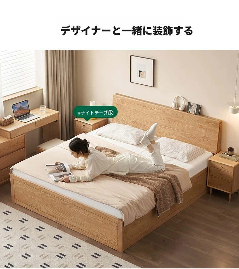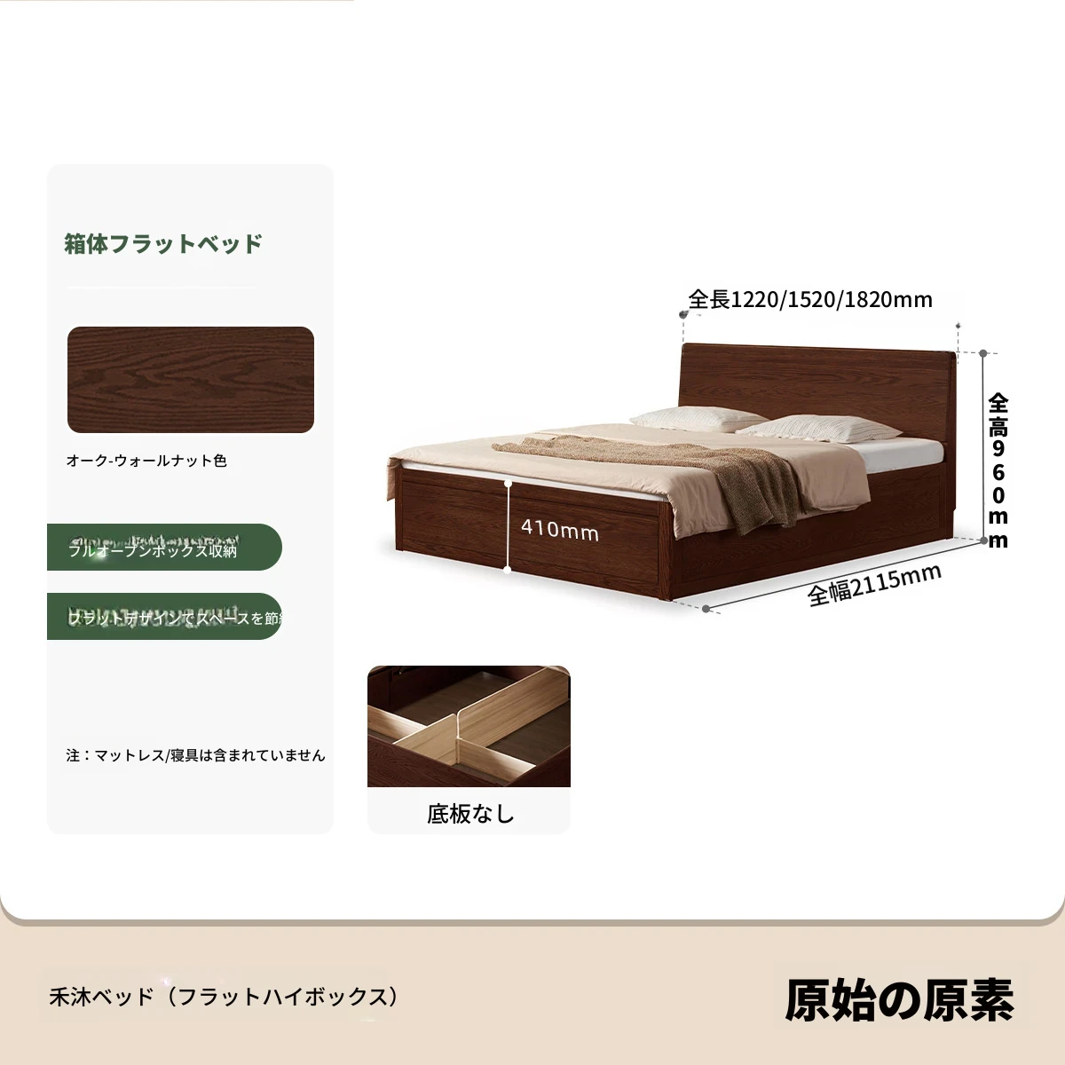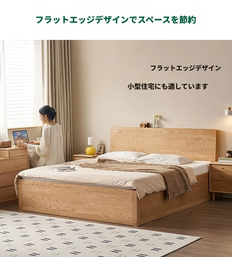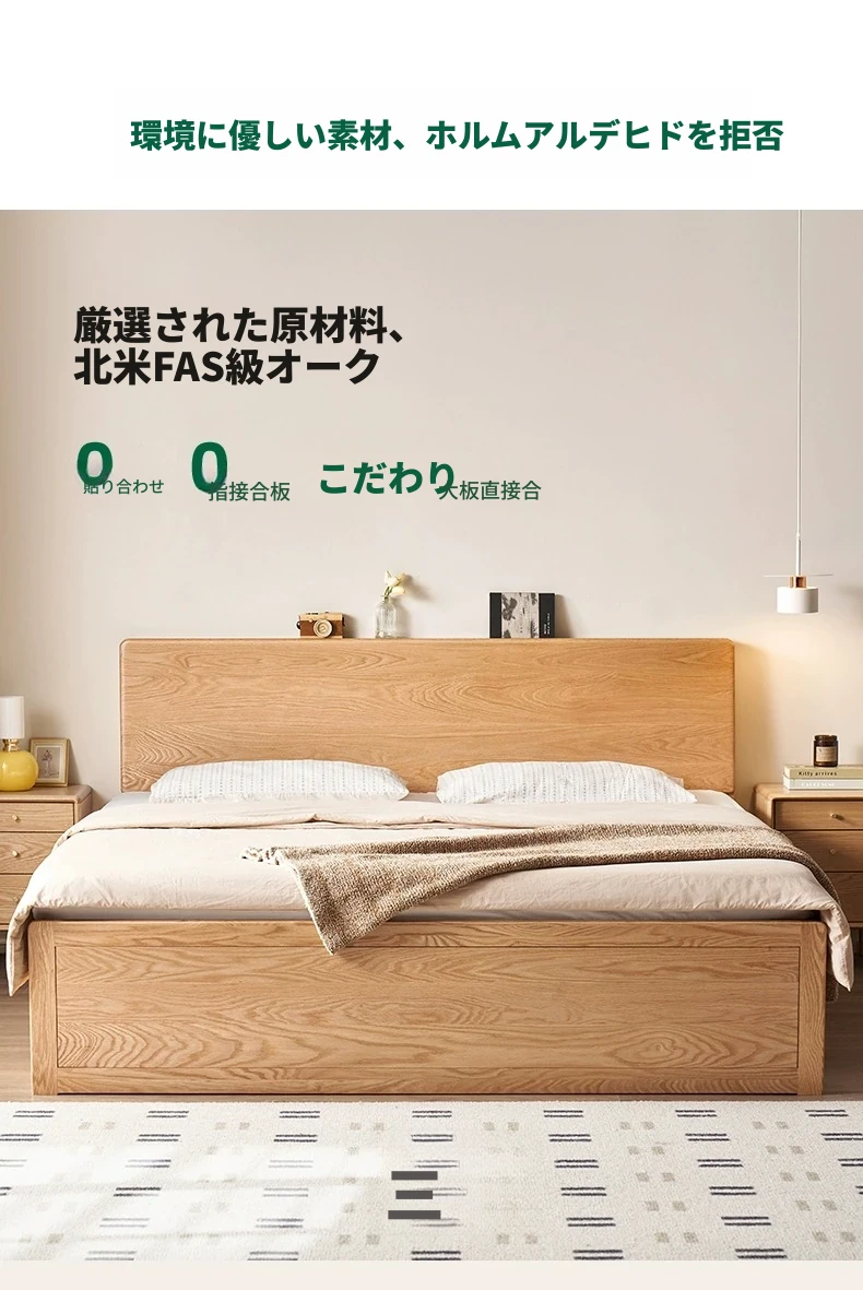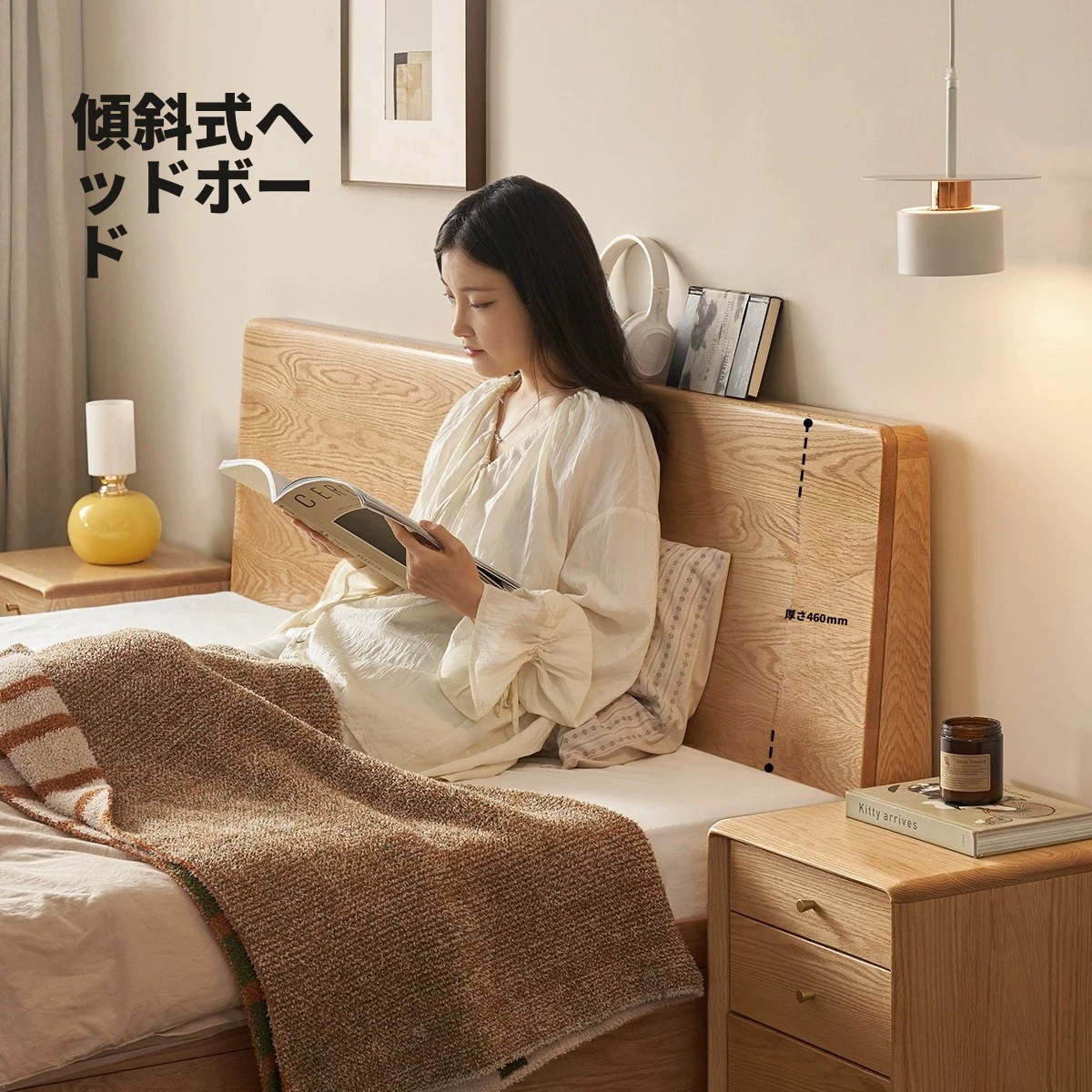 【オーク-ナチュラルカラー】禾沐ベッド(フラットボックス-あり)