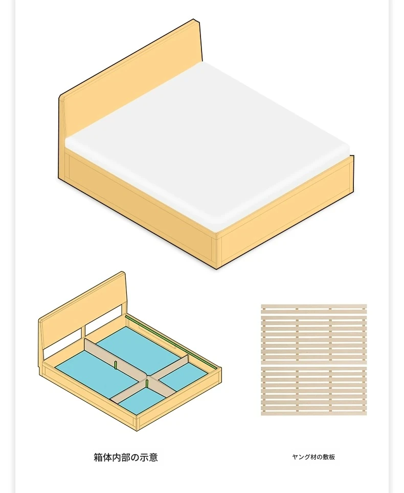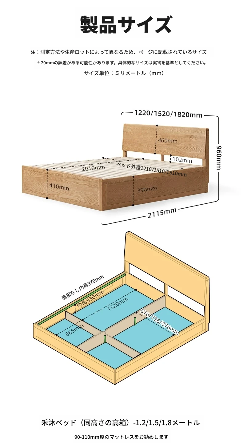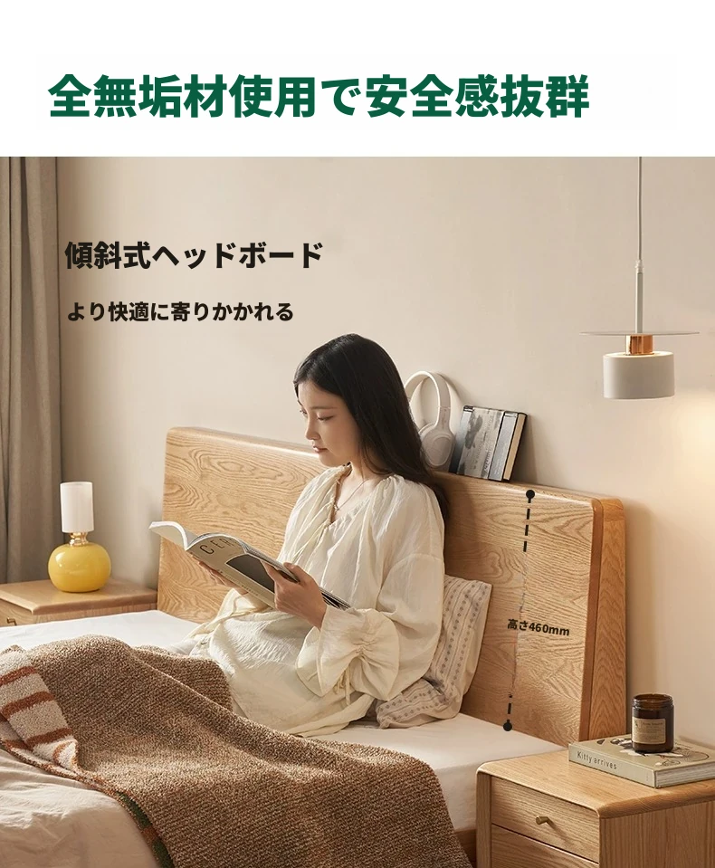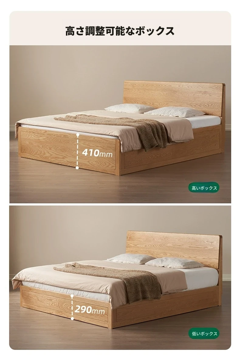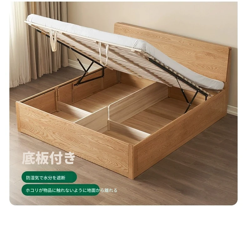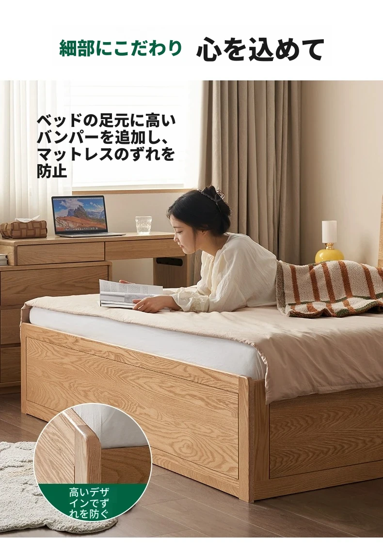 【オーク-ナチュラルカラー】禾沐ベッド(フラットボックス-あり)