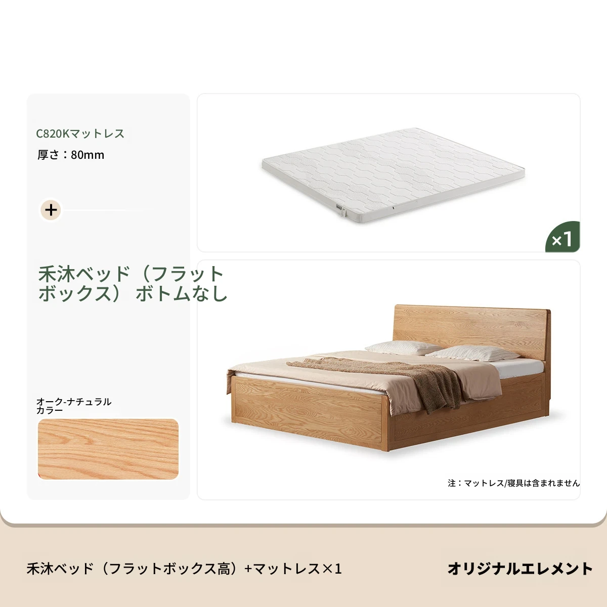 【オーク-ナチュラルカラー】禾沐ベッド(フラットボックス-あり)+原森マットレス(フルネットラテックスマット)