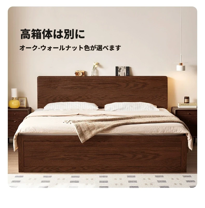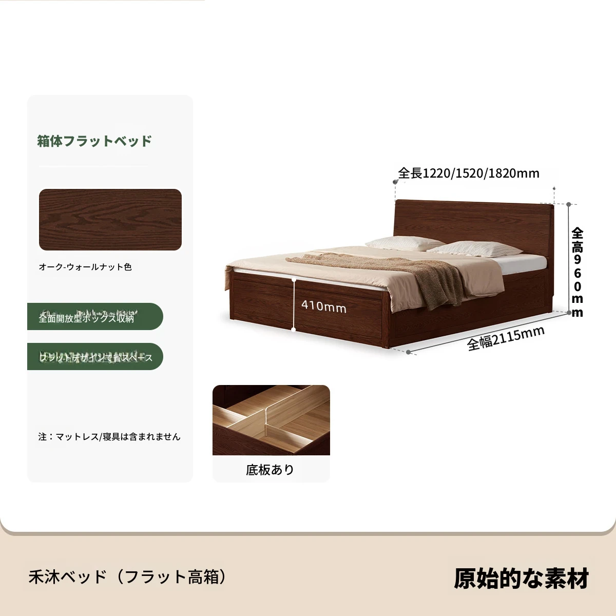 【オーク-ウォールナットカラー】禾沐ベッド(フラットボックス-あり)
