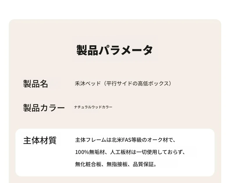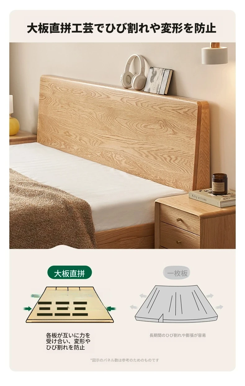 【オーク-ナチュラルカラー】禾沐ベッド(フラットボックス-なし)