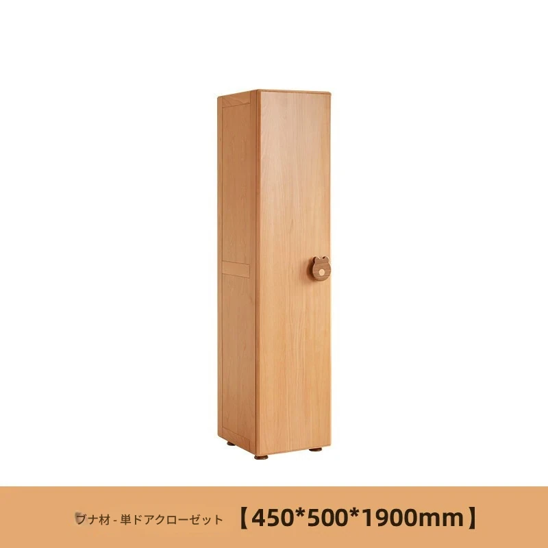 ナチュラルウッド色 ビーチ材の子供用クローゼット(シングルドア)450*500*1900mm