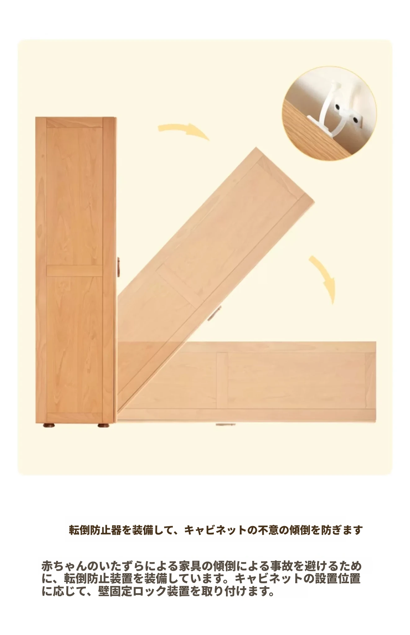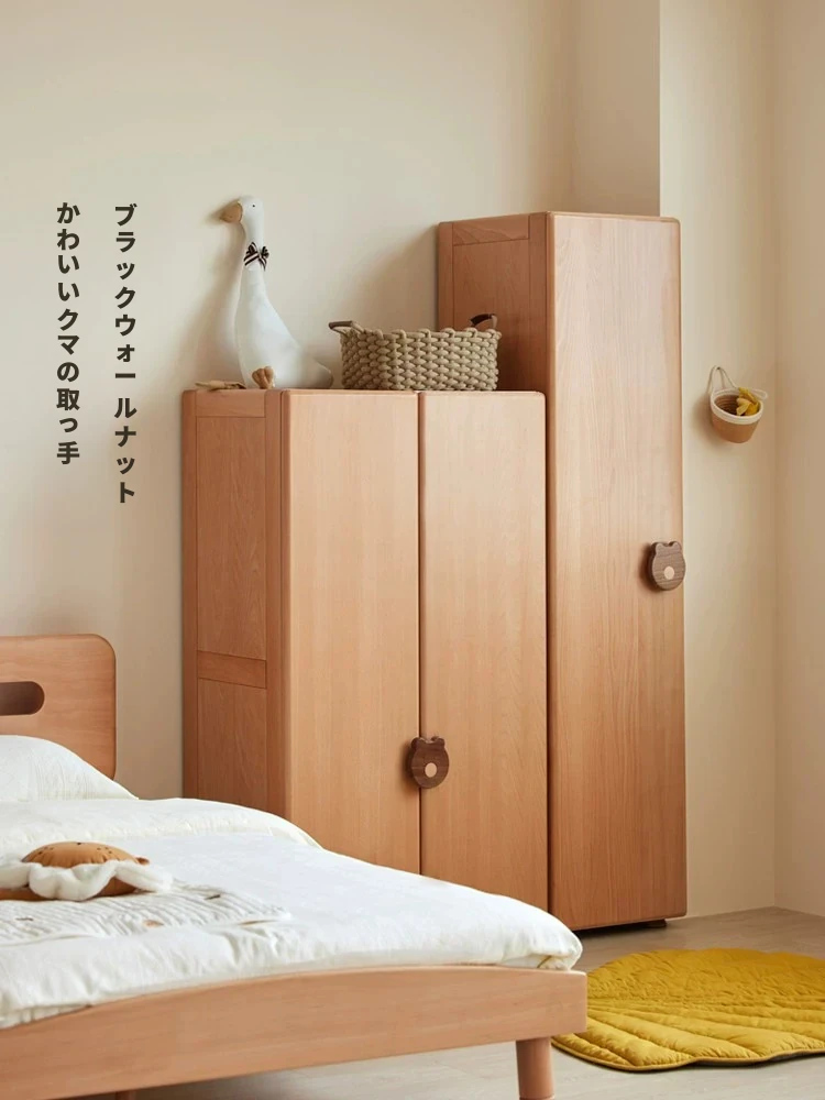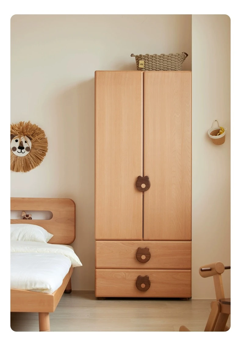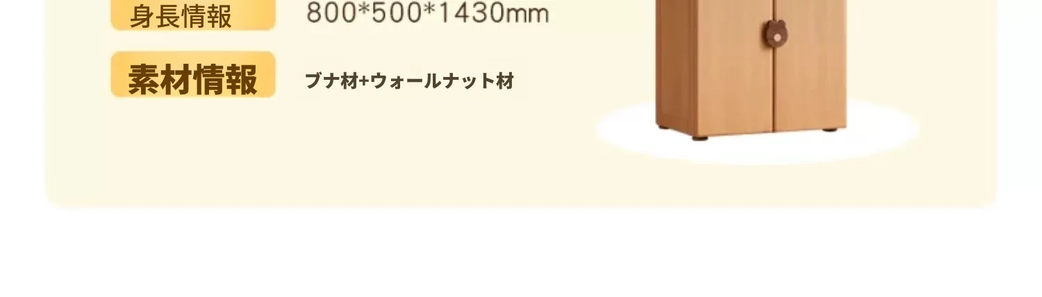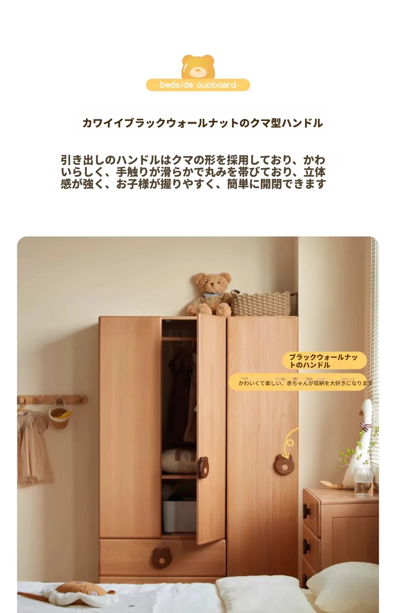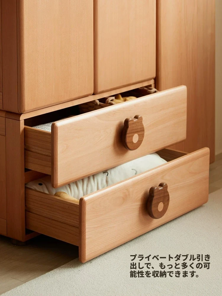 ナチュラルウッド色 ビーチ材の子供用クローゼット(ハイダブルドア)800*500*1430mm