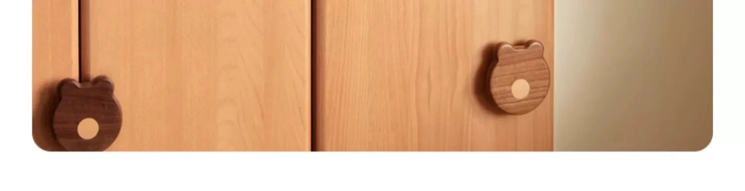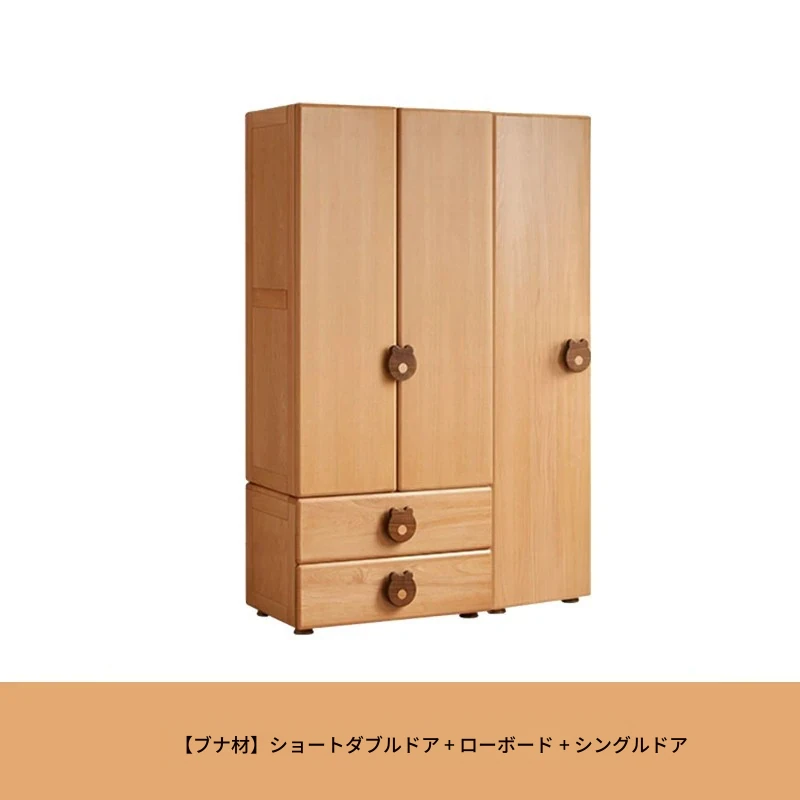 ナチュラルウッド色 ビーチ材の子供用クローゼット(ハイダブルドア+シングルドア+下棚)コンビネーション1250*500*1900