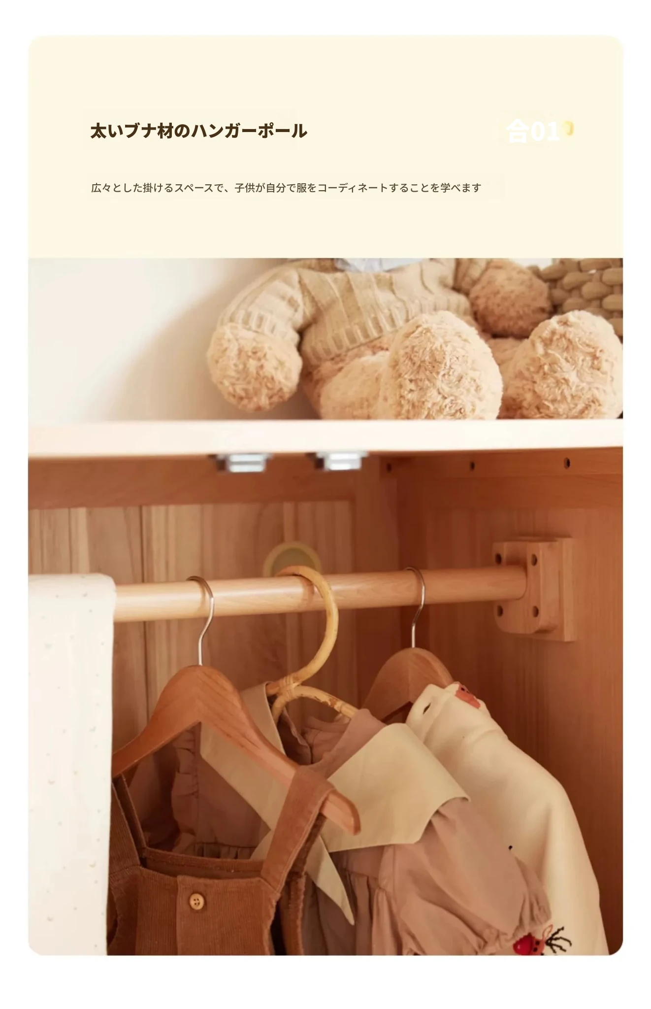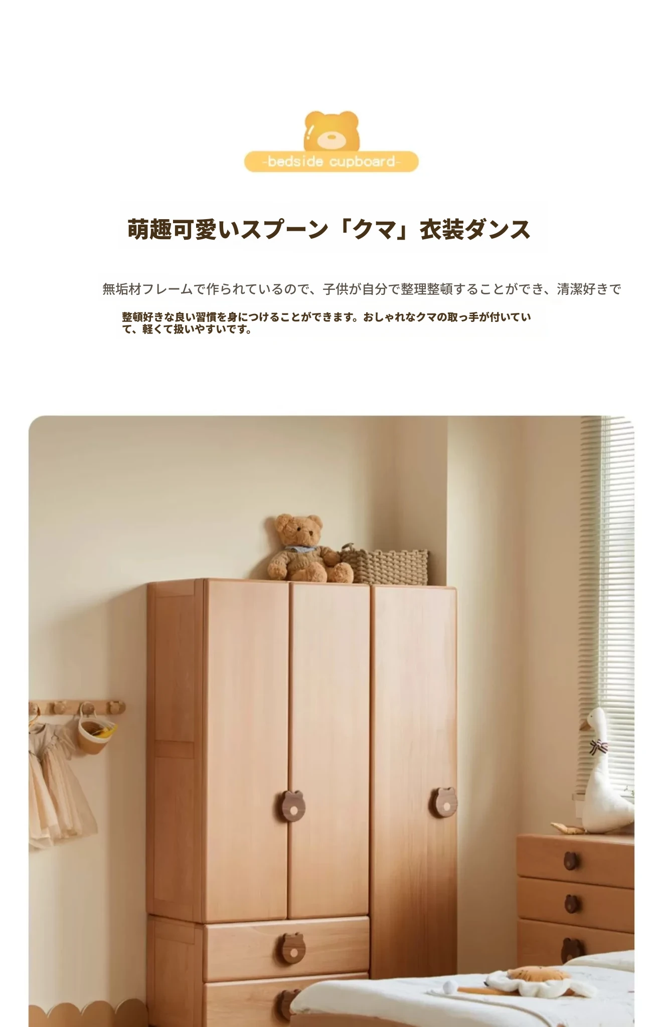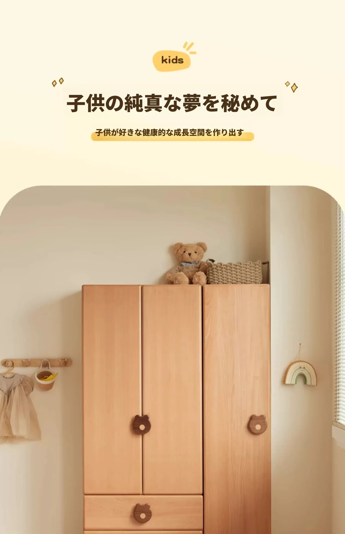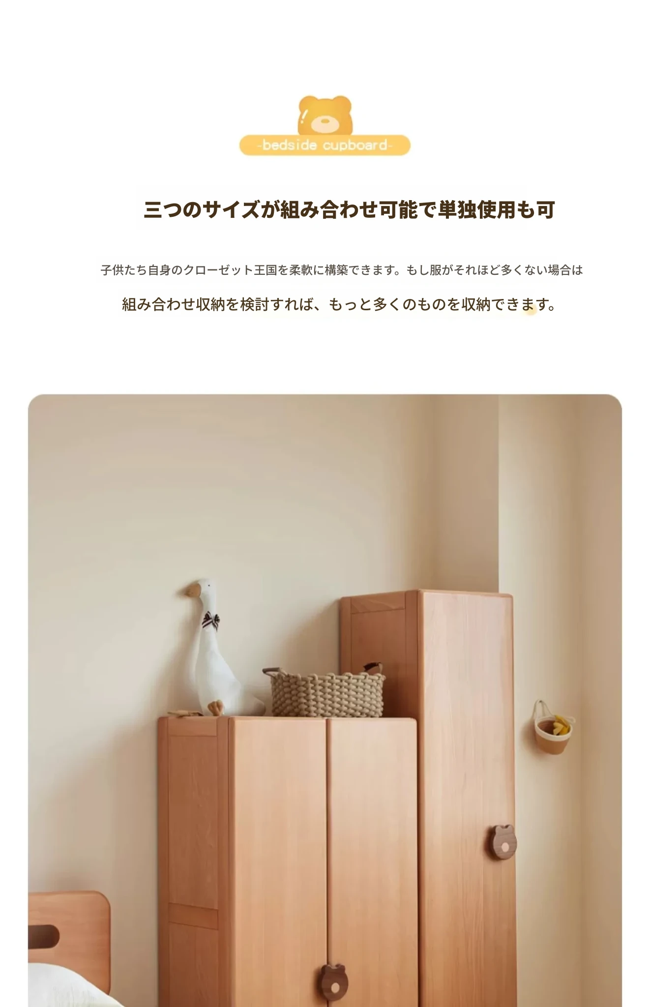 オーガニック無垢材 キッズクローゼット 自由に組み合わせ可能な収納キャビネット 小型住宅に最適 男の子・女の子向け おしゃれで機能的なデザインで、お部屋をスッキリ整理!