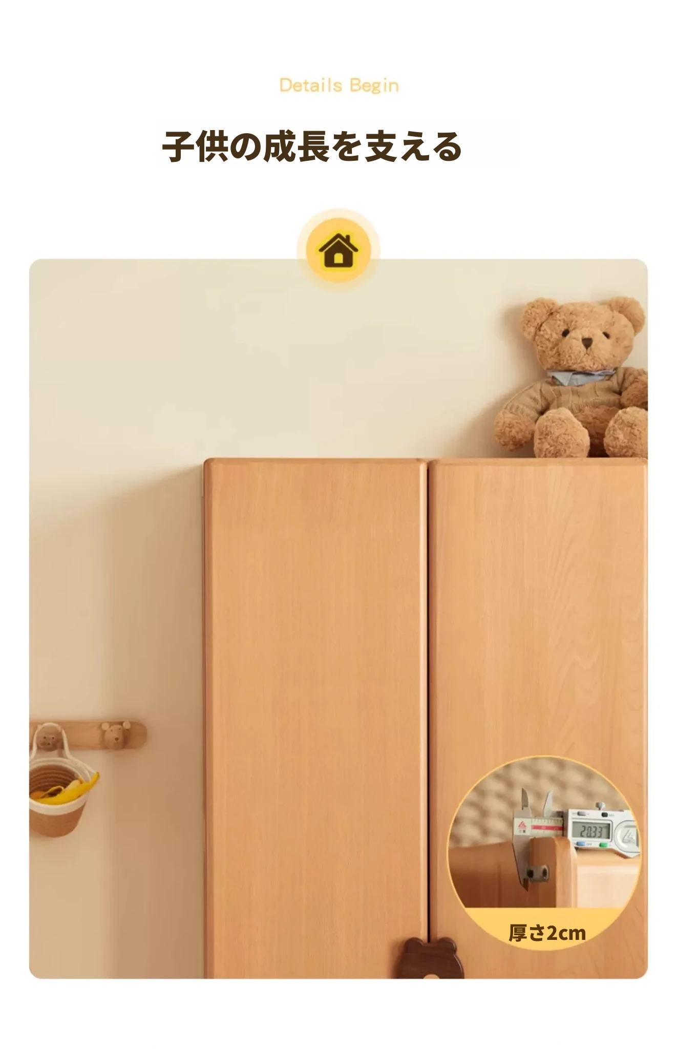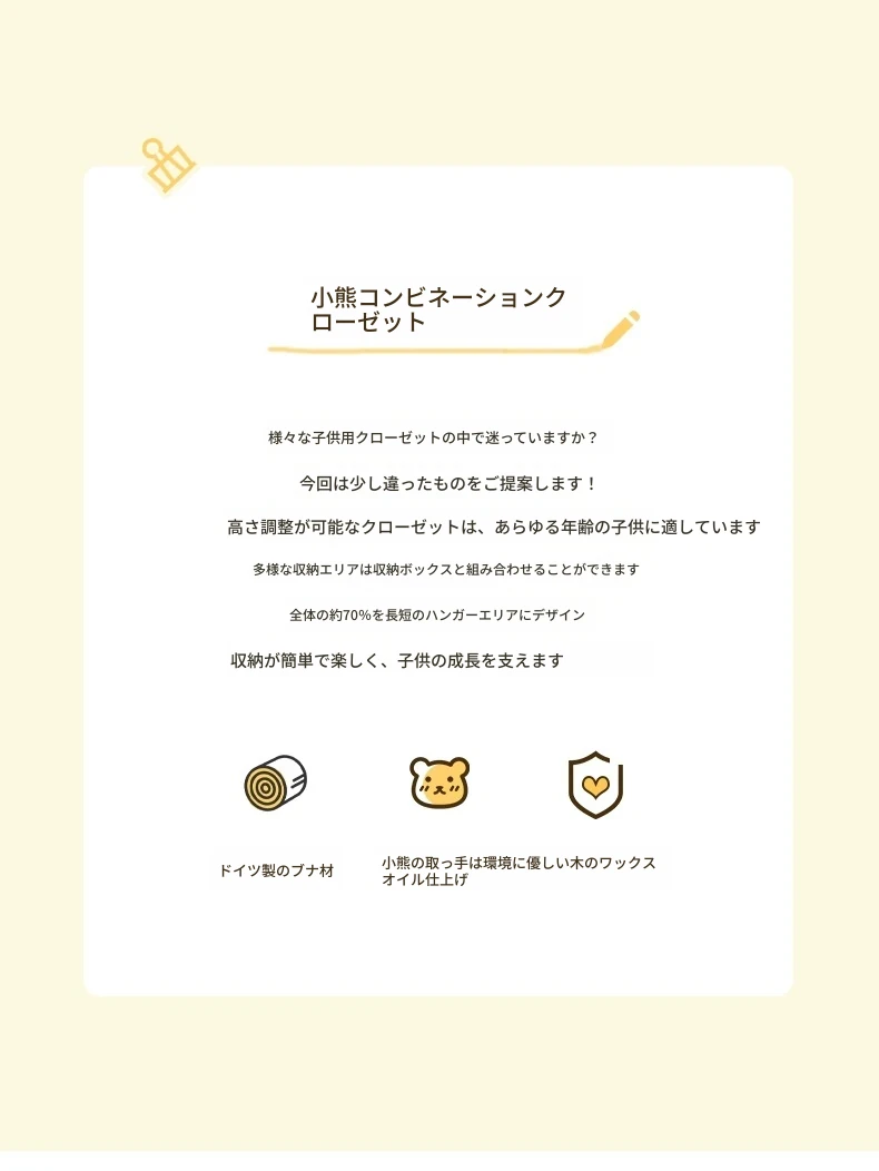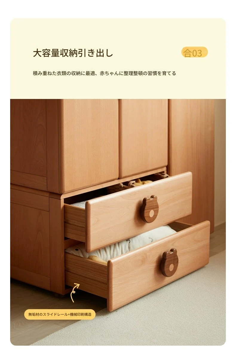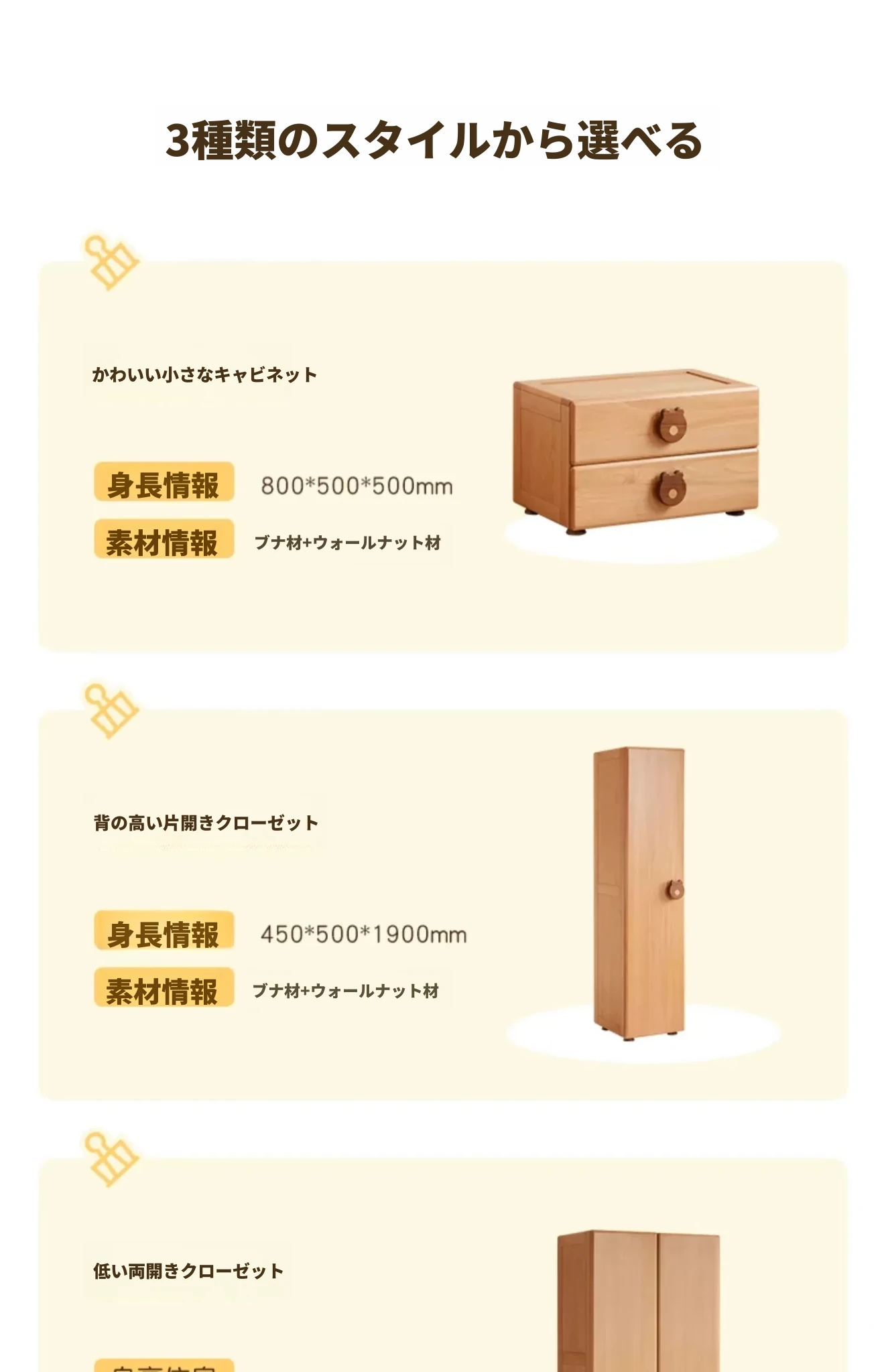 オーガニック無垢材 キッズクローゼット 自由に組み合わせ可能な収納キャビネット 小型住宅に最適 男の子・女の子向け おしゃれで機能的なデザインで、お部屋をスッキリ整理!