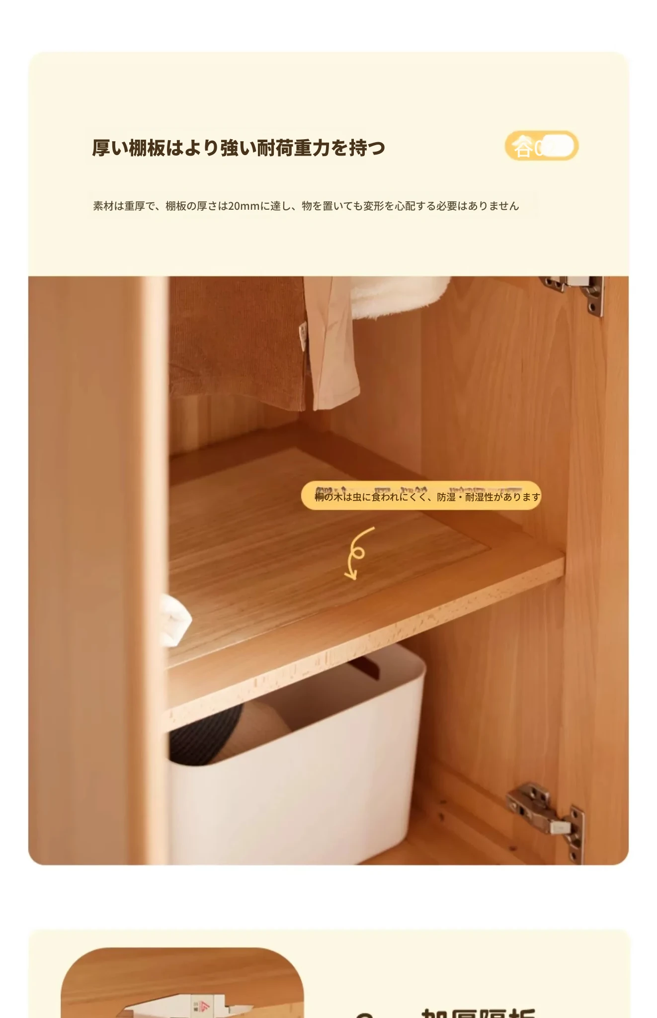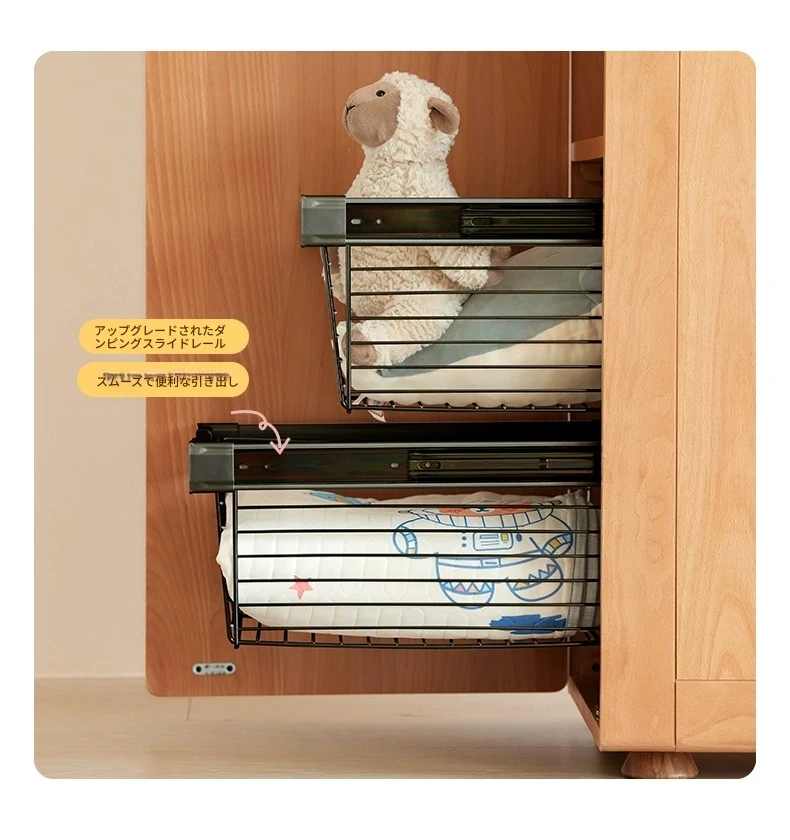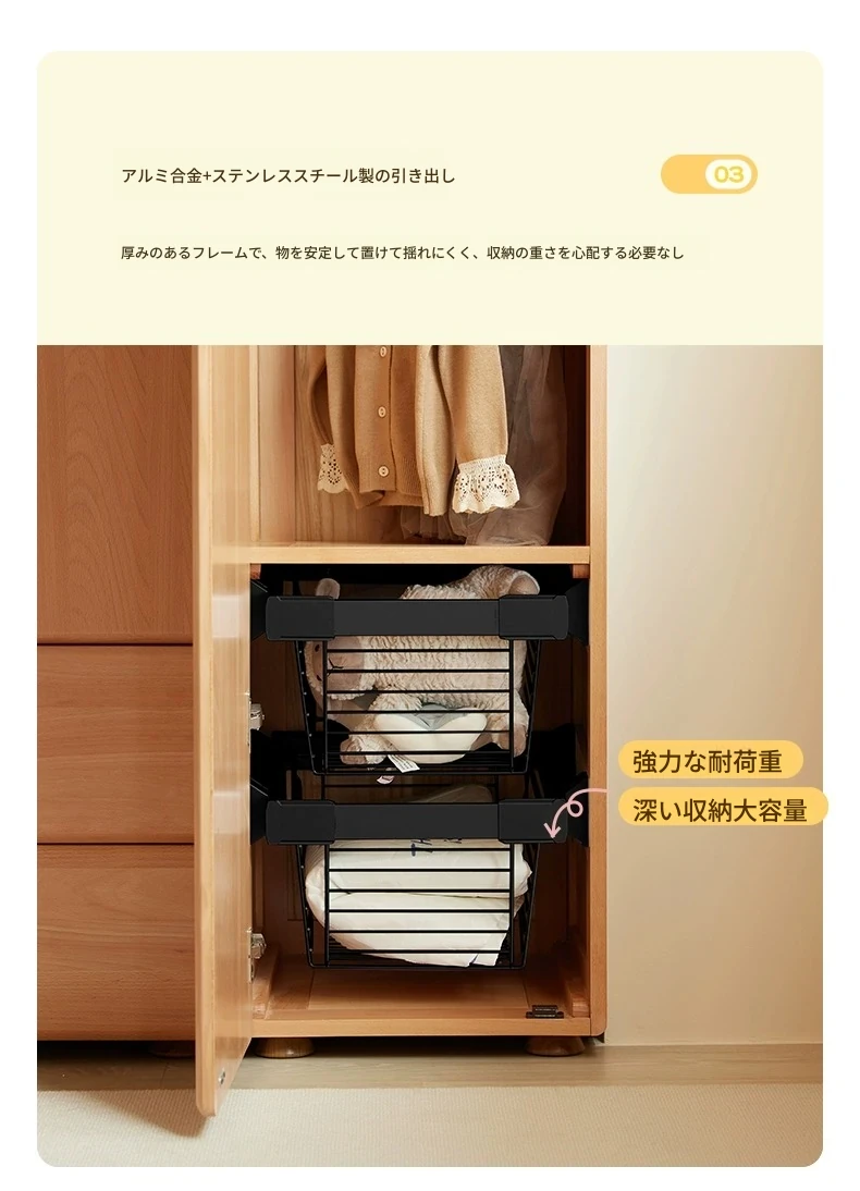 ナチュラルウッド色 ビーチ材の子供用クローゼット(下棚)800*500*500mm