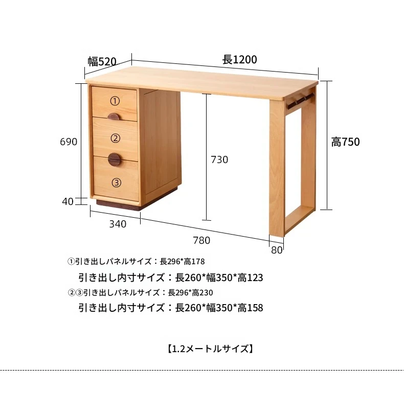 【ブナ-ナチュラルカラー】1.2メートルデスクキャビネット(1200*520*750mm)