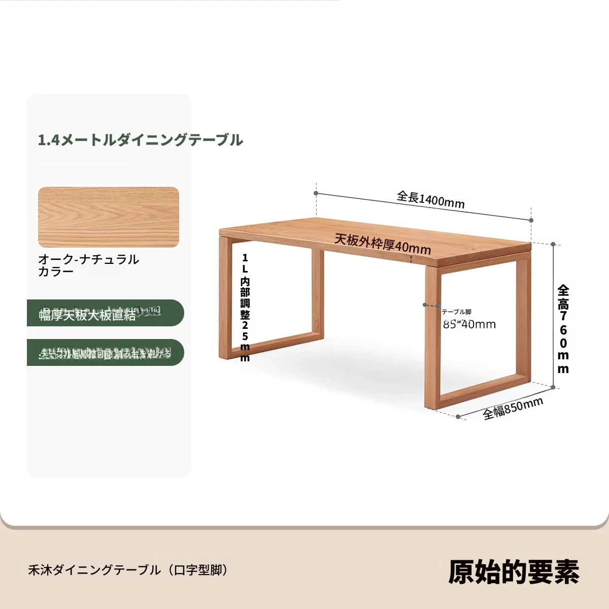 ナチュラルウッドカラー 1.4メートル無垢オークデスク 1400*850*760mm