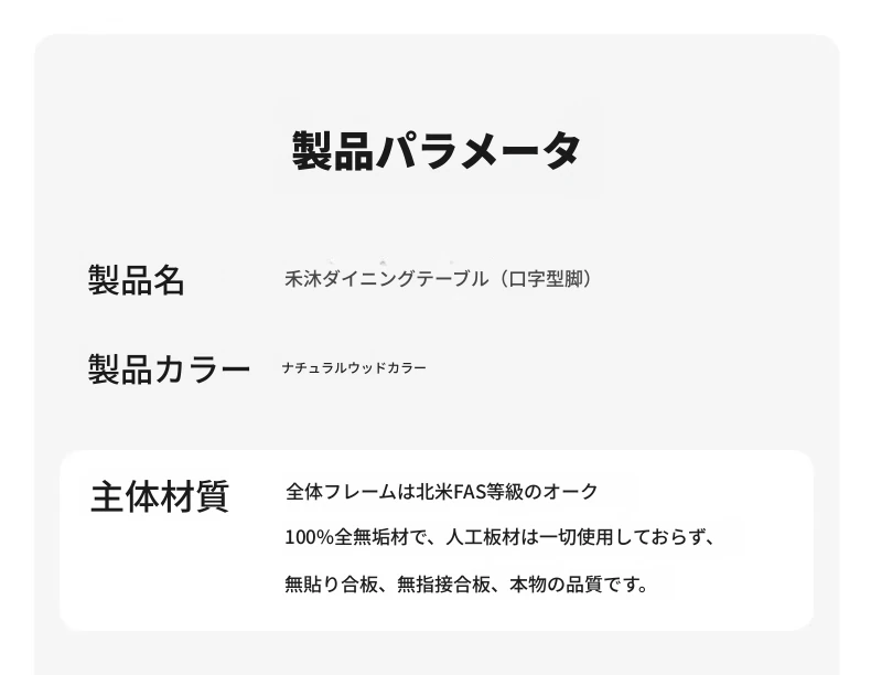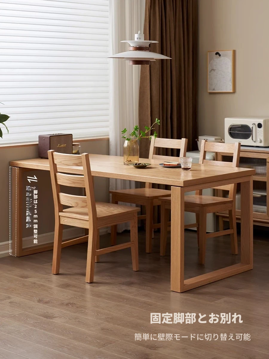 【オーク-ナチュラルウッドカラー】1.8メートル無垢オークダイニングテーブル+0.8mヘム辺テーブル(L7189)