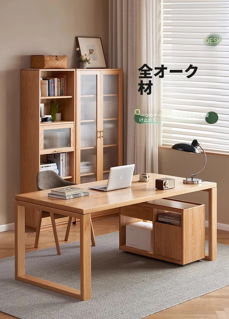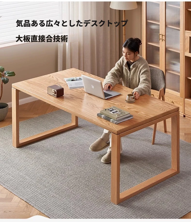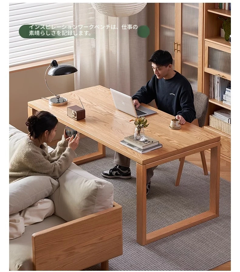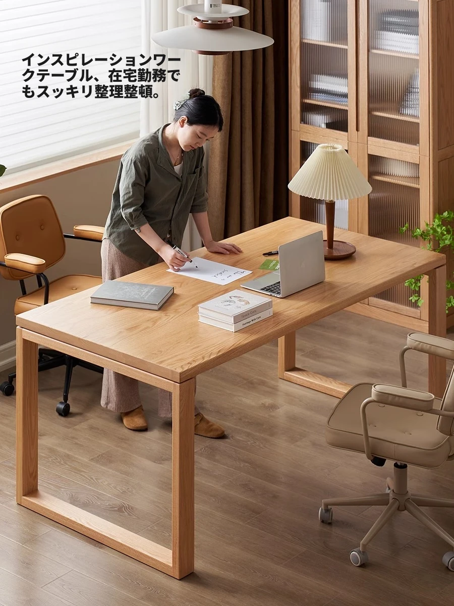 オーガニック無垢材のデスク|家庭用・書斎・オフィスに最適|広々としたオーク製ワークテーブル|高品質とスタイルを兼ね備えた理想の作業スペース!