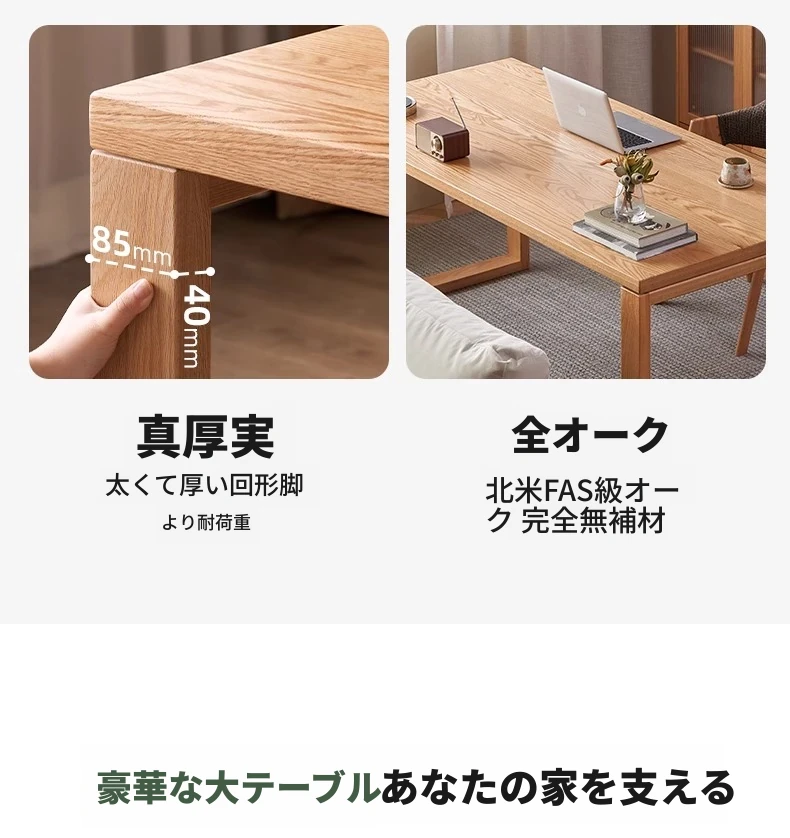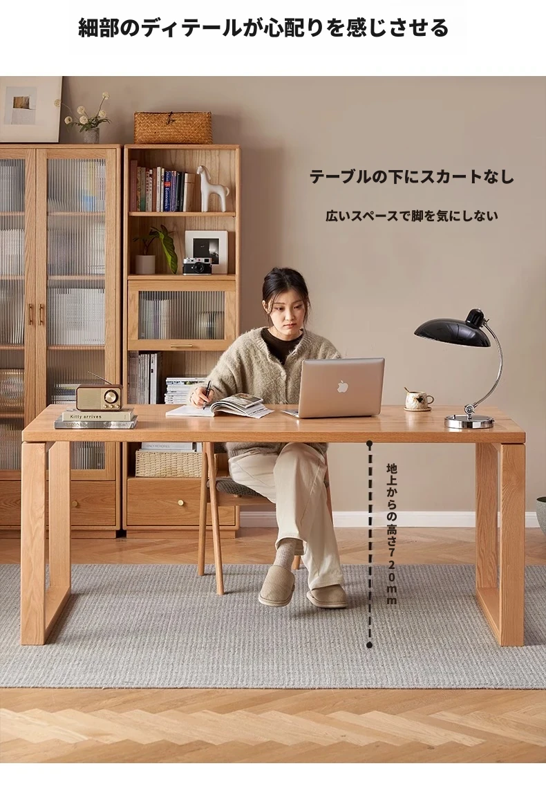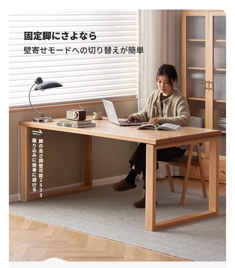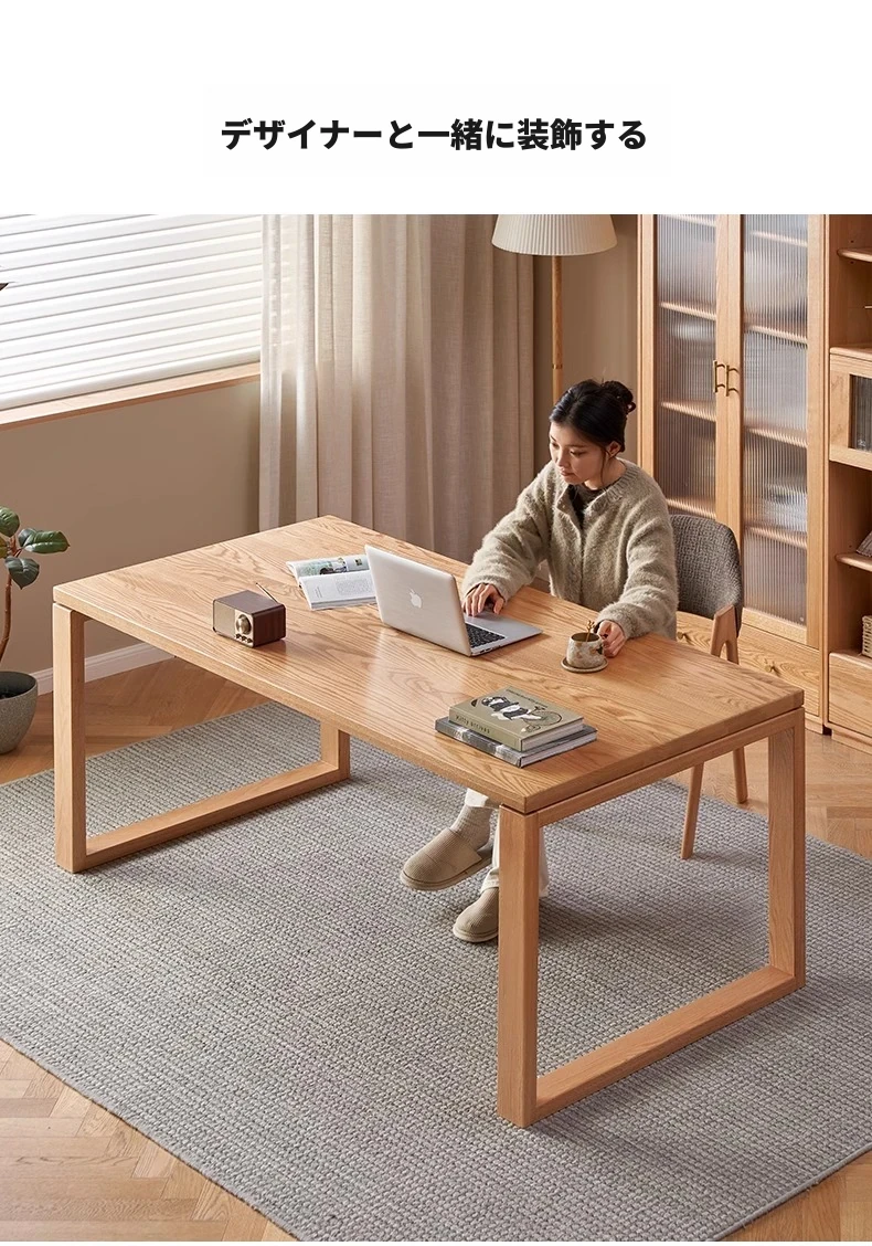 オーガニック無垢材のデスク|家庭用・書斎・オフィスに最適|広々としたオーク製ワークテーブル|高品質とスタイルを兼ね備えた理想の作業スペース!