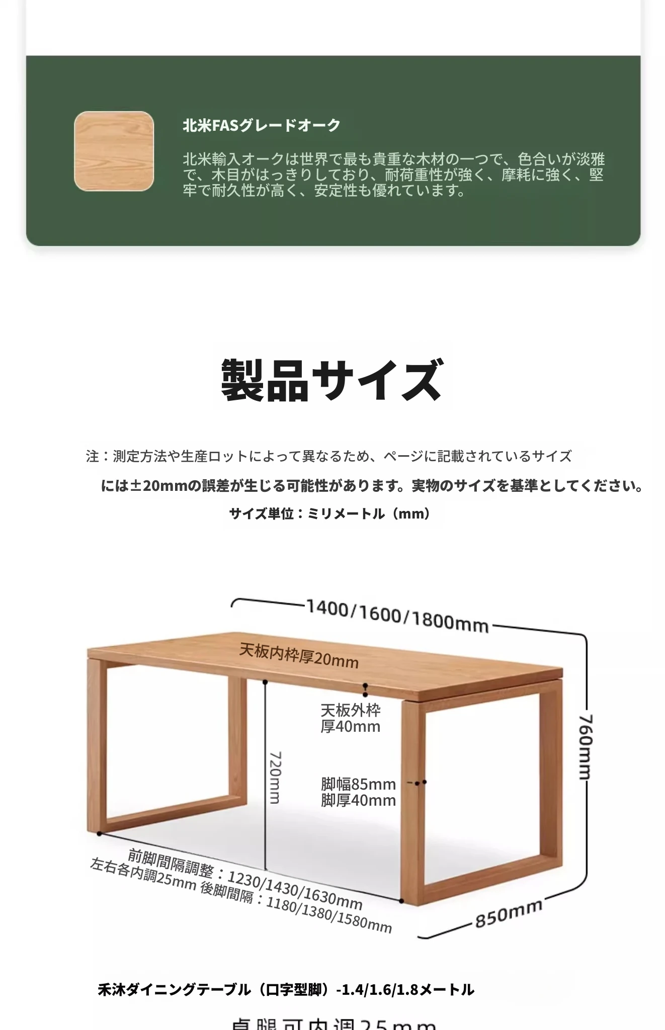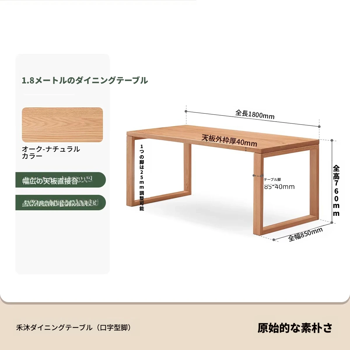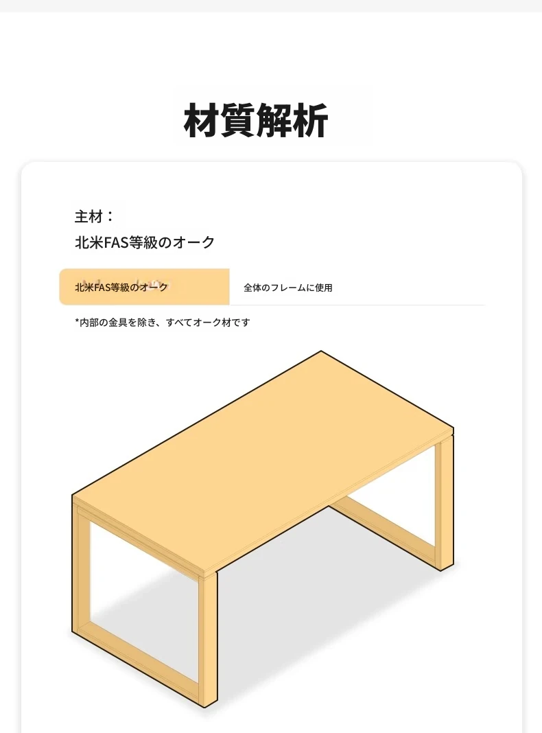 ナチュラルウッドカラー 1.8メートル無垢オークデスク 1800*850*760mm