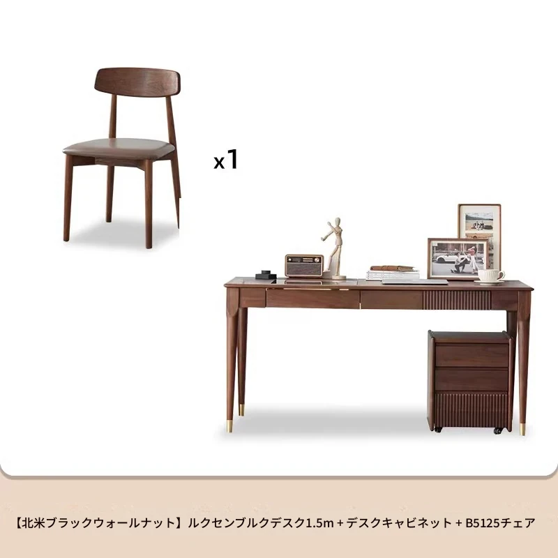 ブラックウォールナット1.5メートルダブルドロワーデスク+B5125椅子*1脚(LEDライト付き)