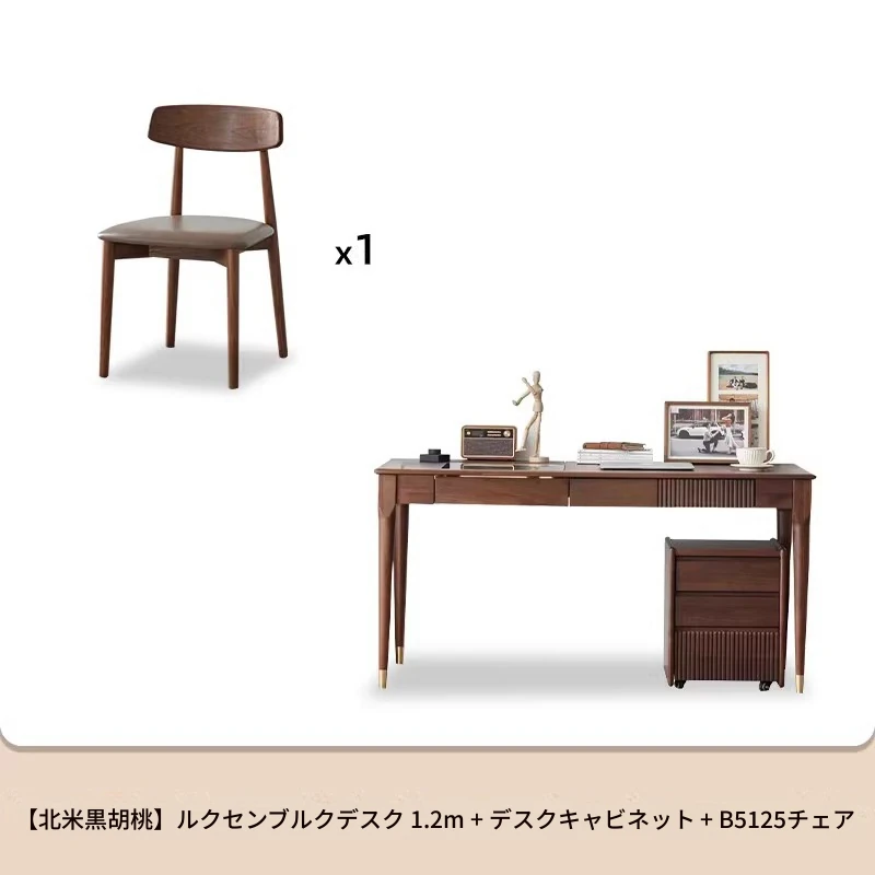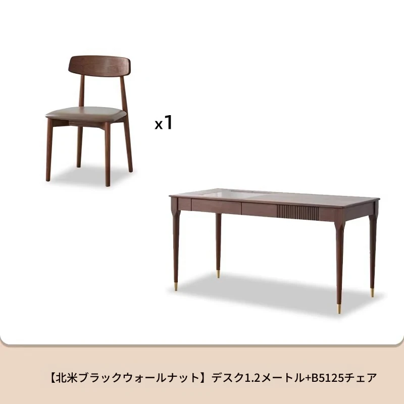 ブラックウォールナット1.2メートルダブルドロワーデスク+B5125椅子*1脚(LEDライト付き)