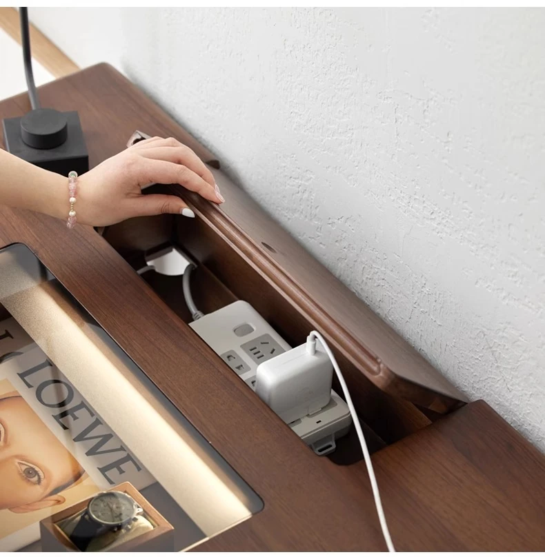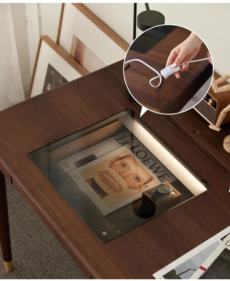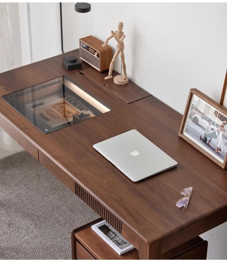 ブラックウォールナット1.2メートルダブルドロワーデスク(LEDライト付き)(1200*600*760mm)
