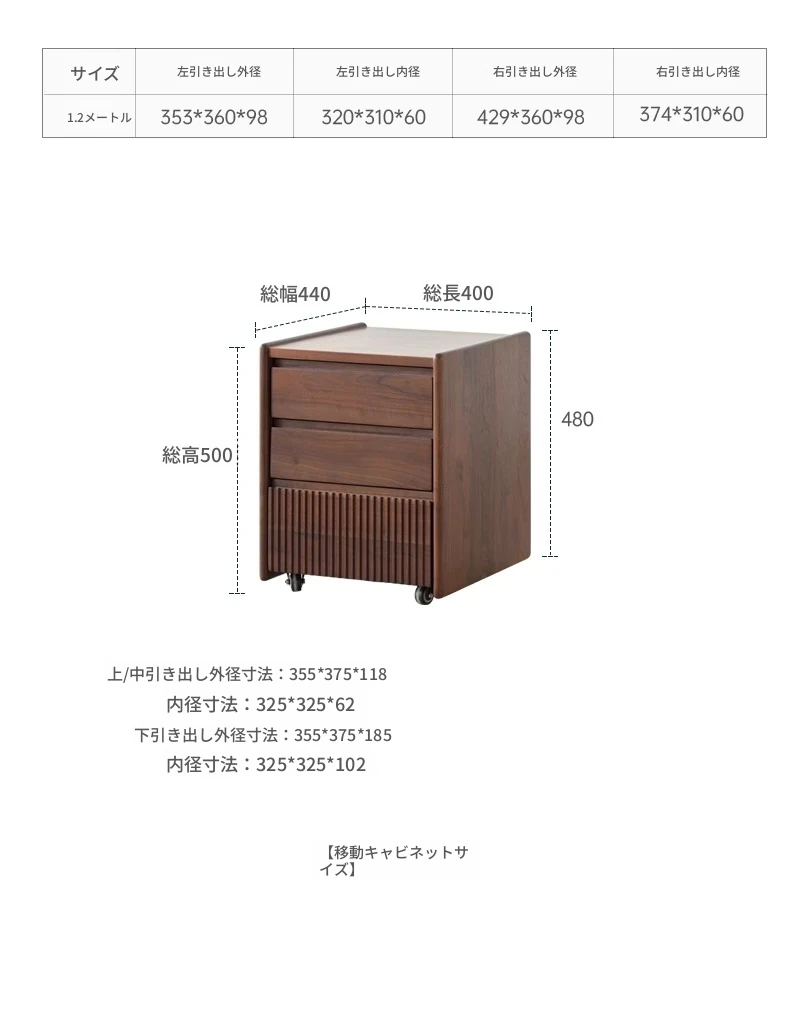 ブラックウォールナット移動キャビネット(400*440*500mm)