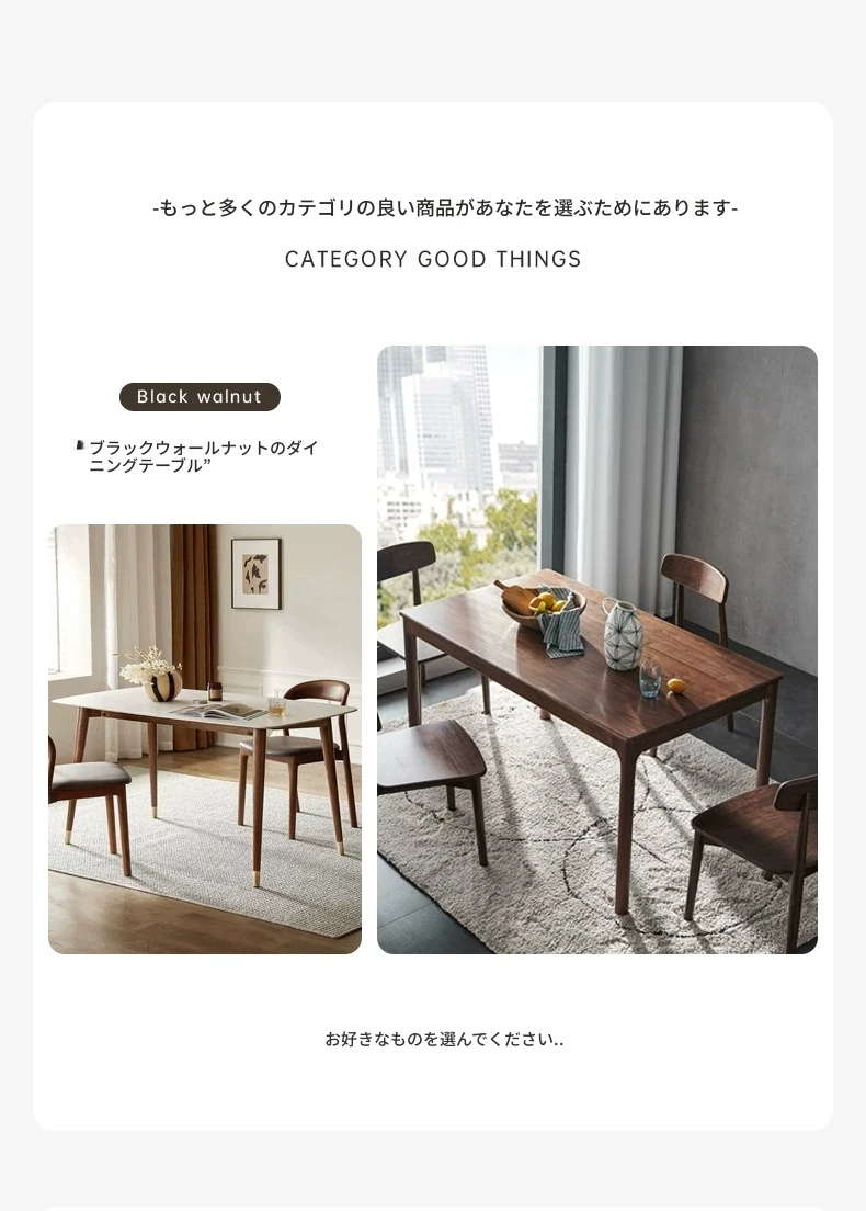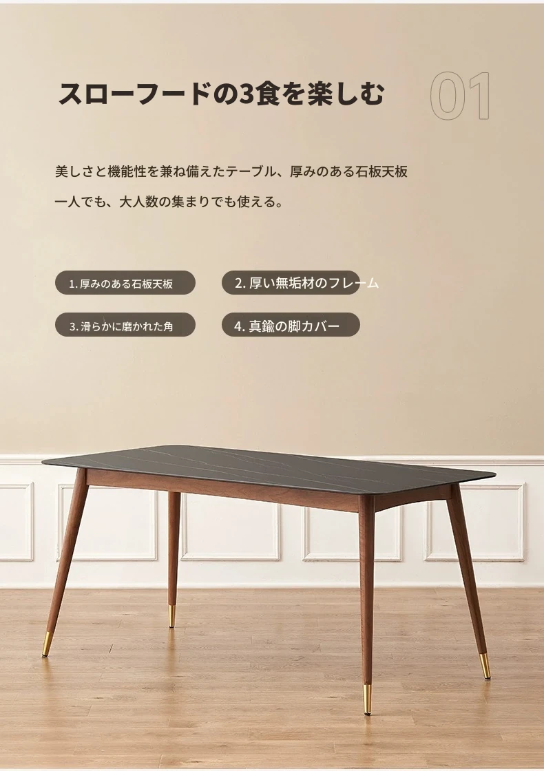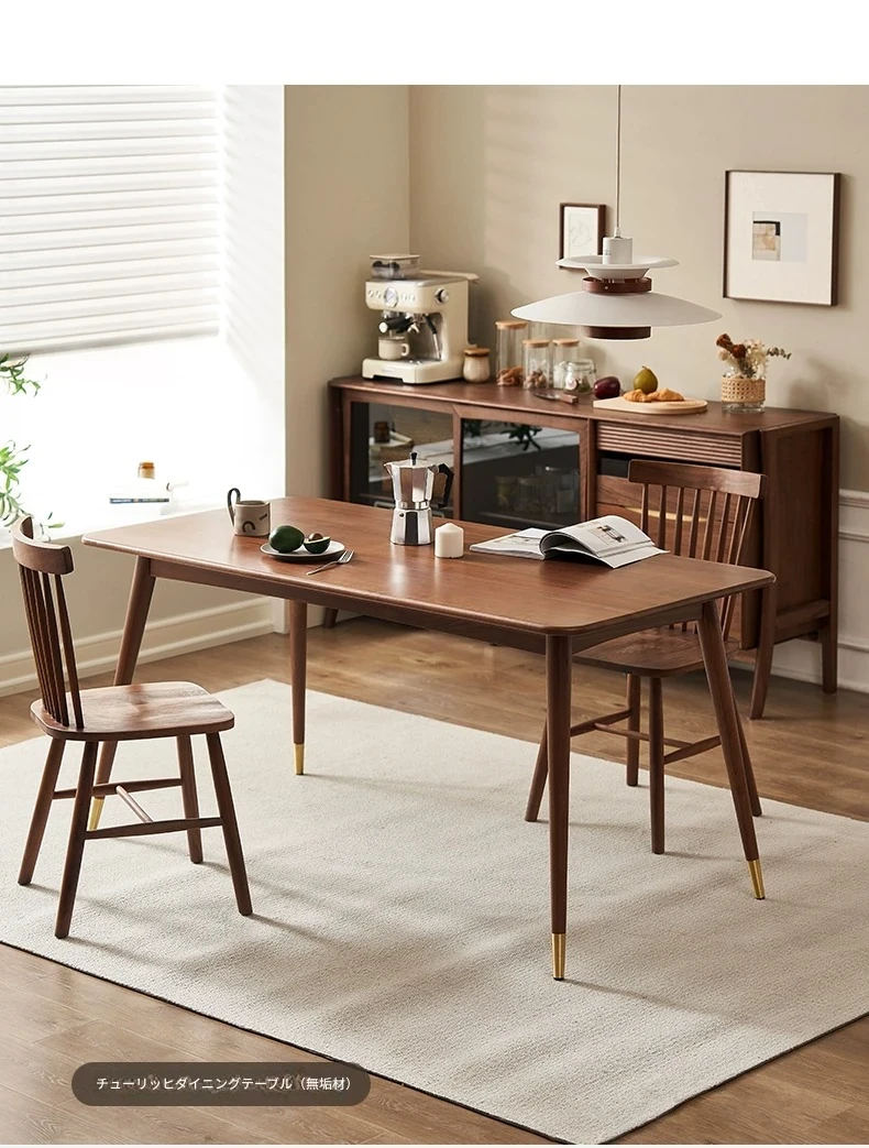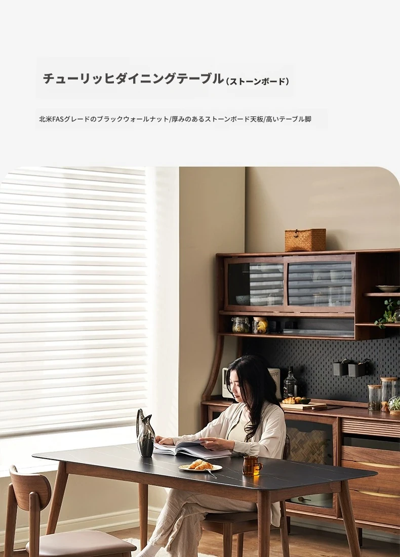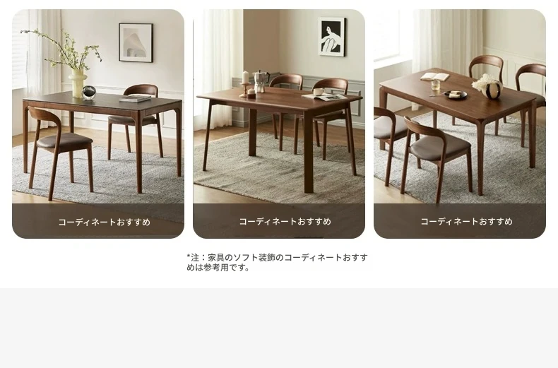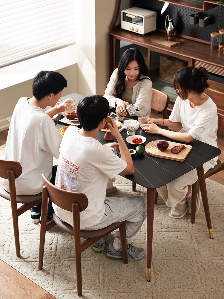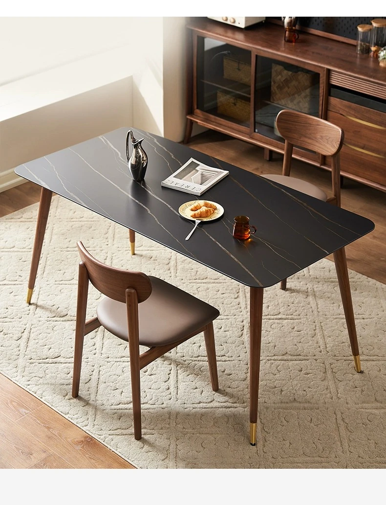 高級感あふれる無垢材ダイニングテーブルセット - ブラックウォールナットと岩板のコンビネーション、小型住宅に最適な使い勝手抜群の食卓。あなたの食事シーンを格上げする一品です。