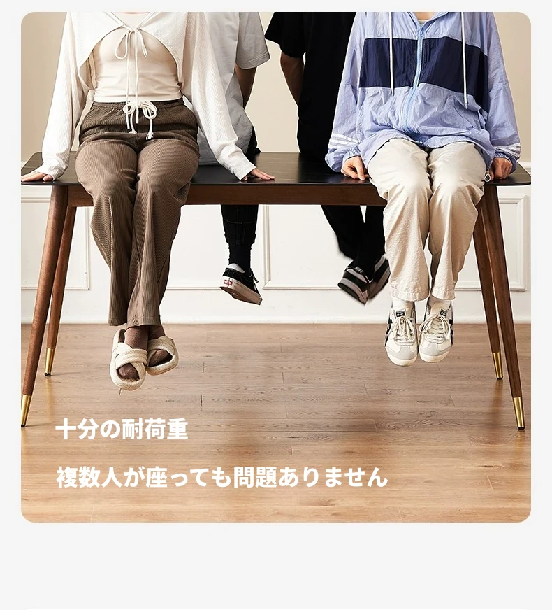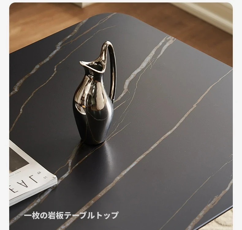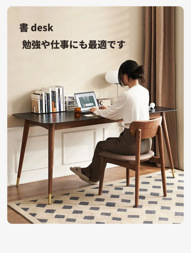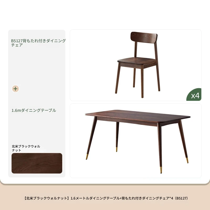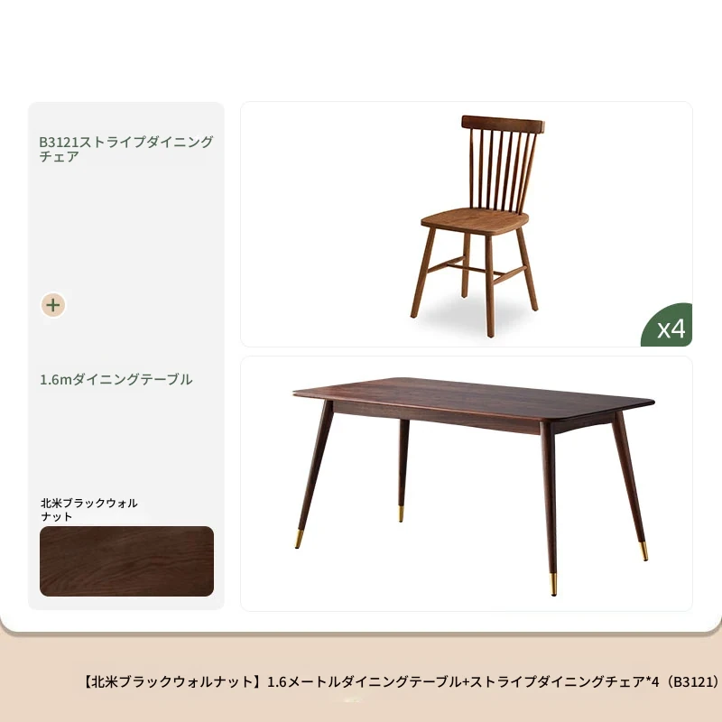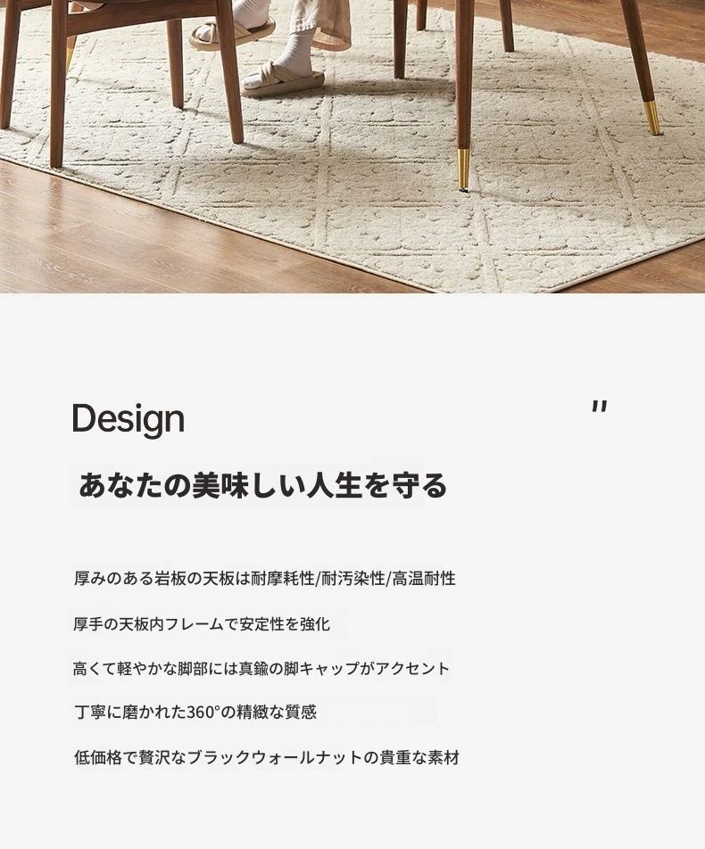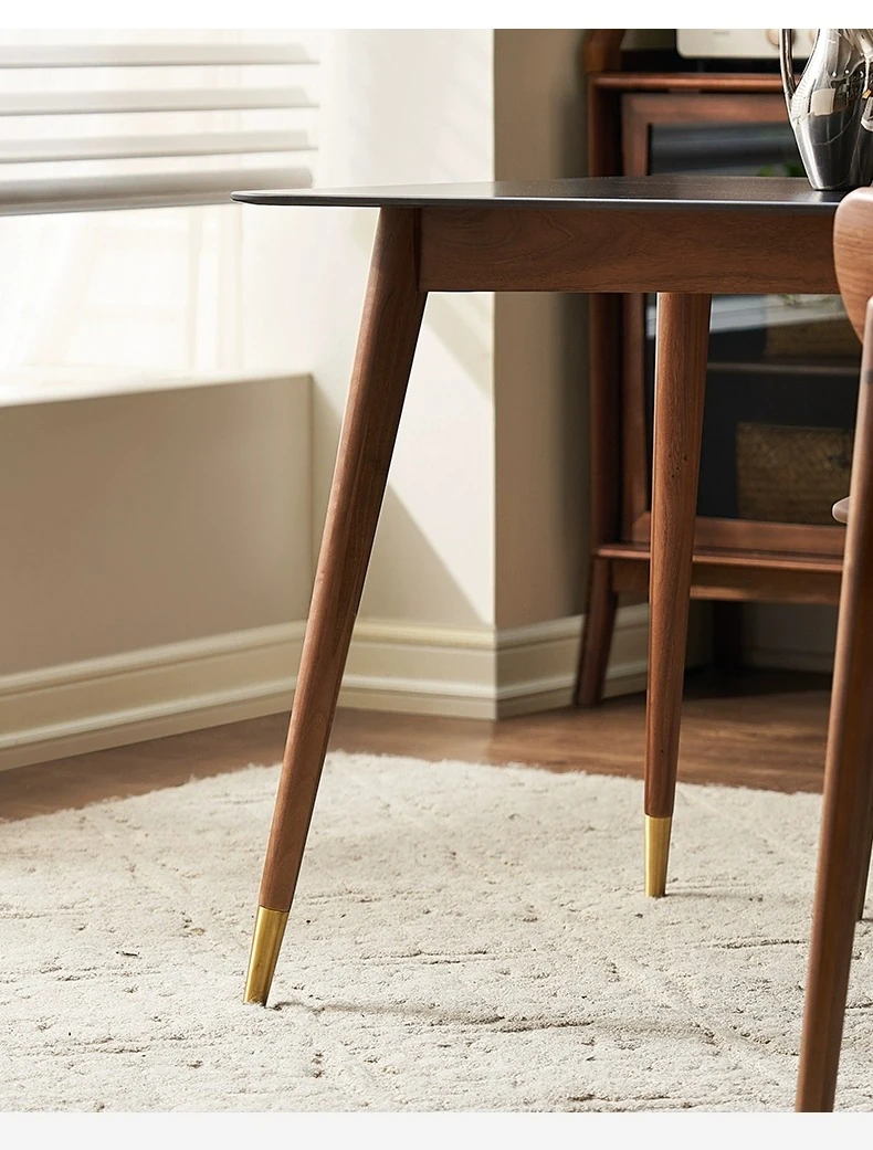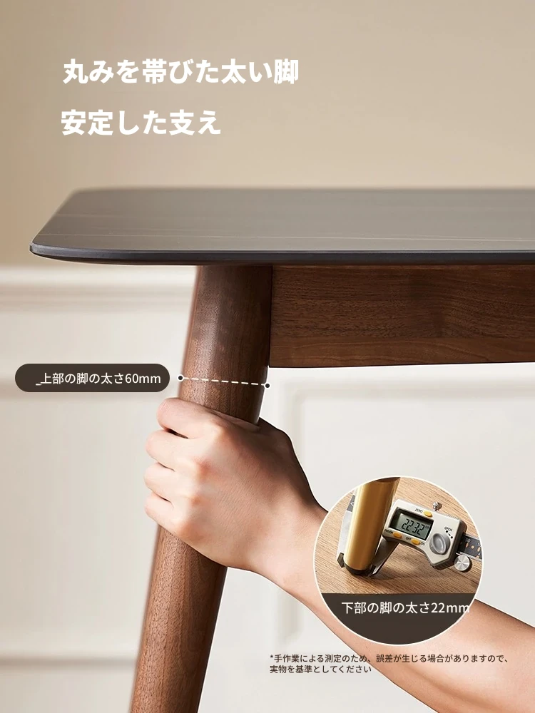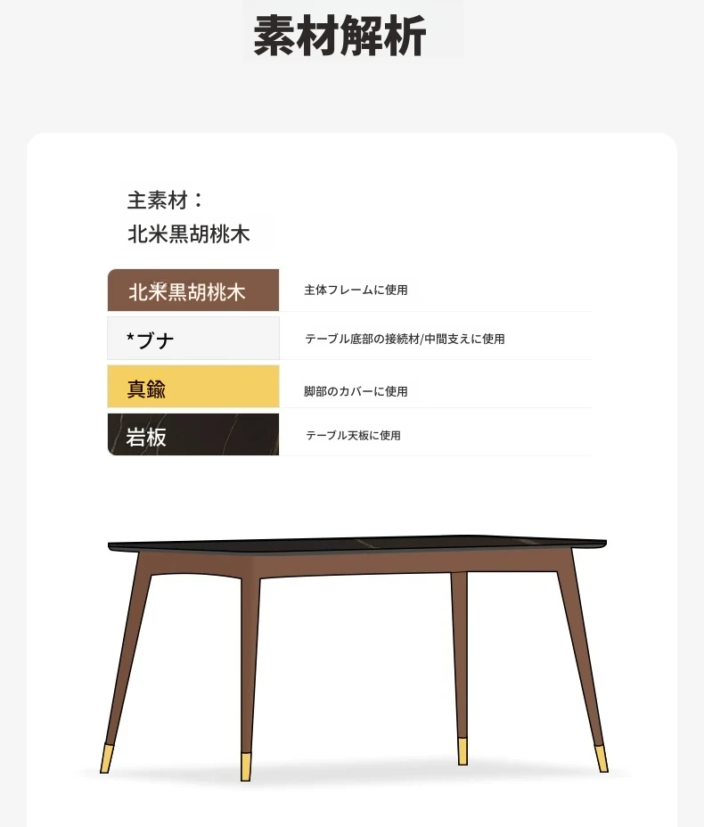 高級感あふれる無垢材ダイニングテーブルセット - ブラックウォールナットと岩板のコンビネーション、小型住宅に最適な使い勝手抜群の食卓。あなたの食事シーンを格上げする一品です。