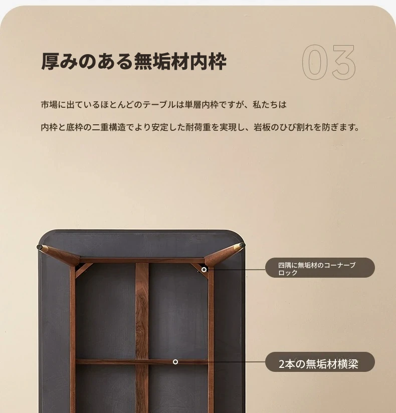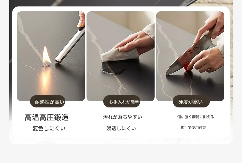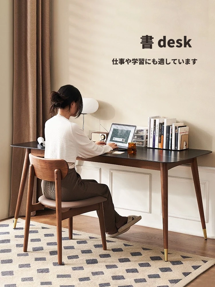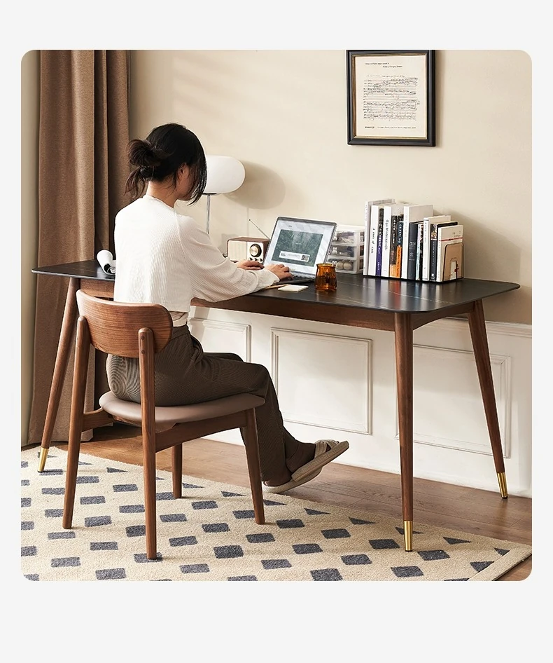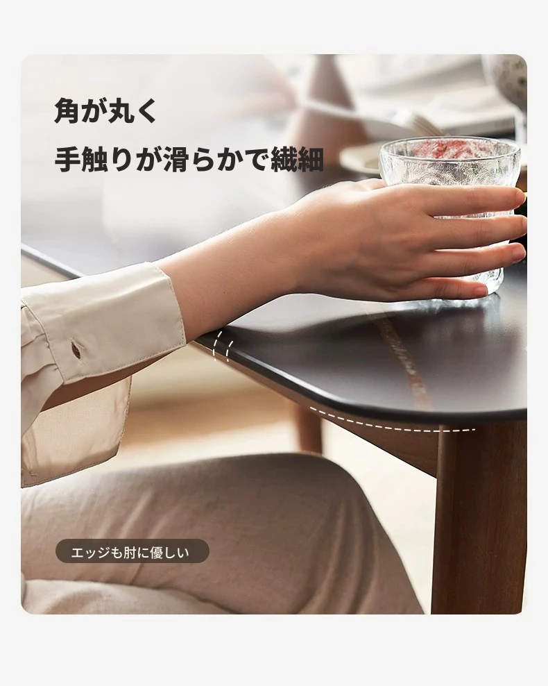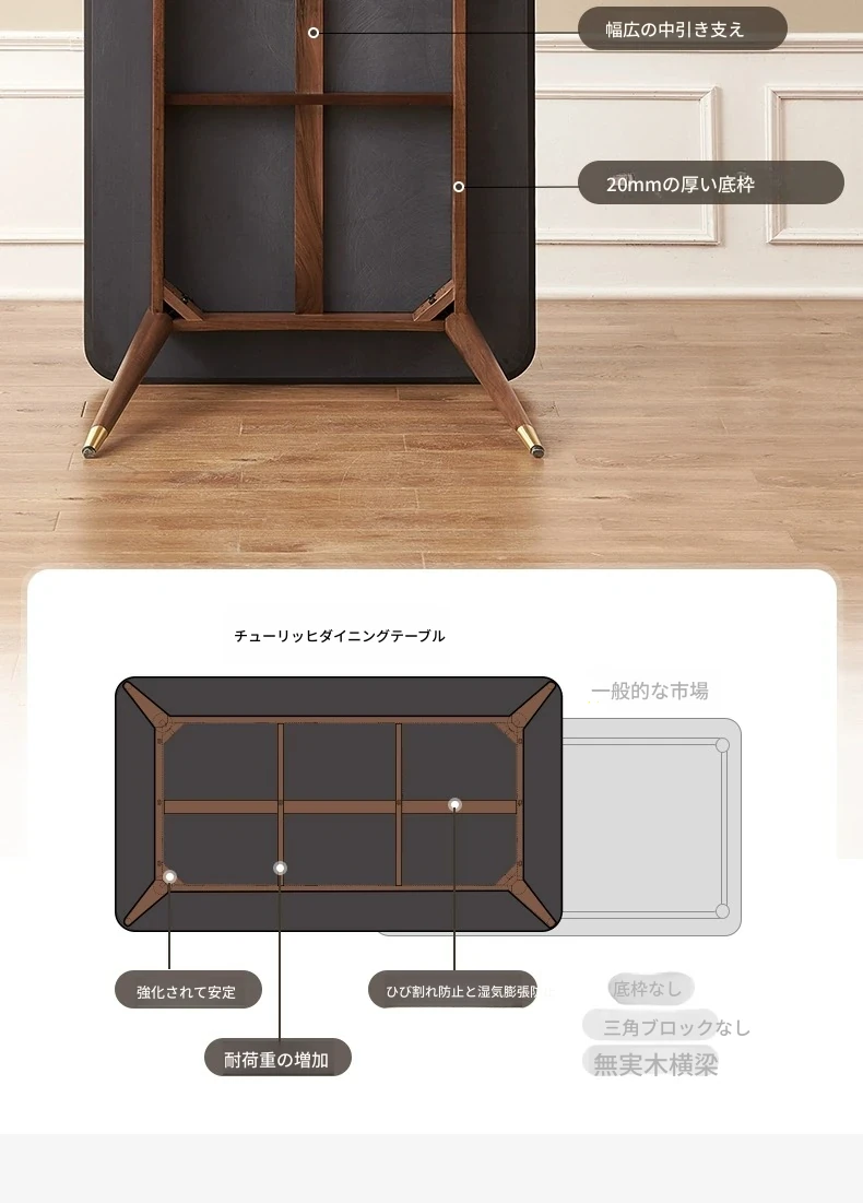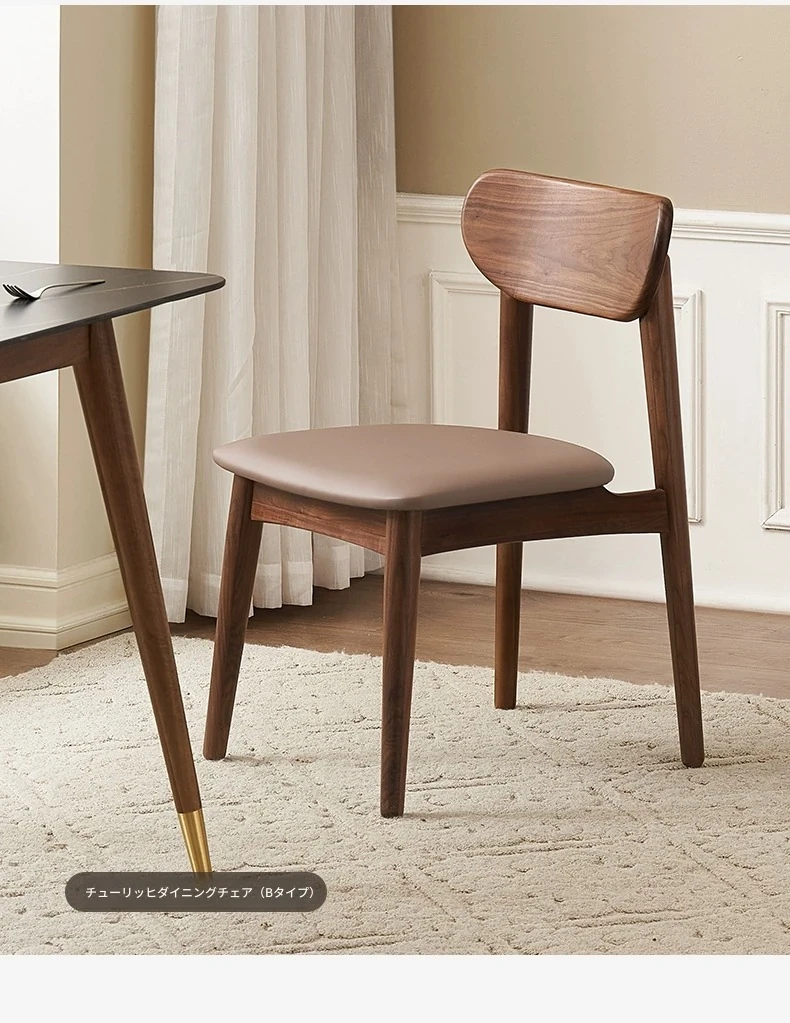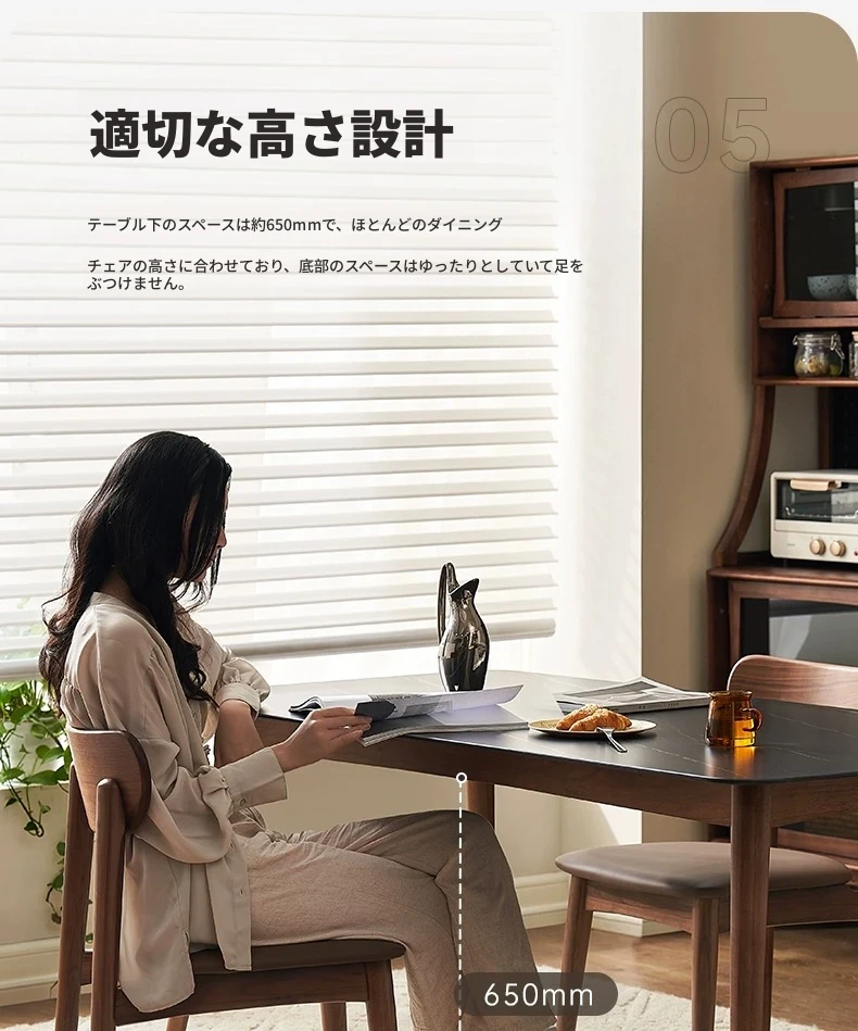 高級感あふれる無垢材ダイニングテーブルセット - ブラックウォールナットと岩板のコンビネーション、小型住宅に最適な使い勝手抜群の食卓。あなたの食事シーンを格上げする一品です。