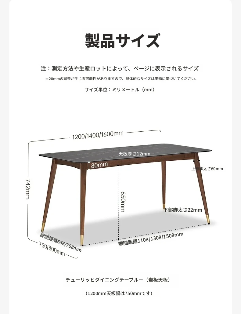 1.6メートル岩板ダイニングテーブル(北米ブラックウォールナット)1600*800*742mm