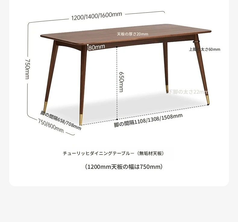 1.6mダイニングテーブル【北米ブラックウォールナット】1600*800*750mm