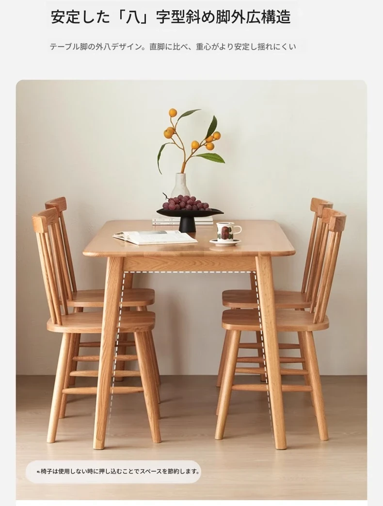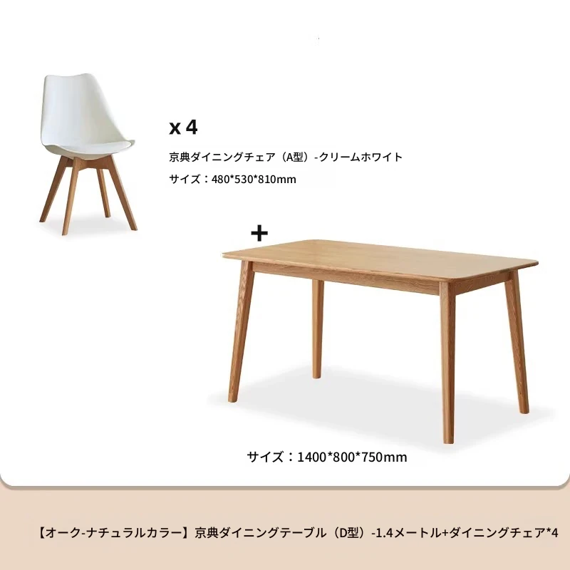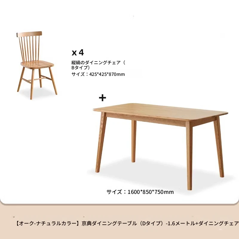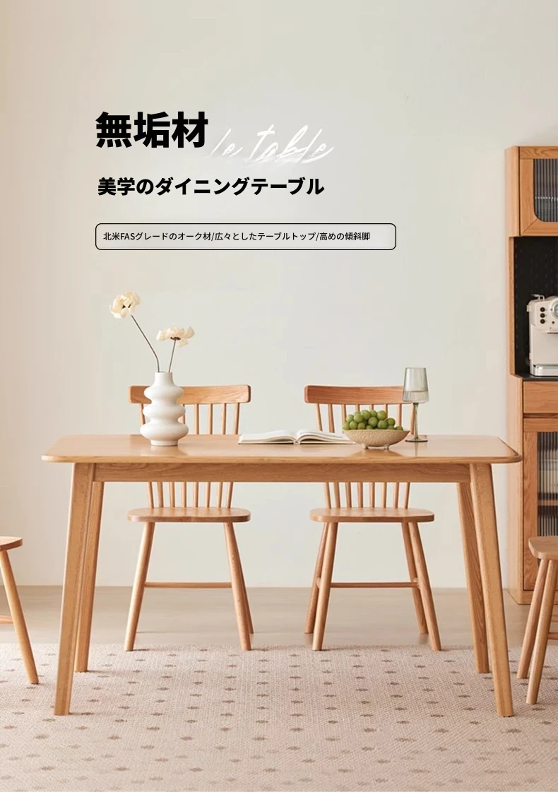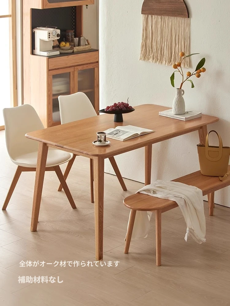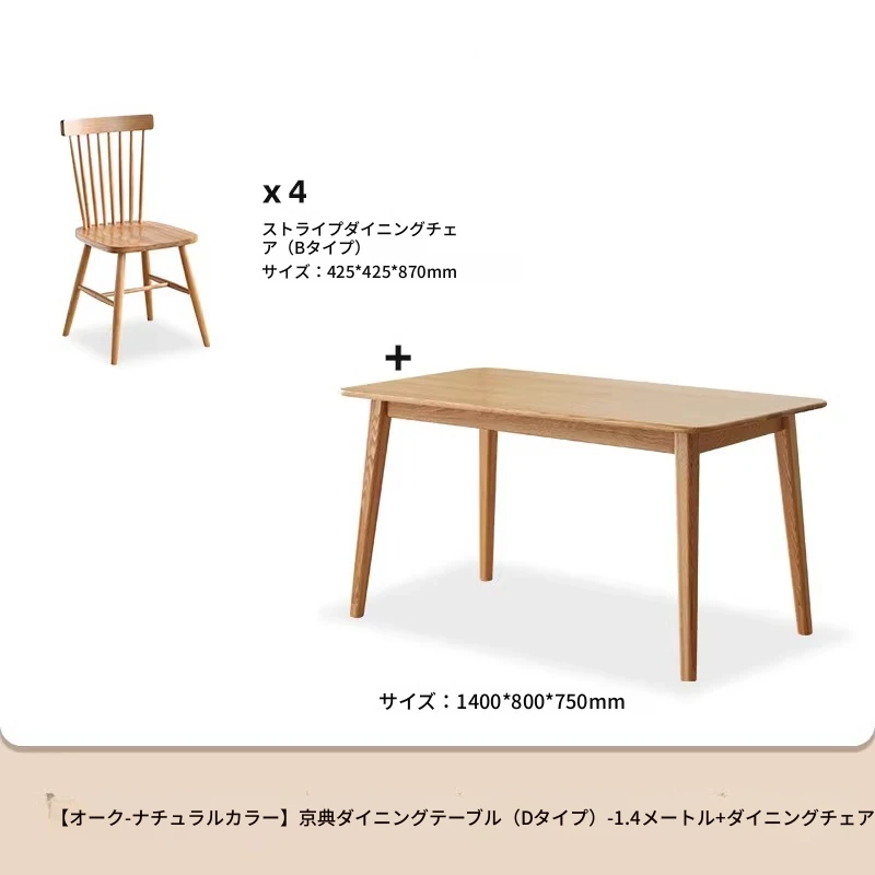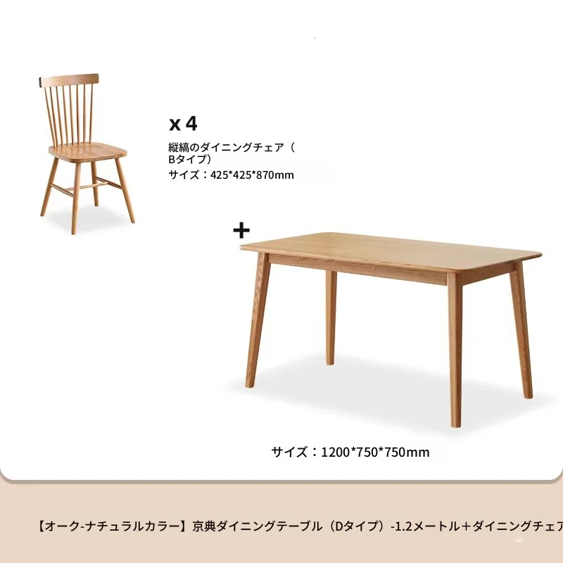 オリジナルエッセンス全無垢材ダイニングテーブル|現代的なシンプルデザインのオーク製|小さなスペースに最適な家庭用テーブル&チェアセット!快適な食事時間をお楽しみください!