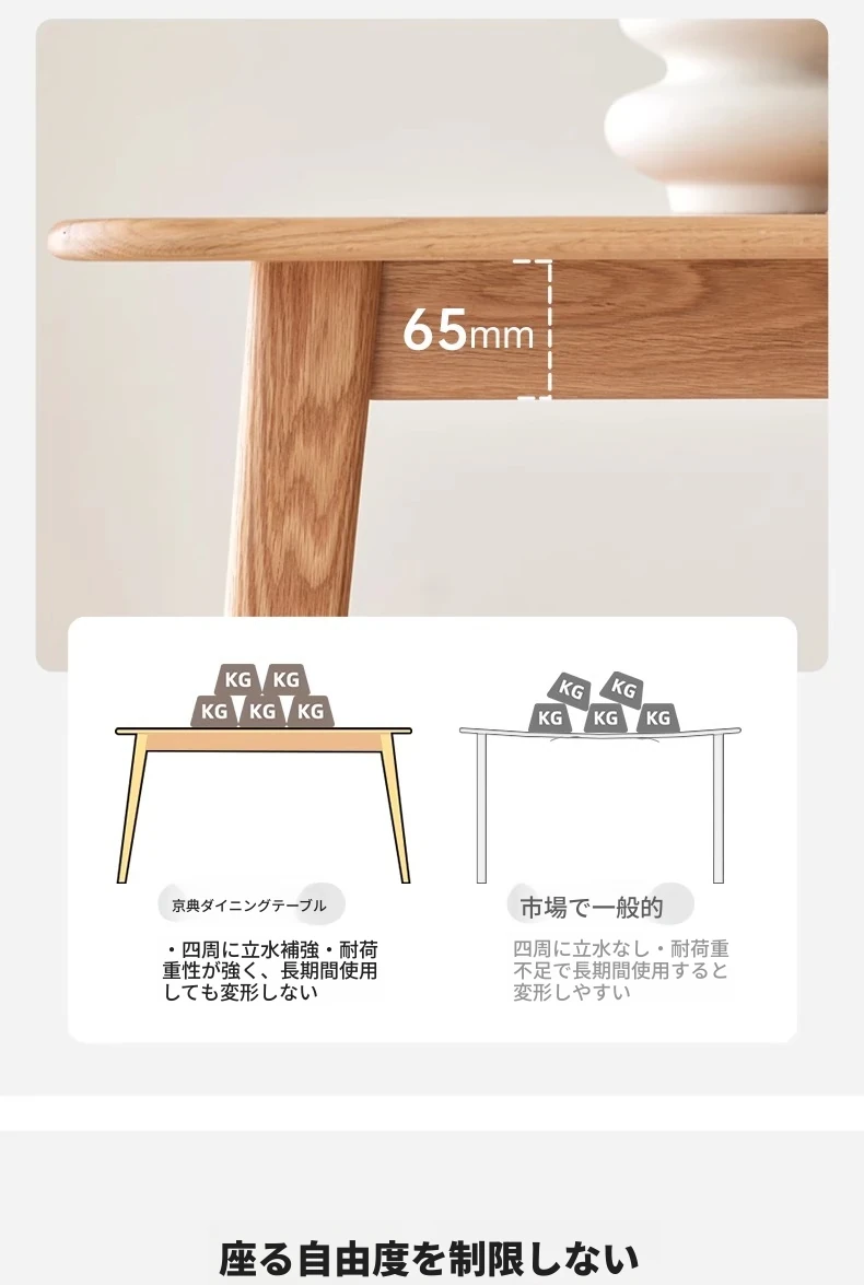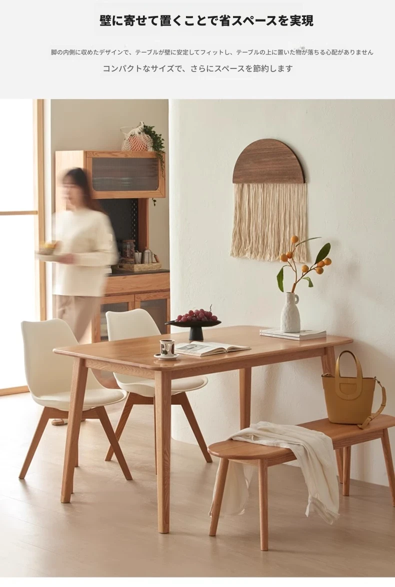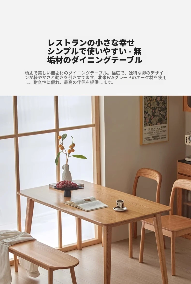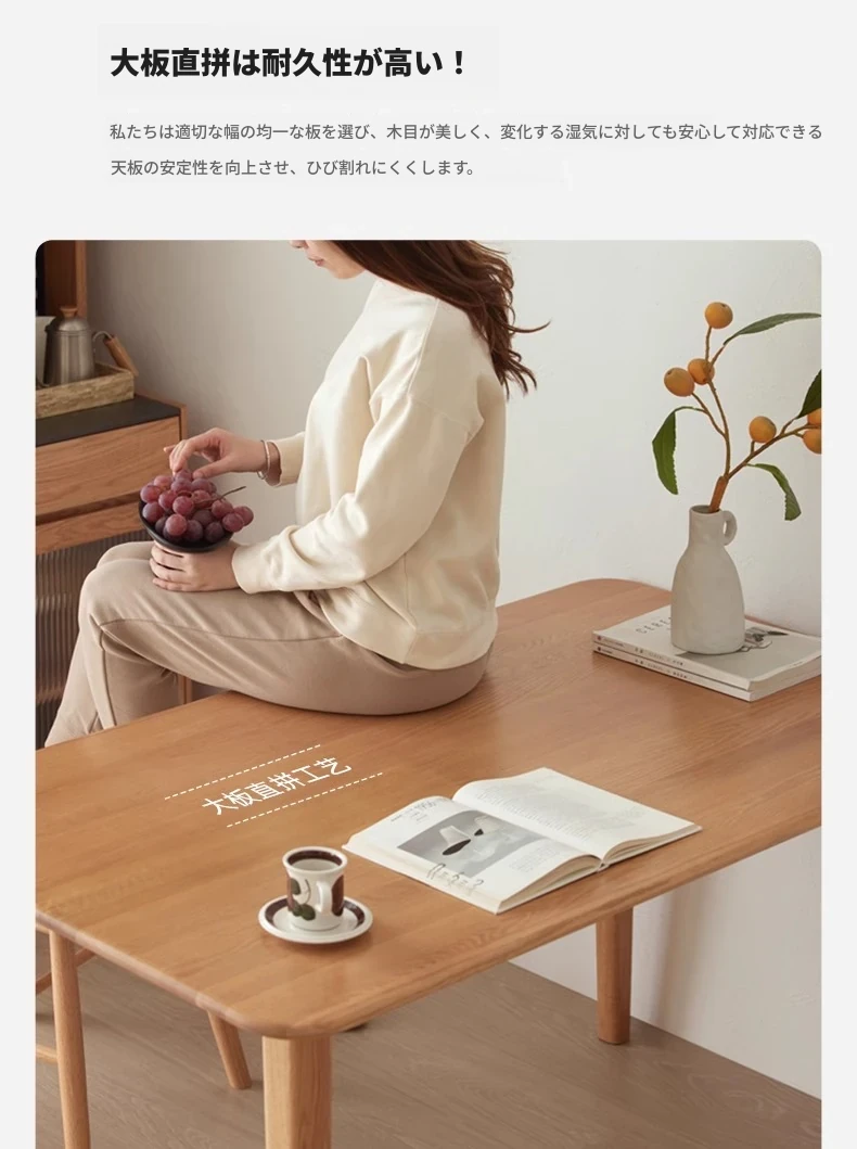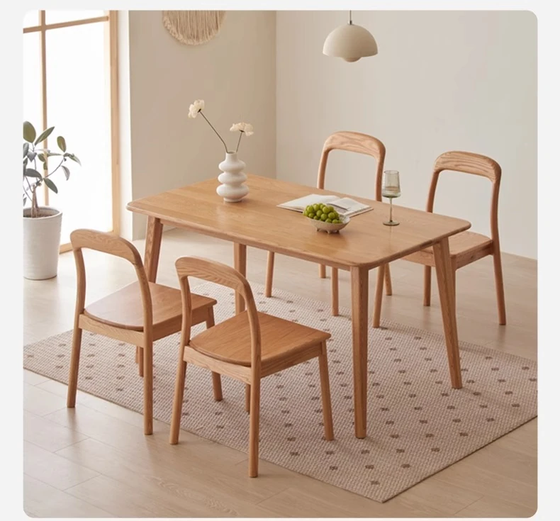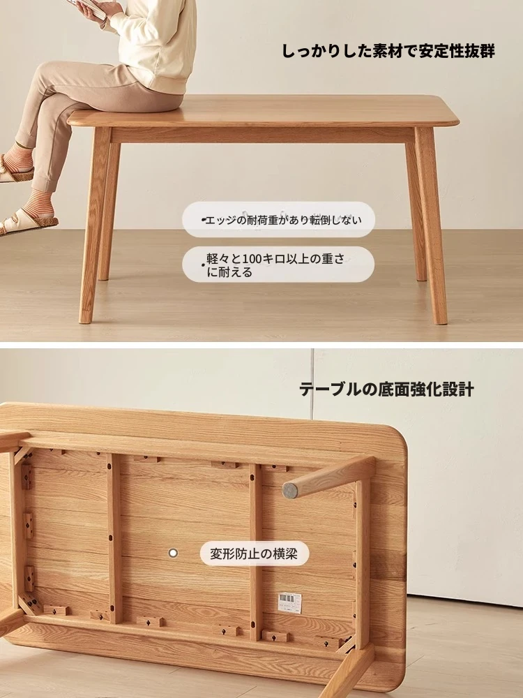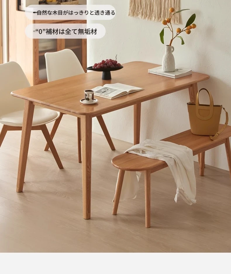 オリジナルエッセンス全無垢材ダイニングテーブル|現代的なシンプルデザインのオーク製|小さなスペースに最適な家庭用テーブル&チェアセット!快適な食事時間をお楽しみください!