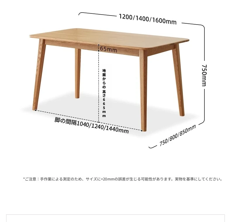【オーク-ナチュラルカラー】1.4メートルダイニングテーブル(1400*800*750mm)