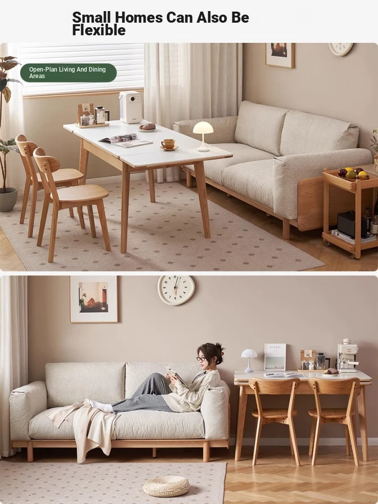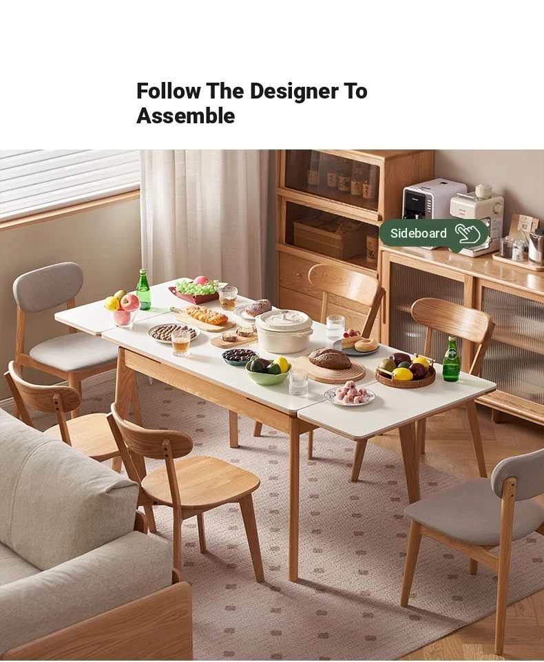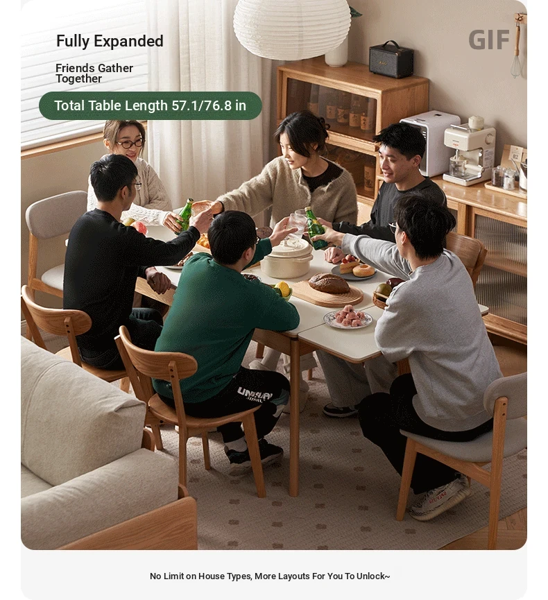 Oak-Log Color-Hemu Dining Table (Telescopic on Both Sides)-0.9