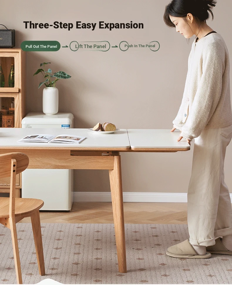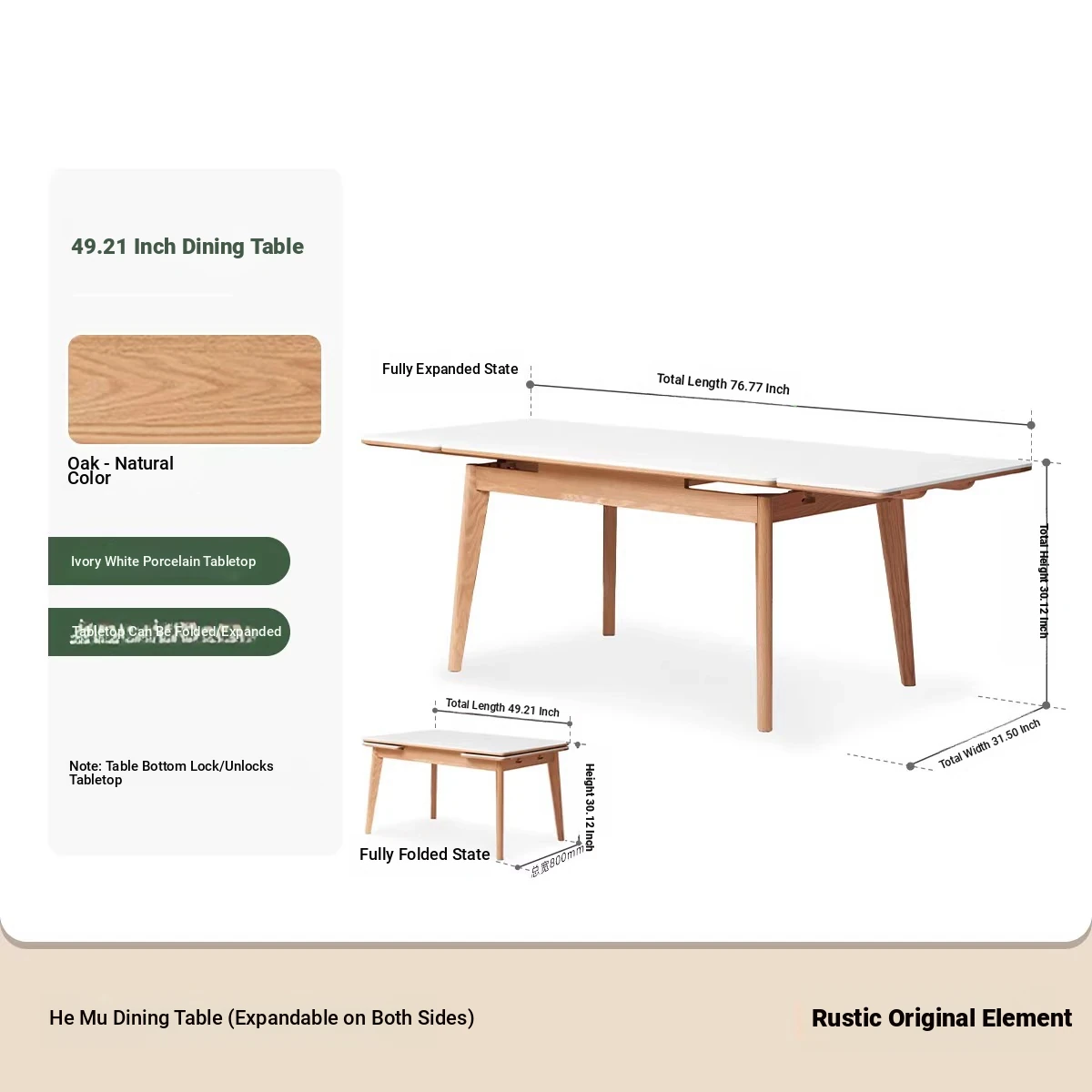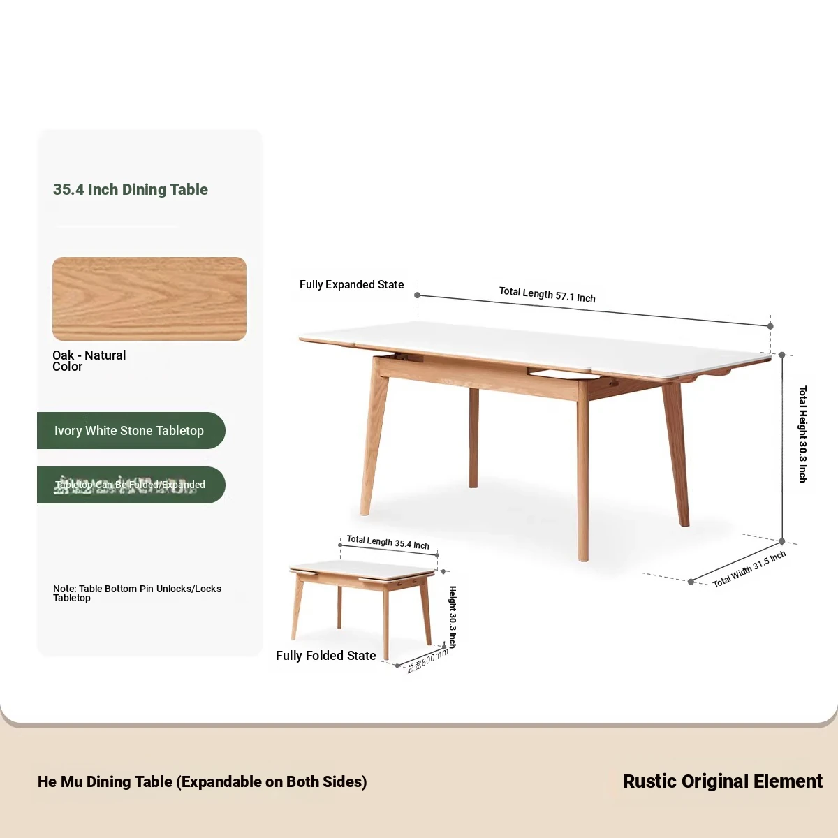 Original Element Solid Wood Expandable Dining Table - Compact Folding Table for Small Spaces, Perfect for Home Dining with a Minimalist Design