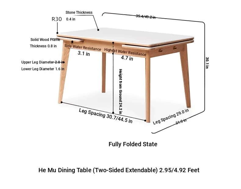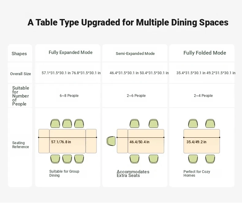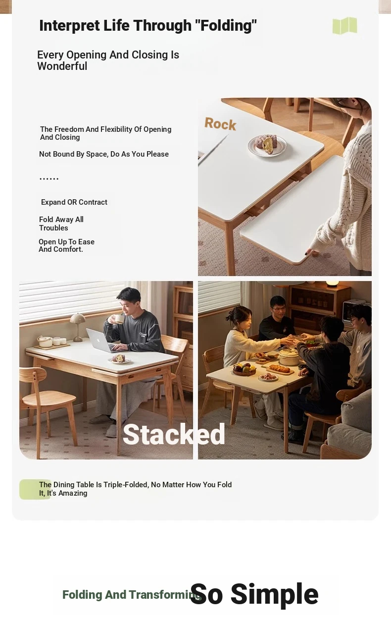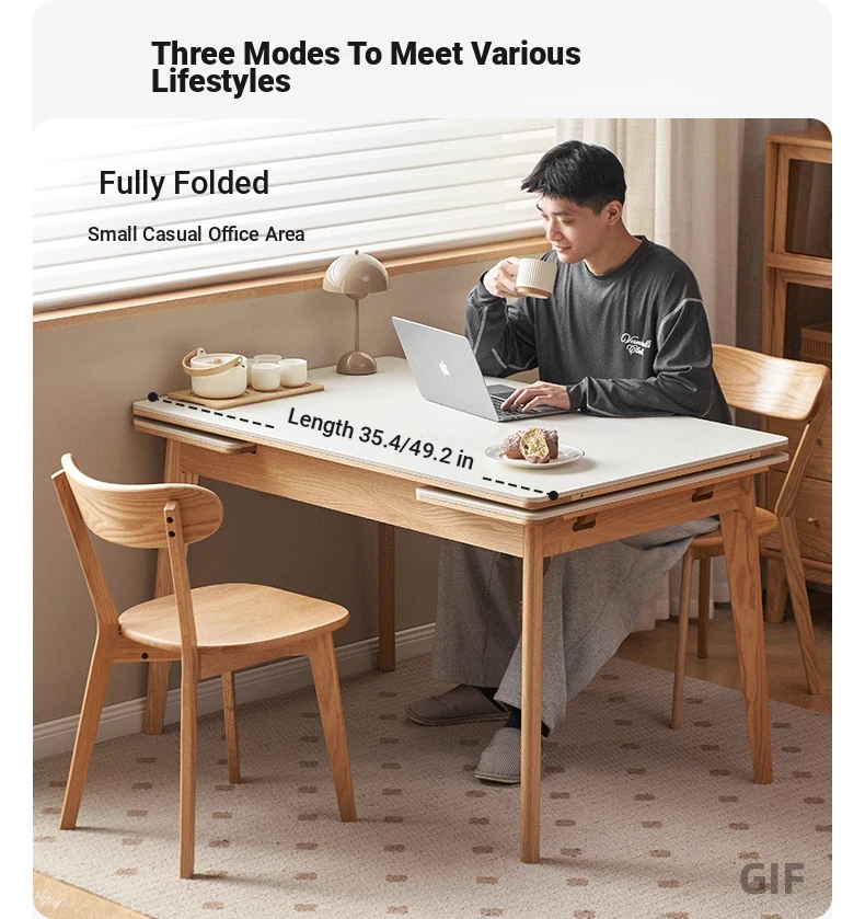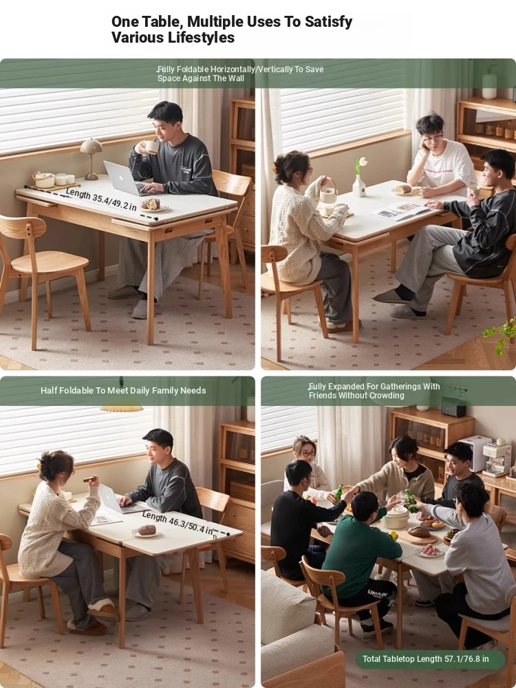 Original Element Solid Wood Expandable Dining Table - Compact Folding Table for Small Spaces, Perfect for Home Dining with a Minimalist Design