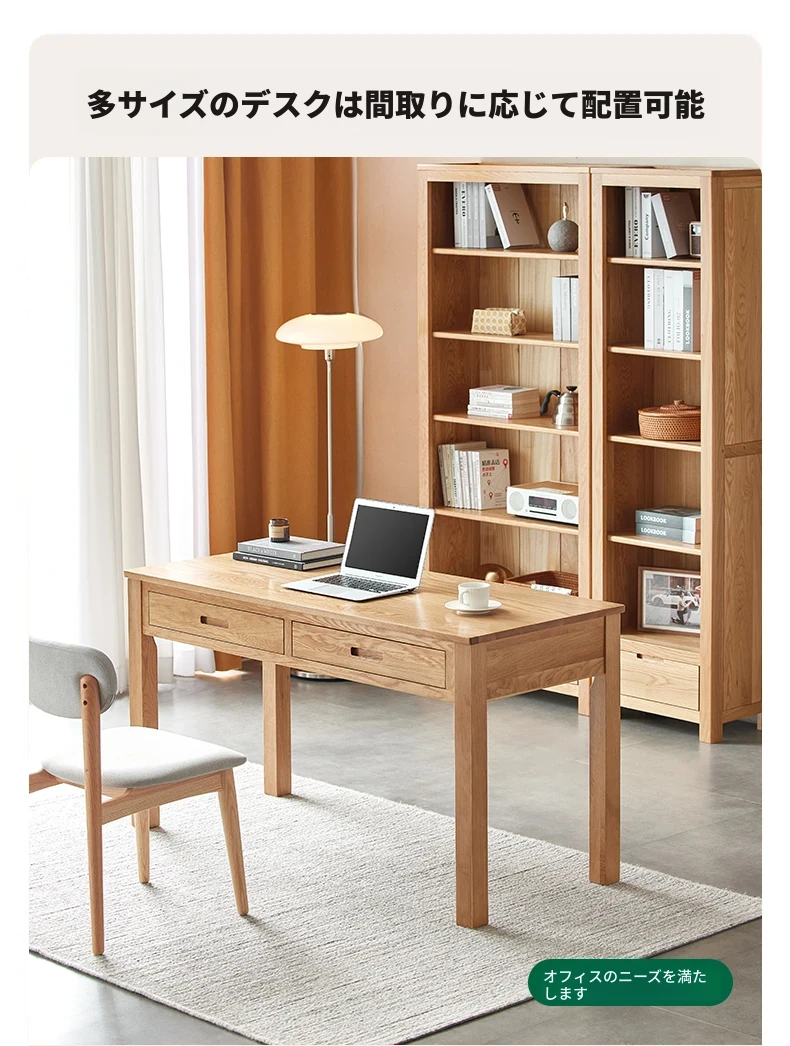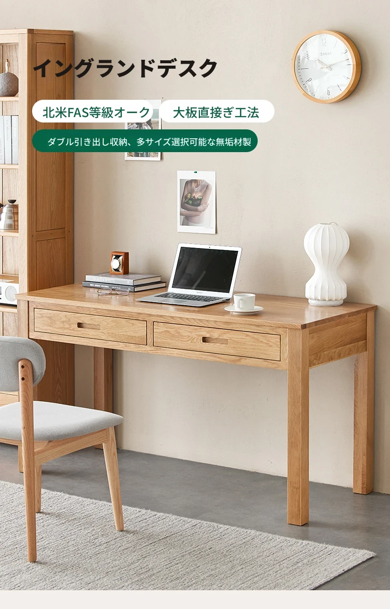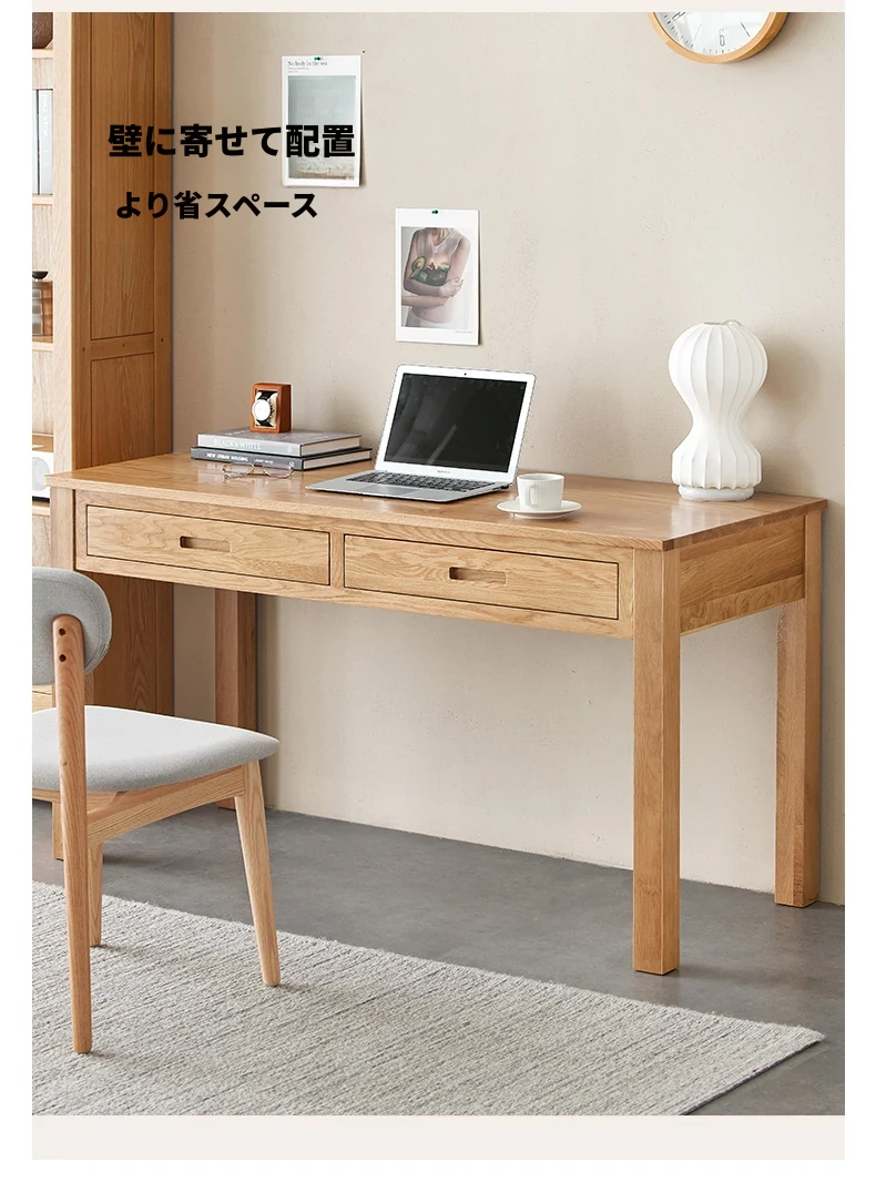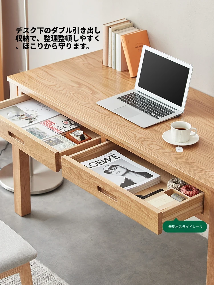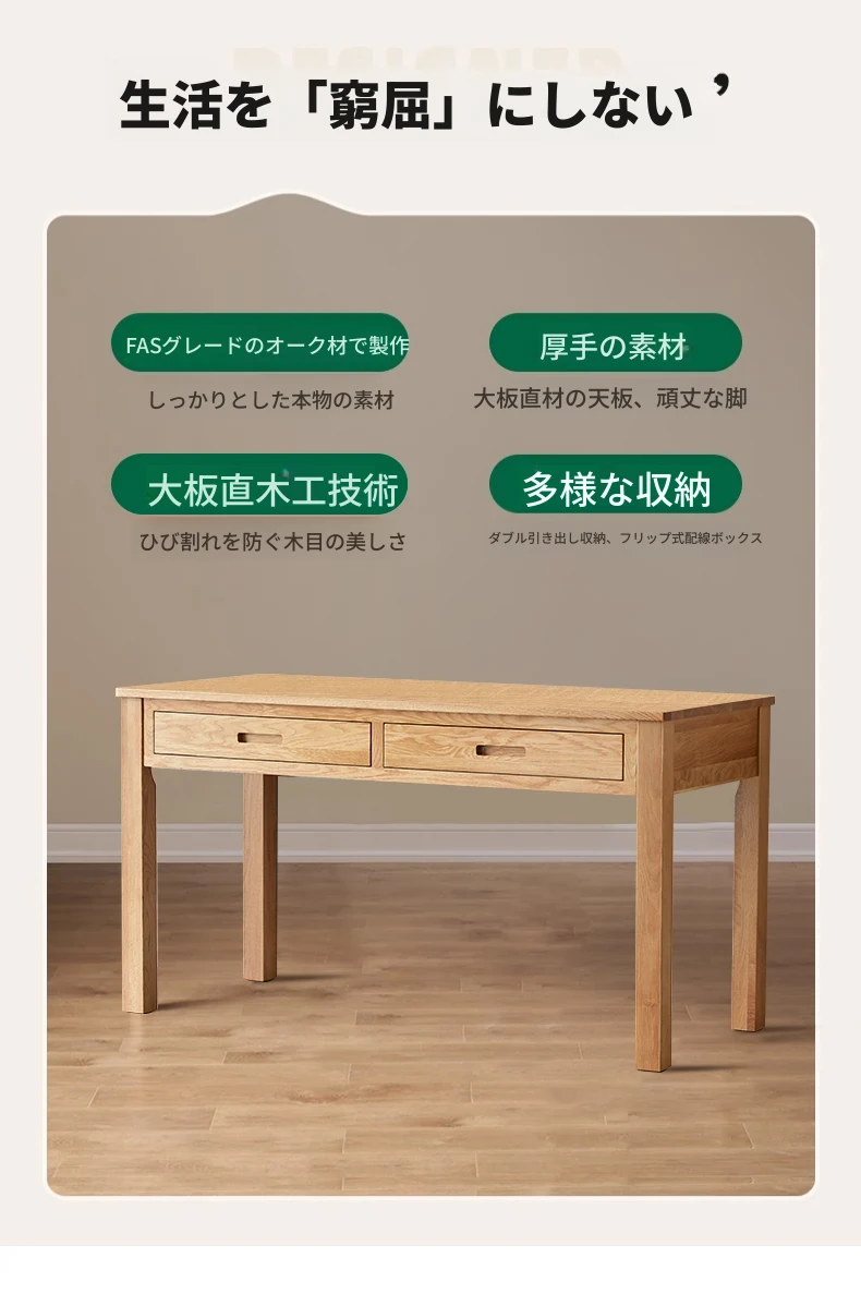 オリジナルエレメンツ全実木ダブルドロアデスク - 北欧風シンプルデザインのオーク製コンピューターデスク、学生の学習や執筆に最適!