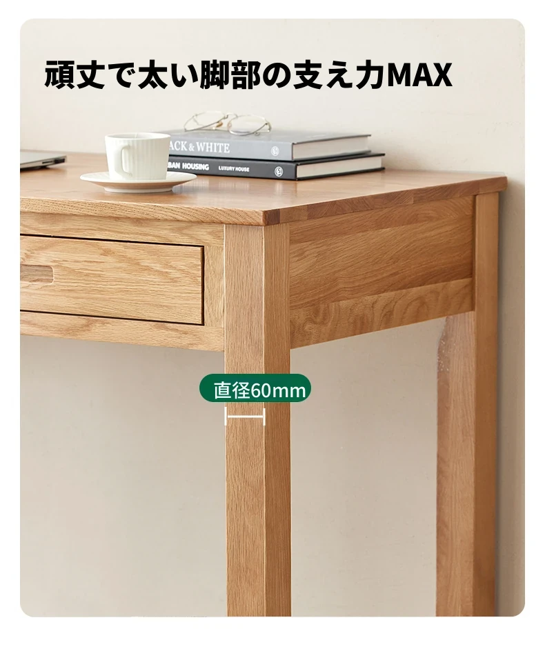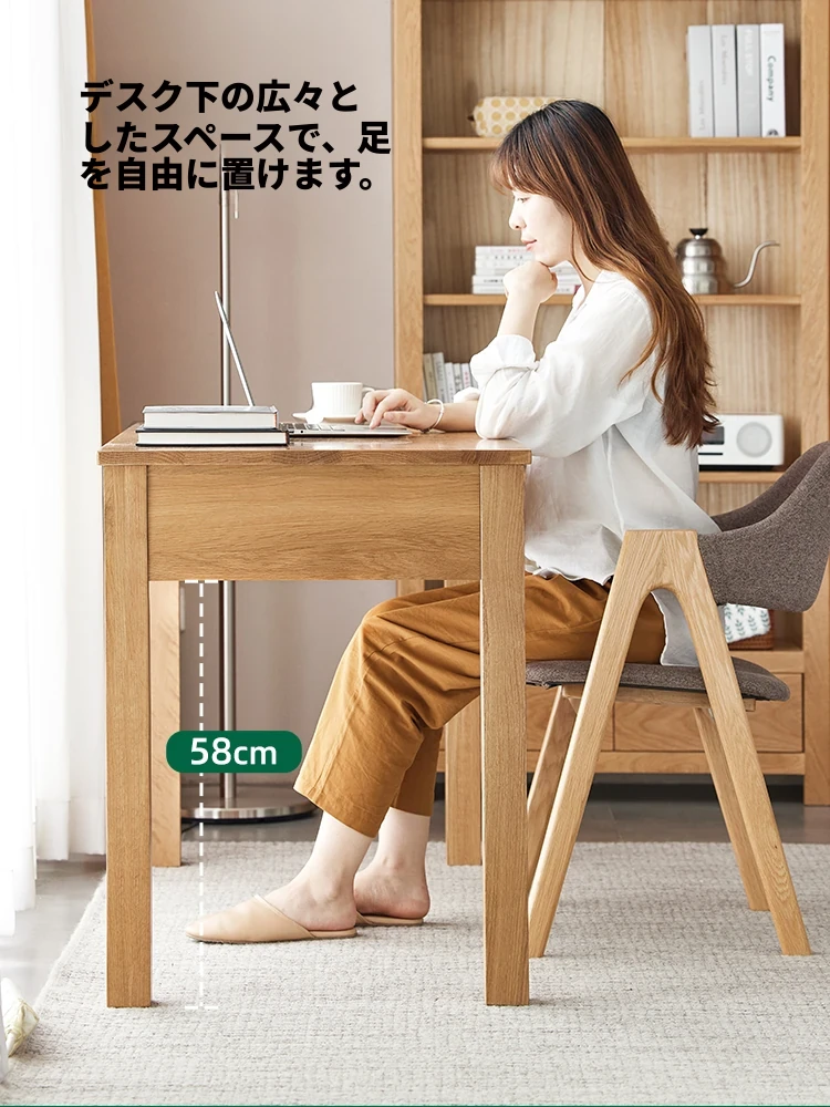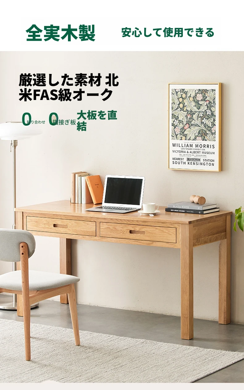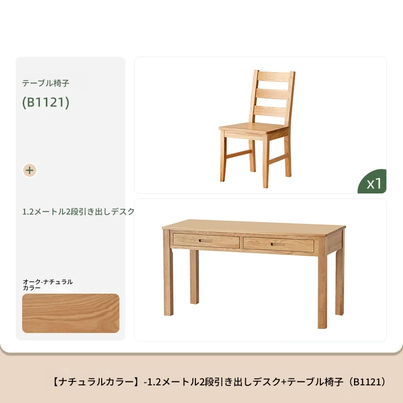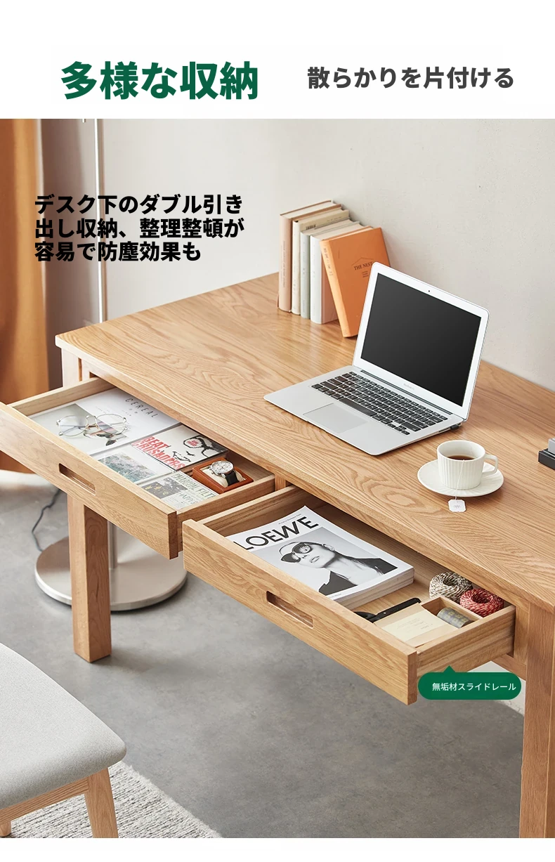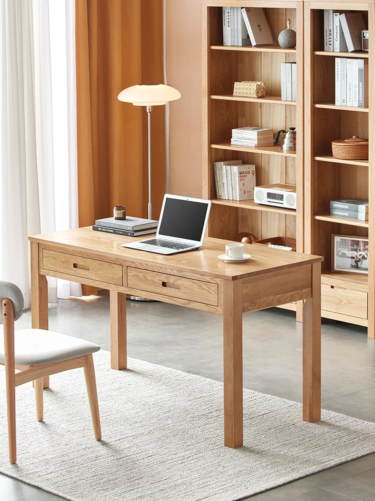 オリジナルエレメンツ全実木ダブルドロアデスク - 北欧風シンプルデザインのオーク製コンピューターデスク、学生の学習や執筆に最適!