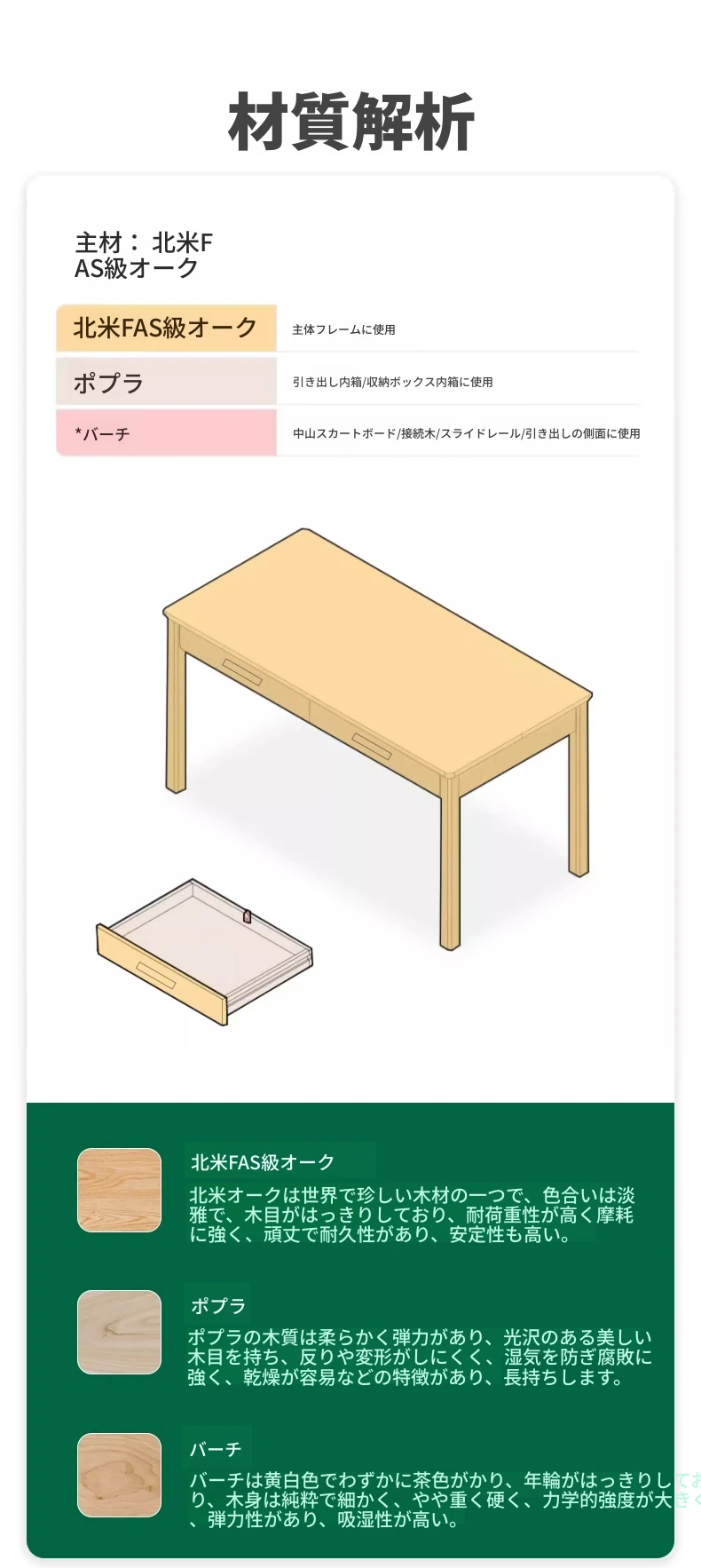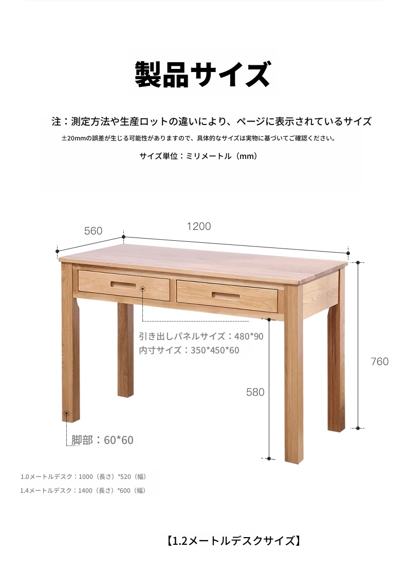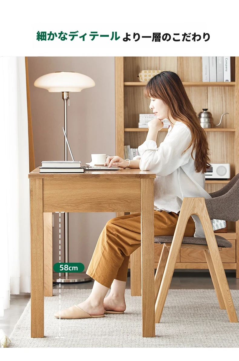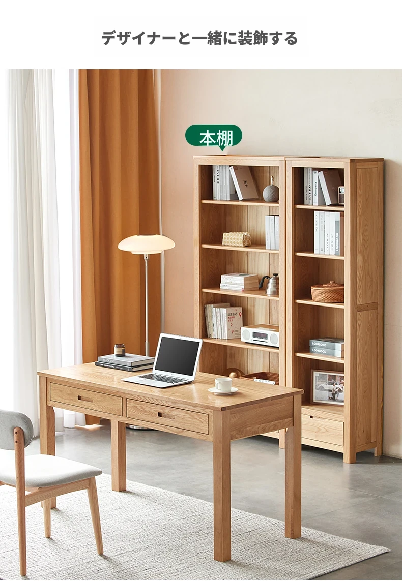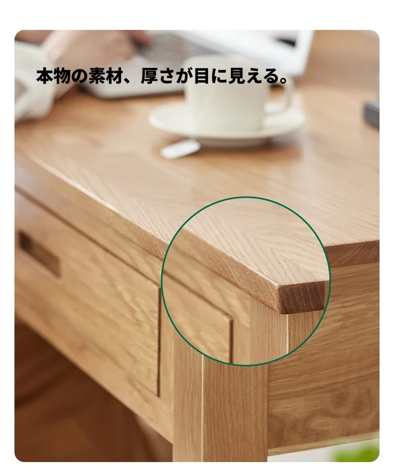 オリジナルエレメンツ全実木ダブルドロアデスク - 北欧風シンプルデザインのオーク製コンピューターデスク、学生の学習や執筆に最適!