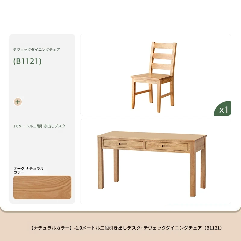 ナチュラルウッドカラー-1.0mダブルドロワーデスク+テューヴィクダイニングチェア(B1121)