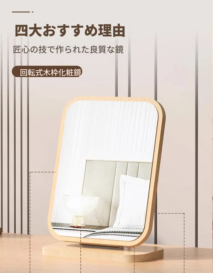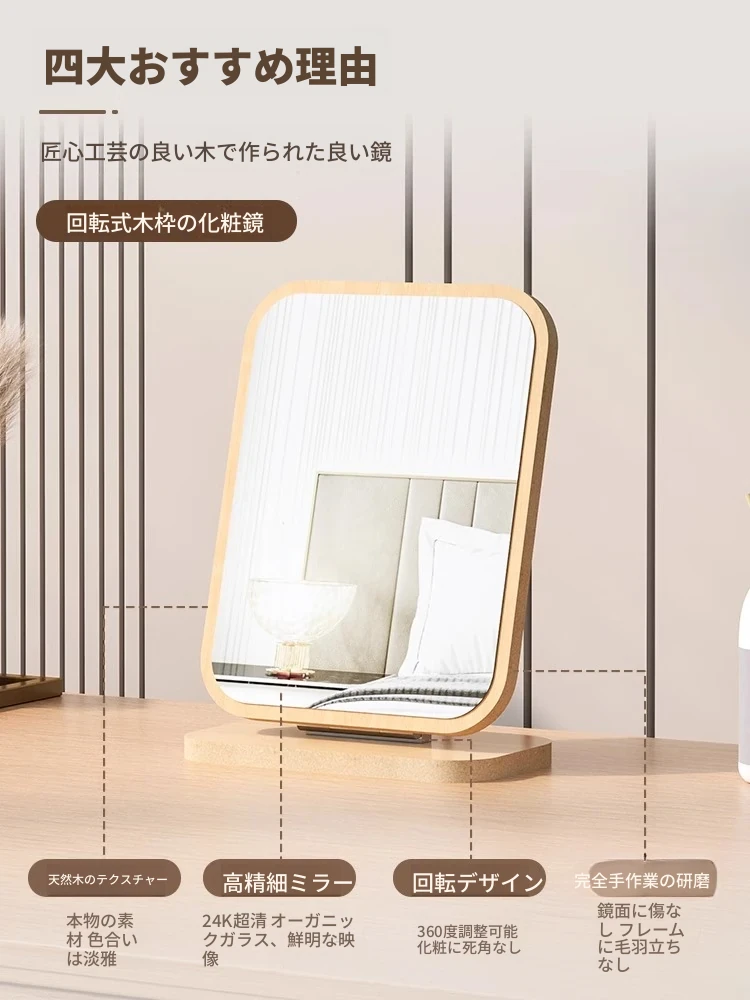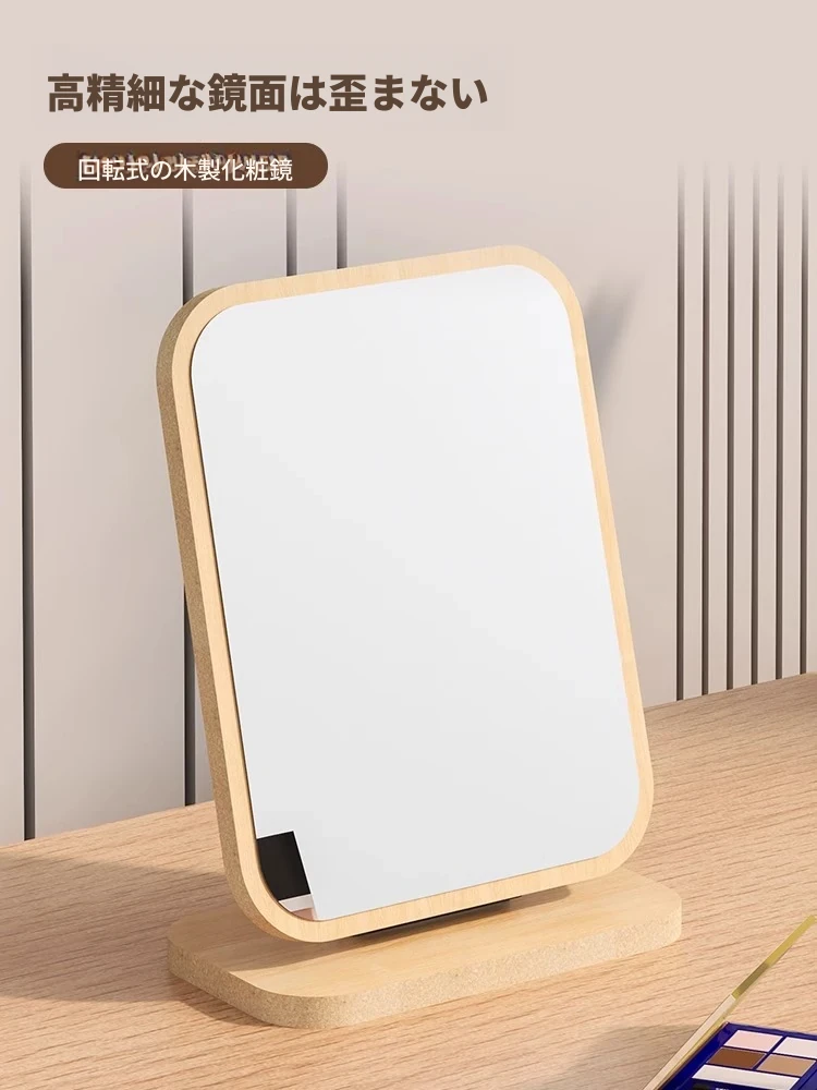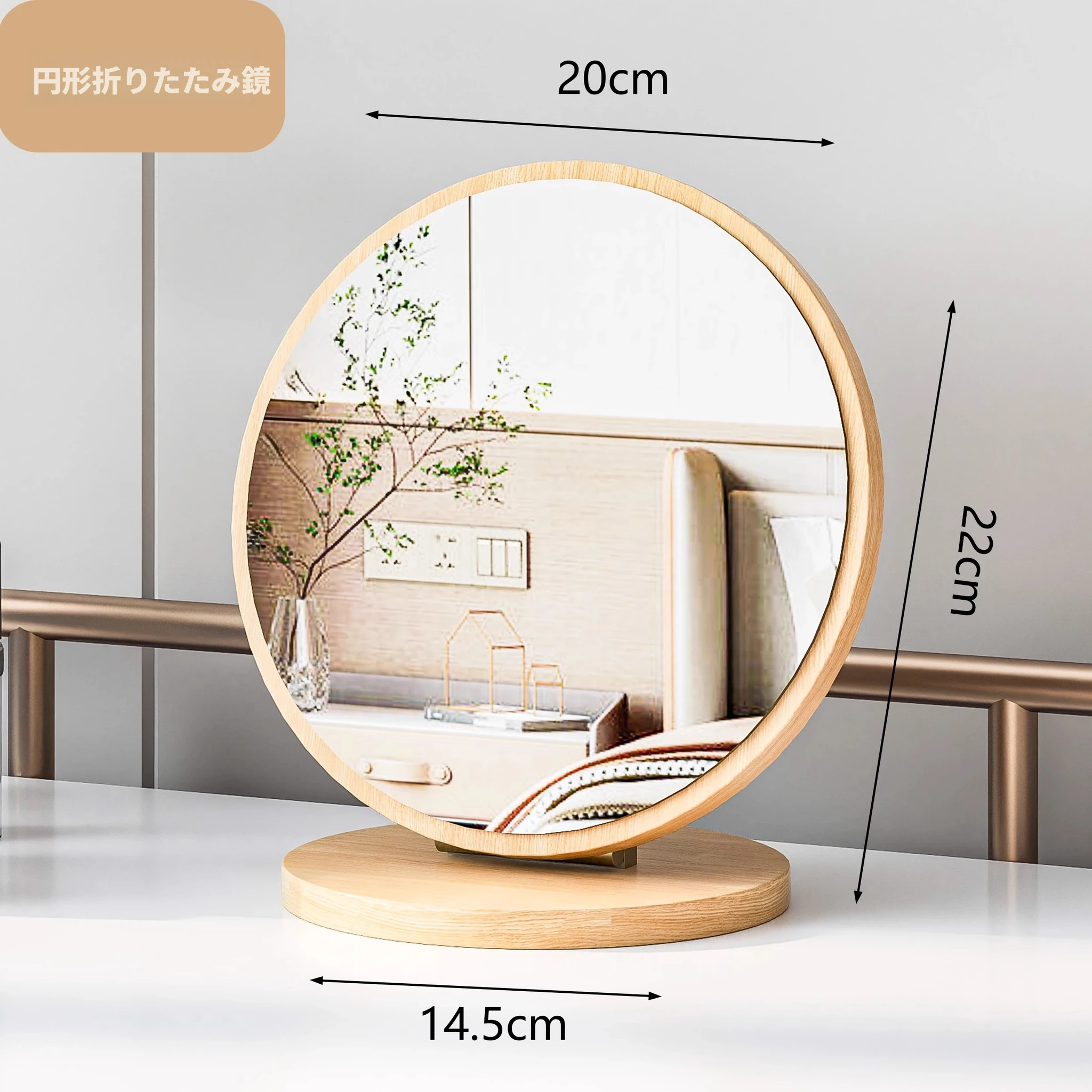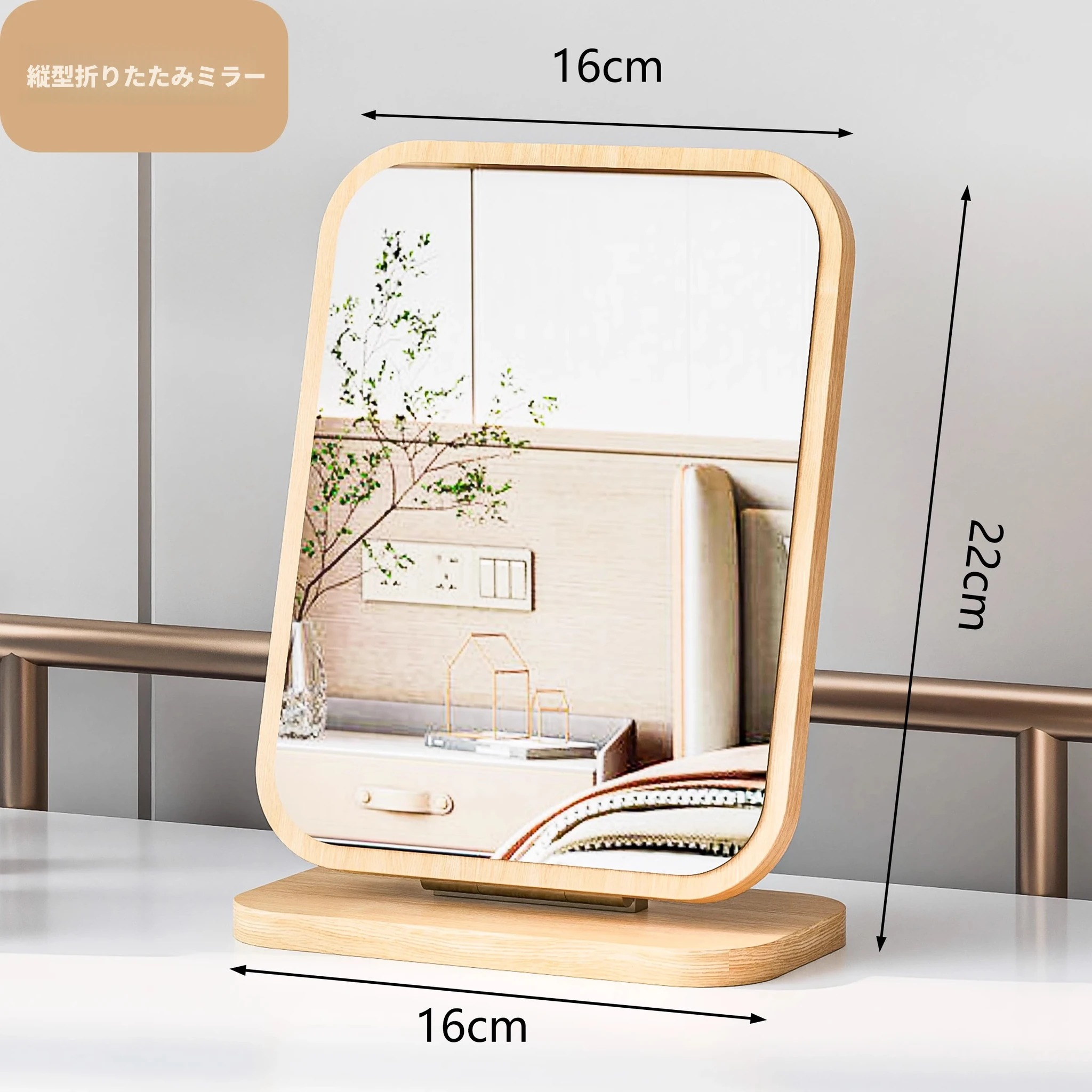 回転式化粧鏡 - デスクトップ用・家庭用・主寝室向け!学生寮にもぴったりな木製折りたたみ式ポータブルミラー。美の瞬間をいつでもどこでもサポートします!